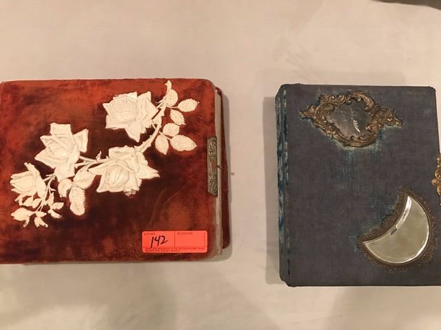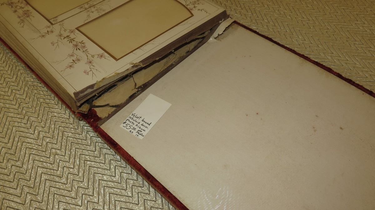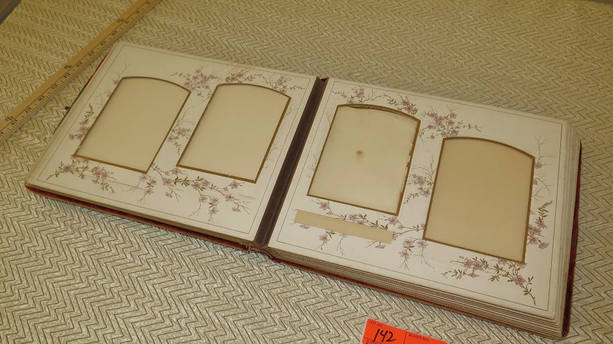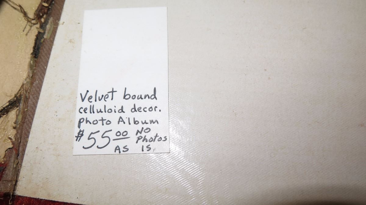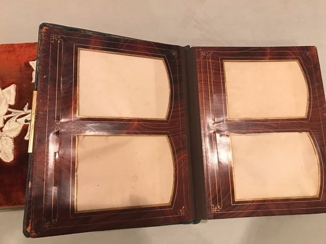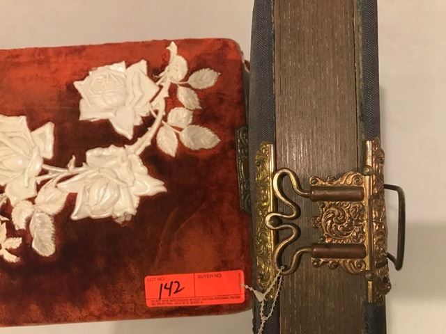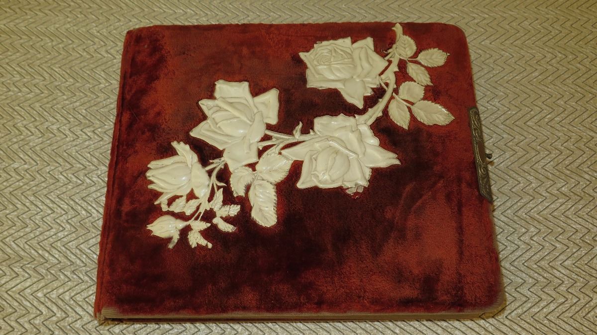 Antique Velvet-Boud Photo Album w/Inlaid Roses, Metal Clasp