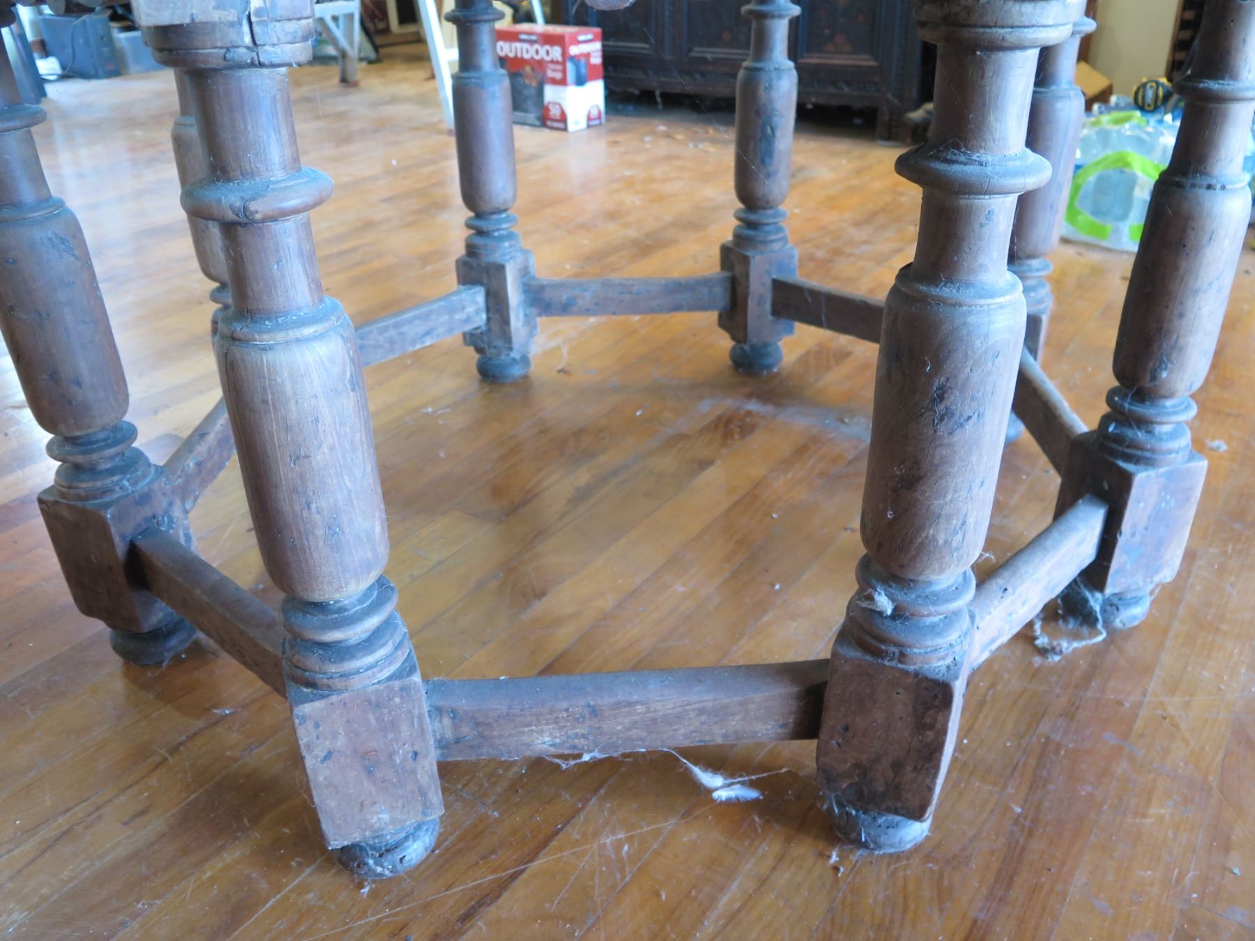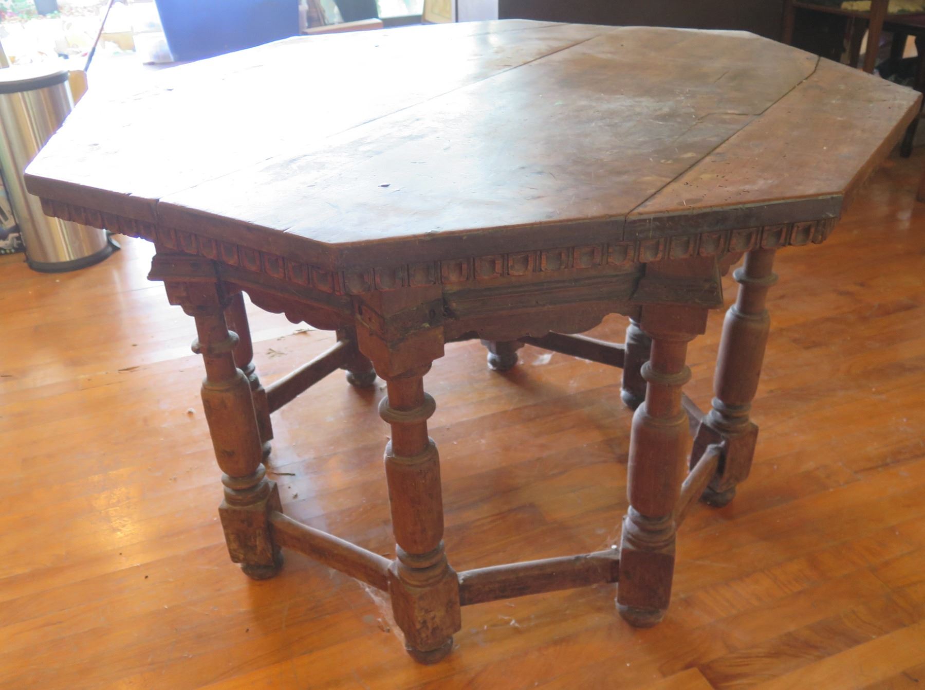Antique Wooden Octagonal Table w/ Carved Accents 49" x 49" x 30"