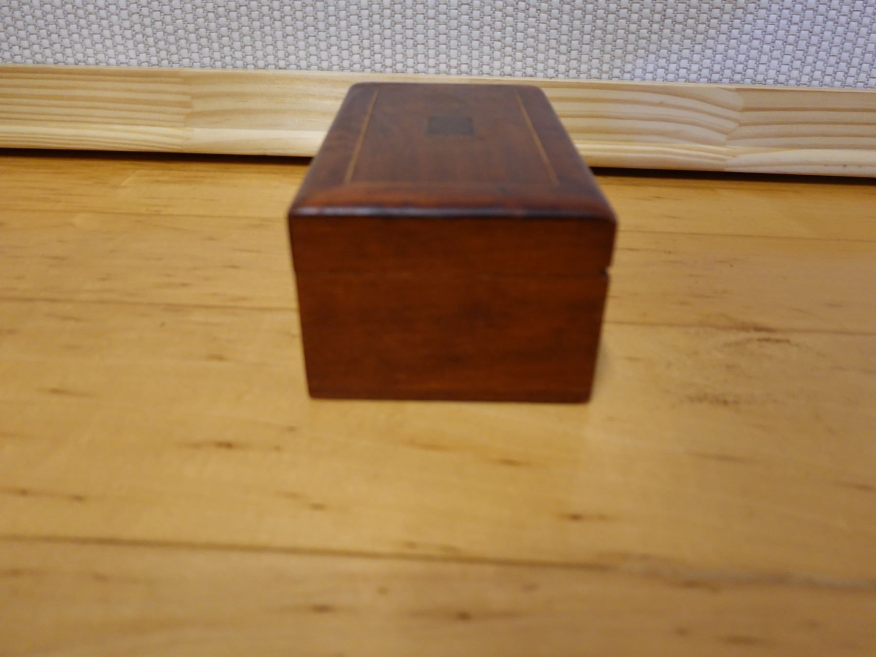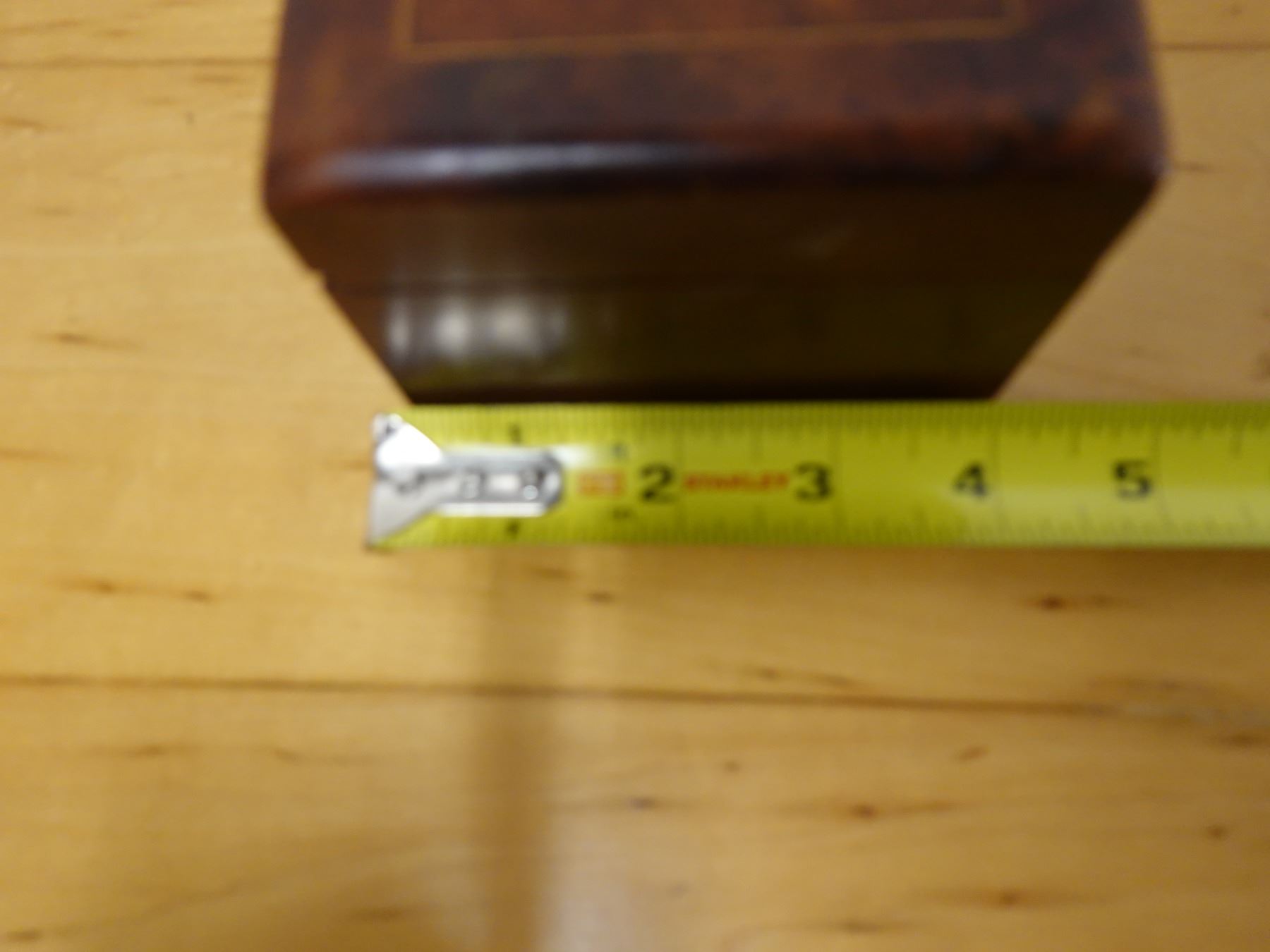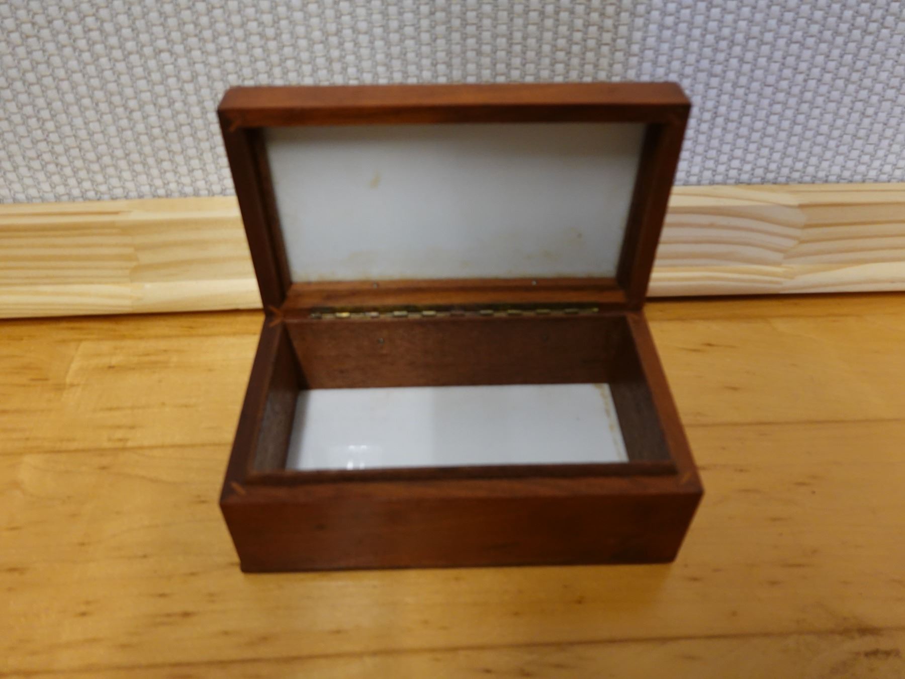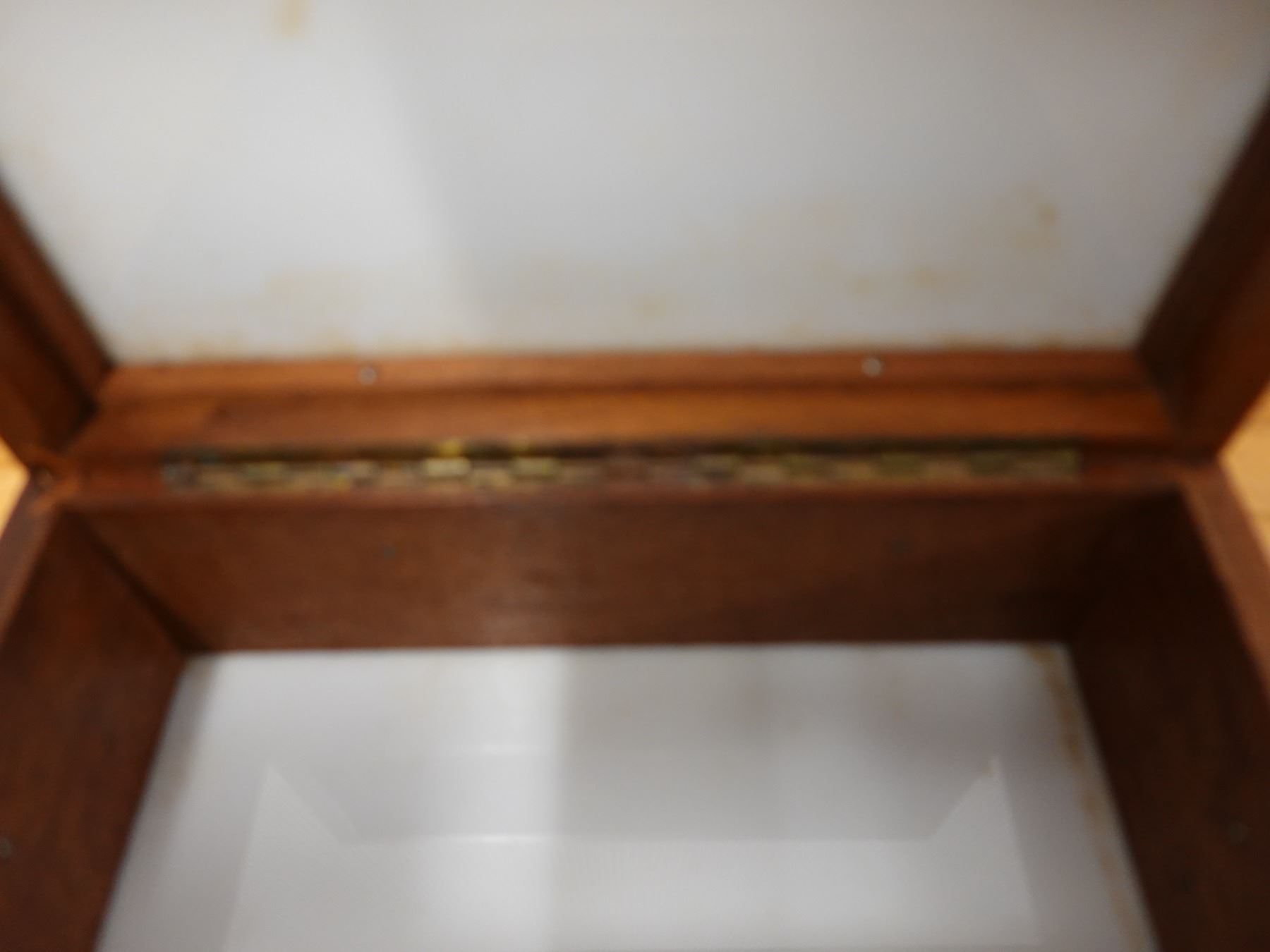 Antique Wooden Rectangular Box w/ Hinged Lid & Inlay Top, Interior Appears to be Lined w/ Milk Glass 6.5" x 3.5" x 3"H