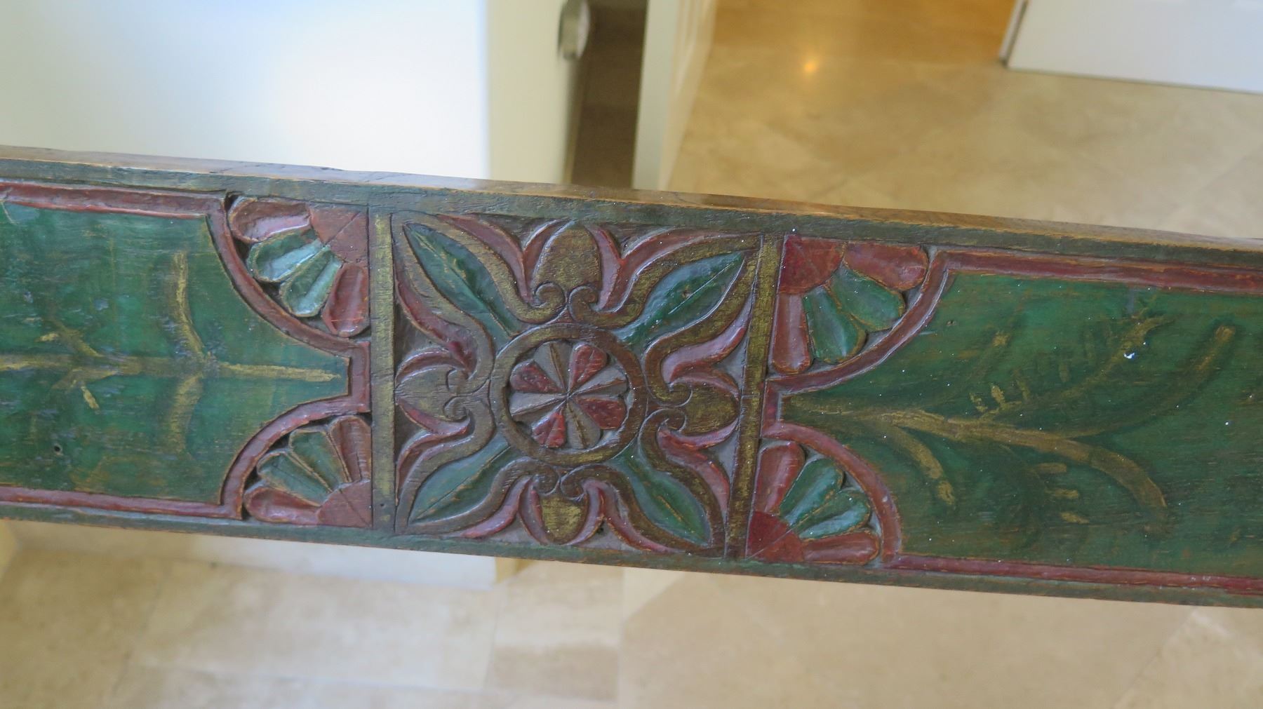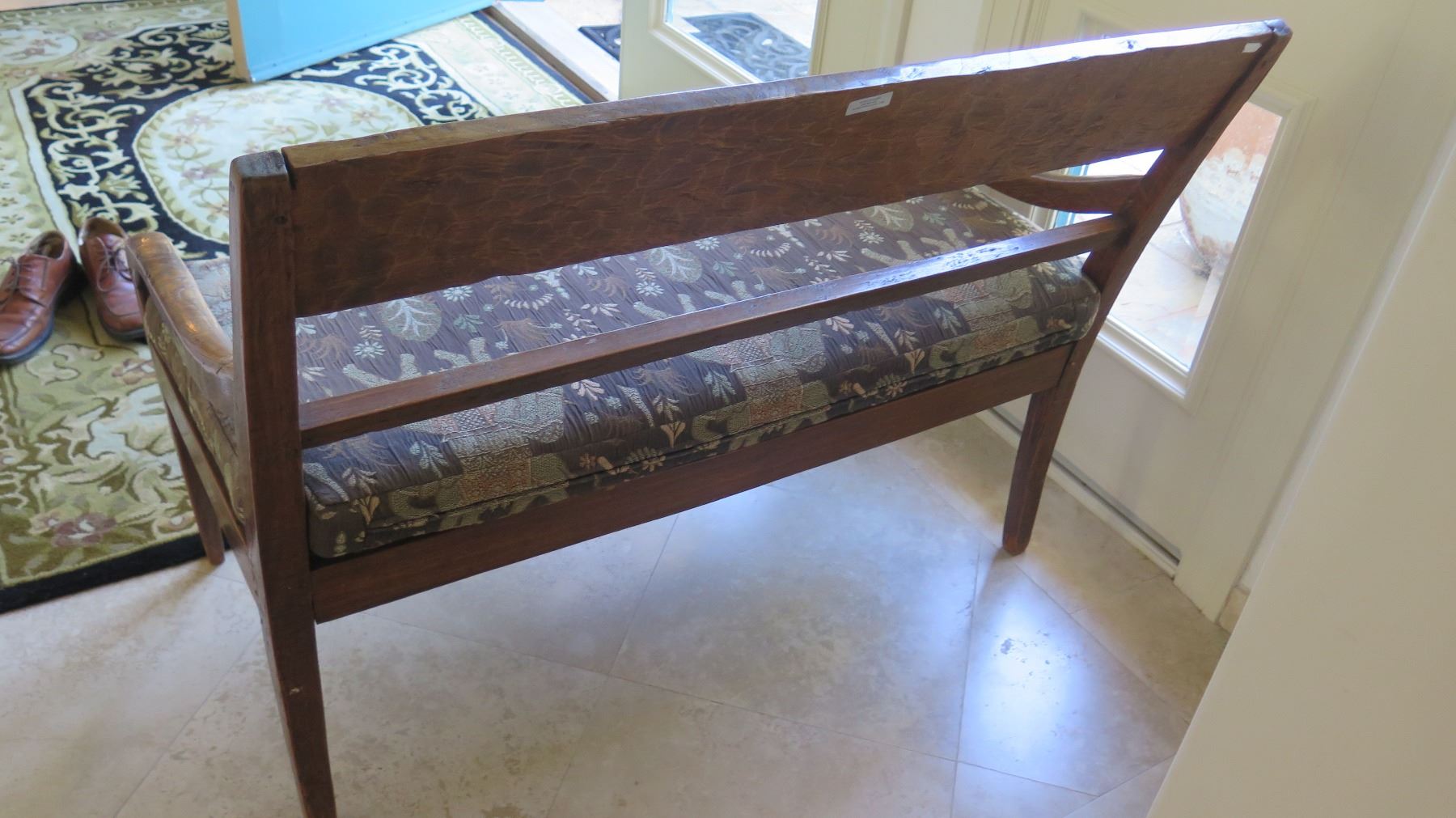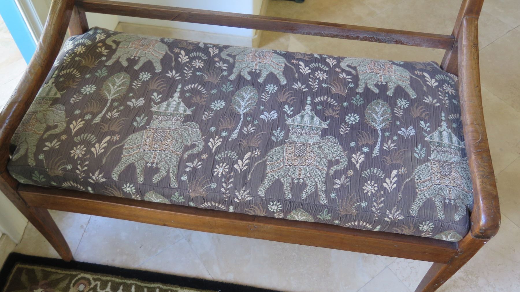 Antique Wooden Settee w/Upholstered Seat & Painted Details, Approx 44"L X 20" X 33" H