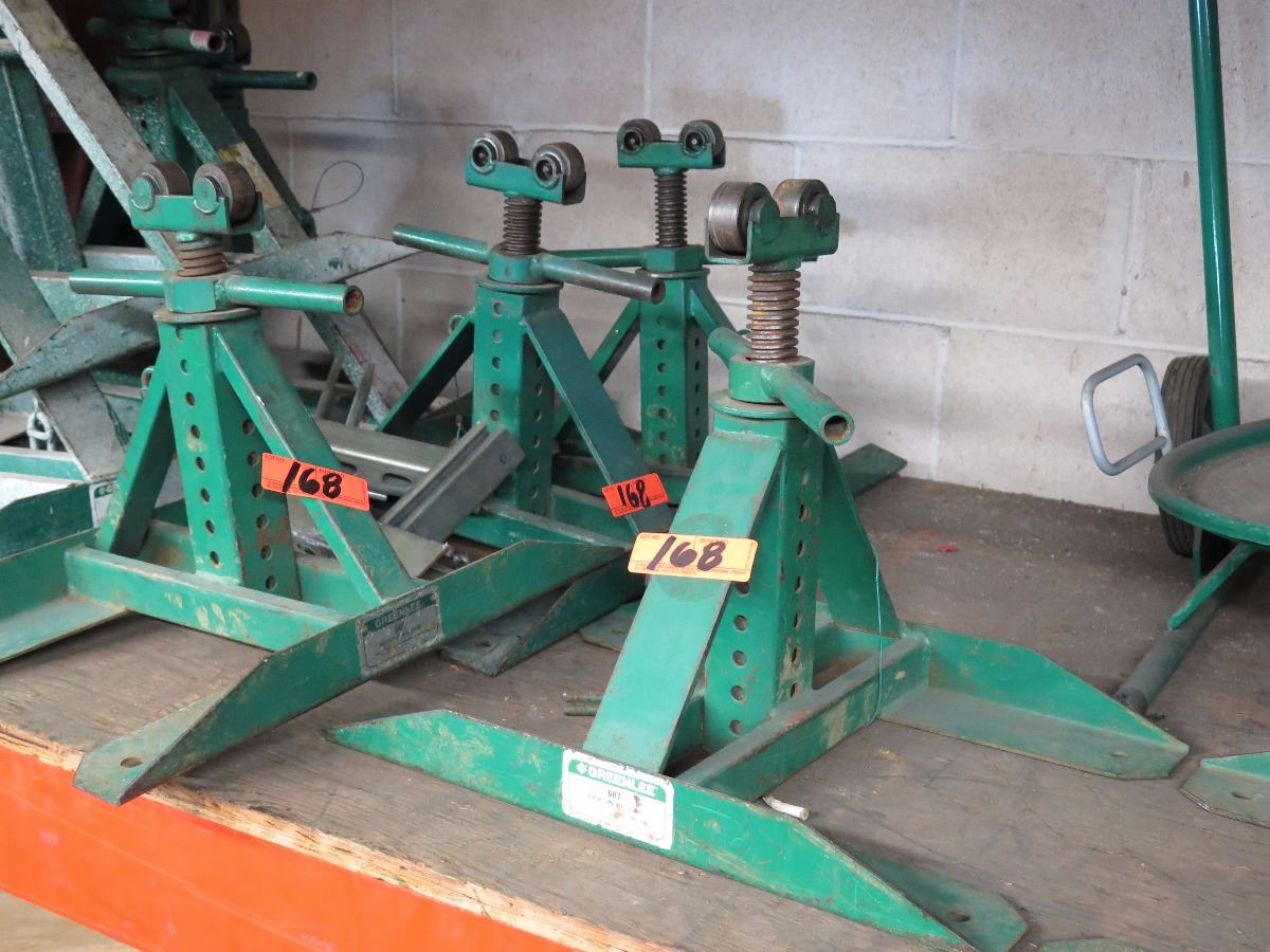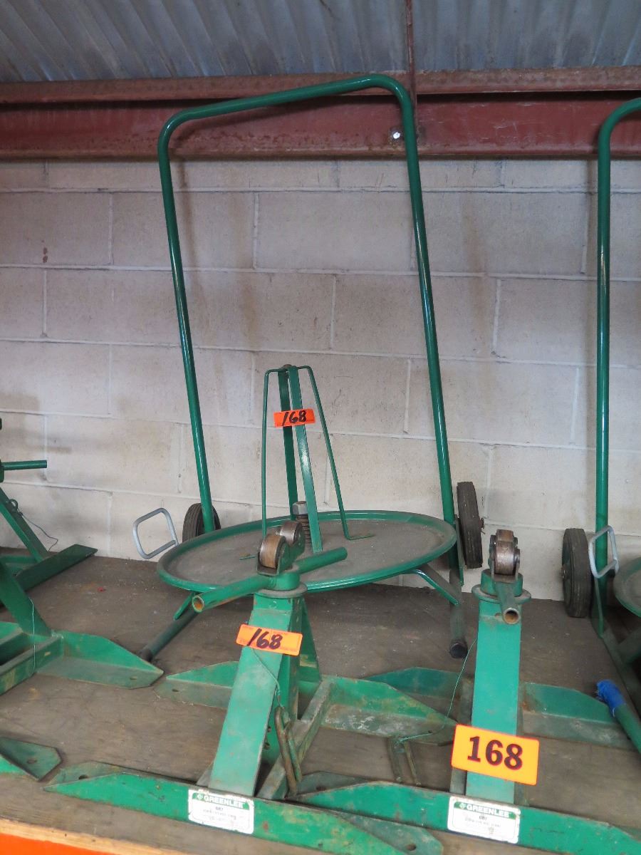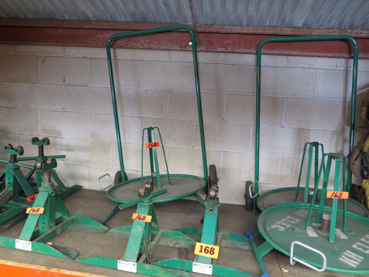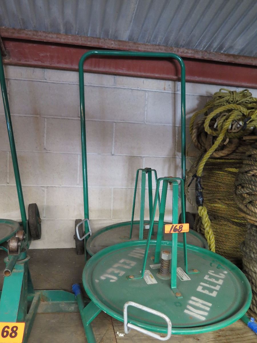Approx. 8 Misc. Greenlee Coiled Cable Dispensers (w/Wheels), Reel Stands, Spindle