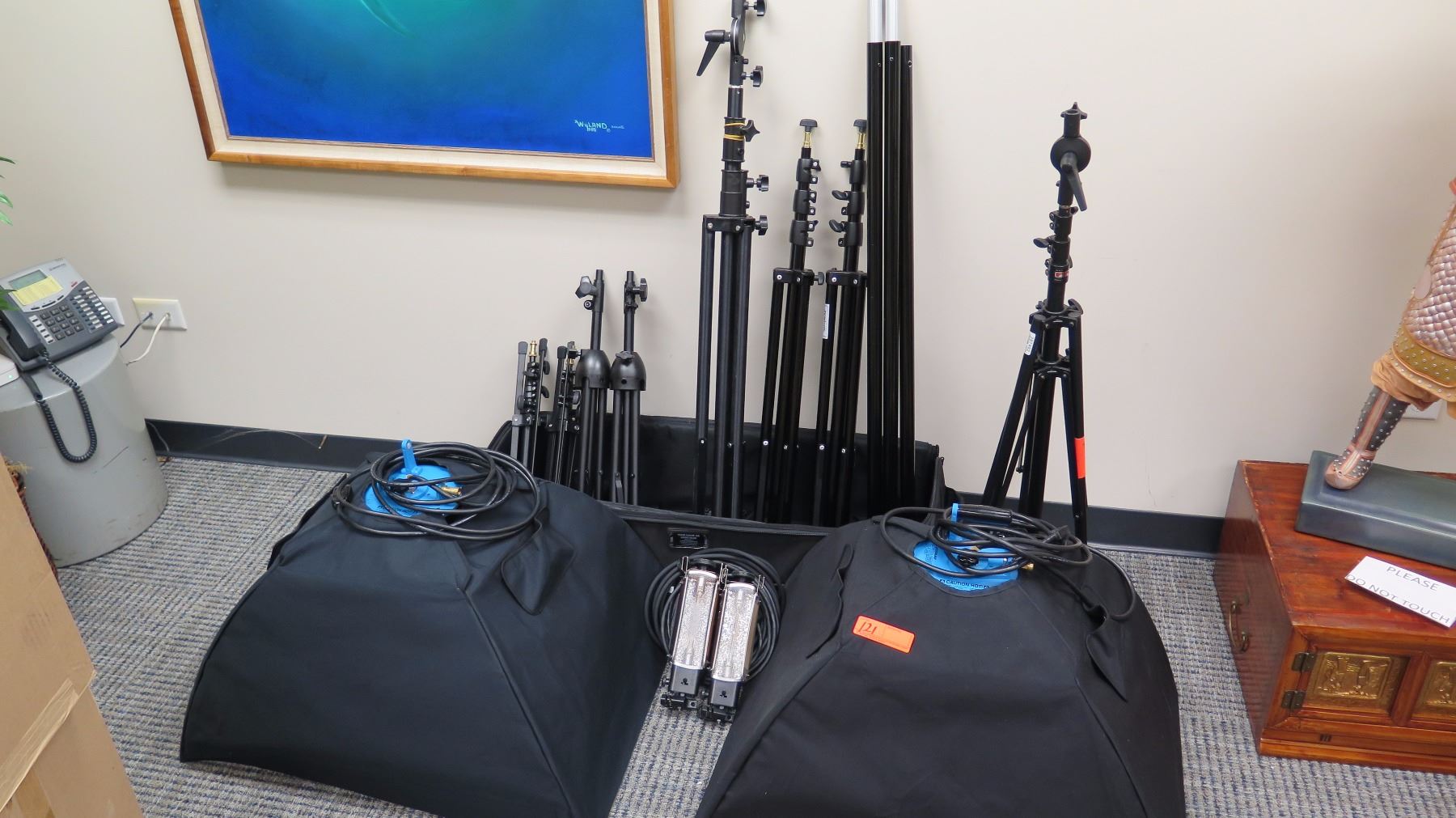 Approx. 8 Tripods and Qty 2 Westcott Spiderlite Lighting Kits (Photography Lighting Equipment)