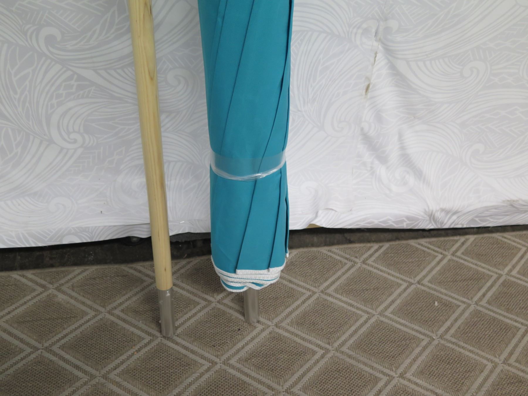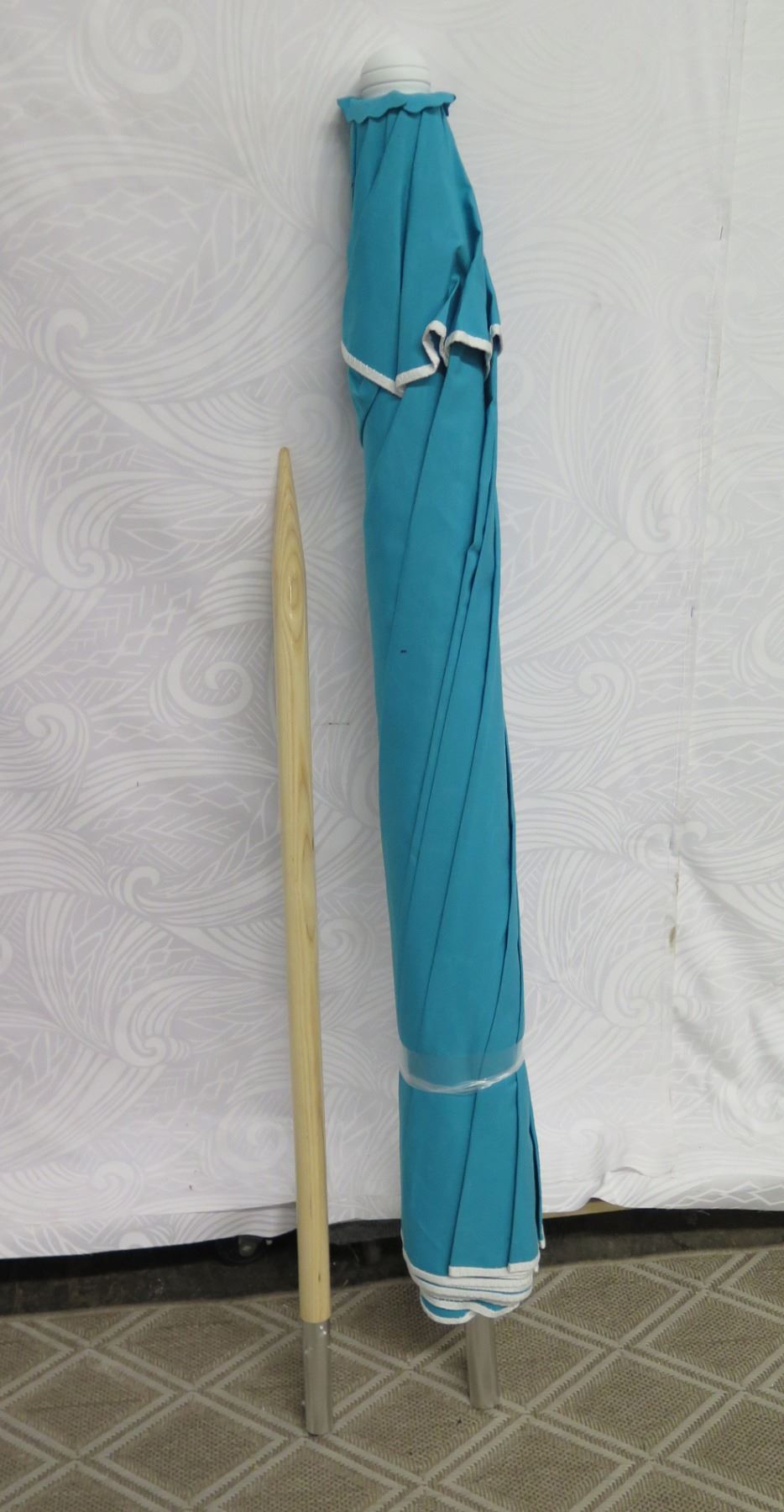 Aqua Beach Umbrella w/ Wood Pole