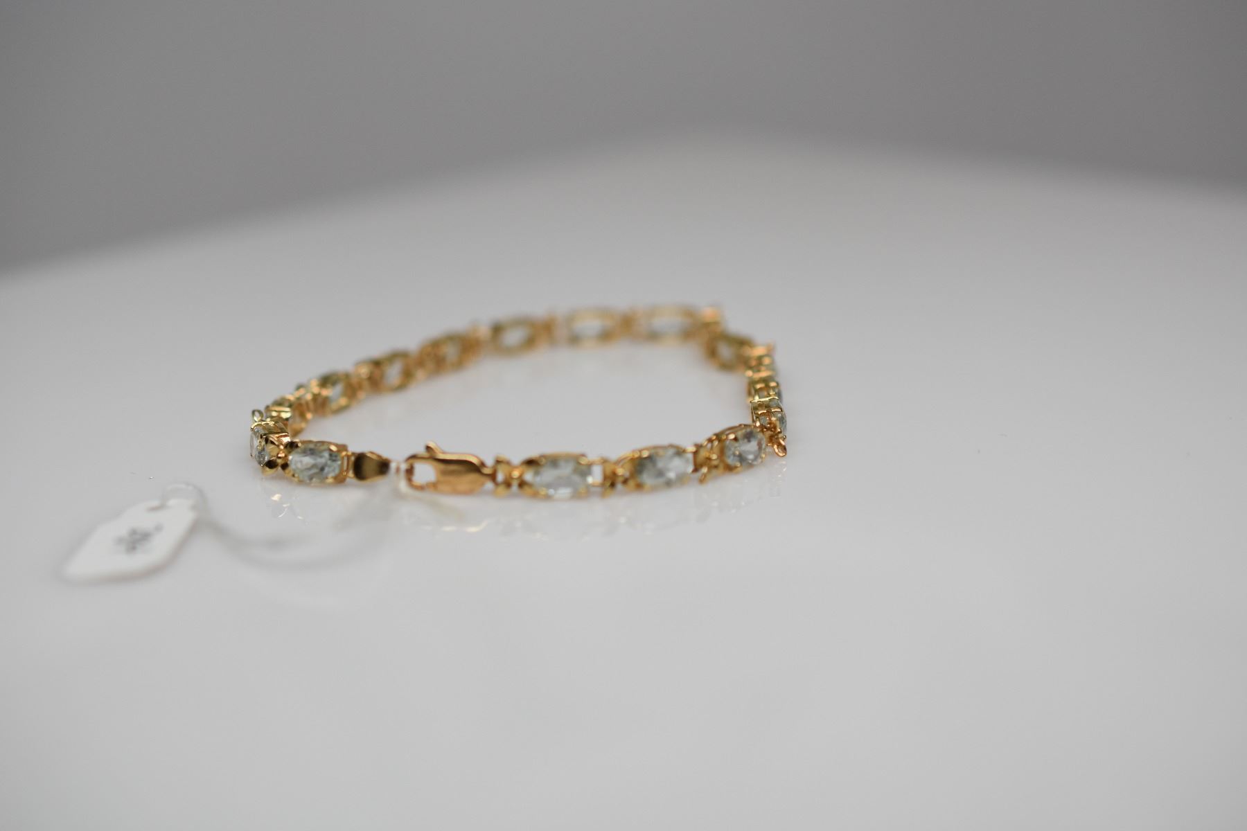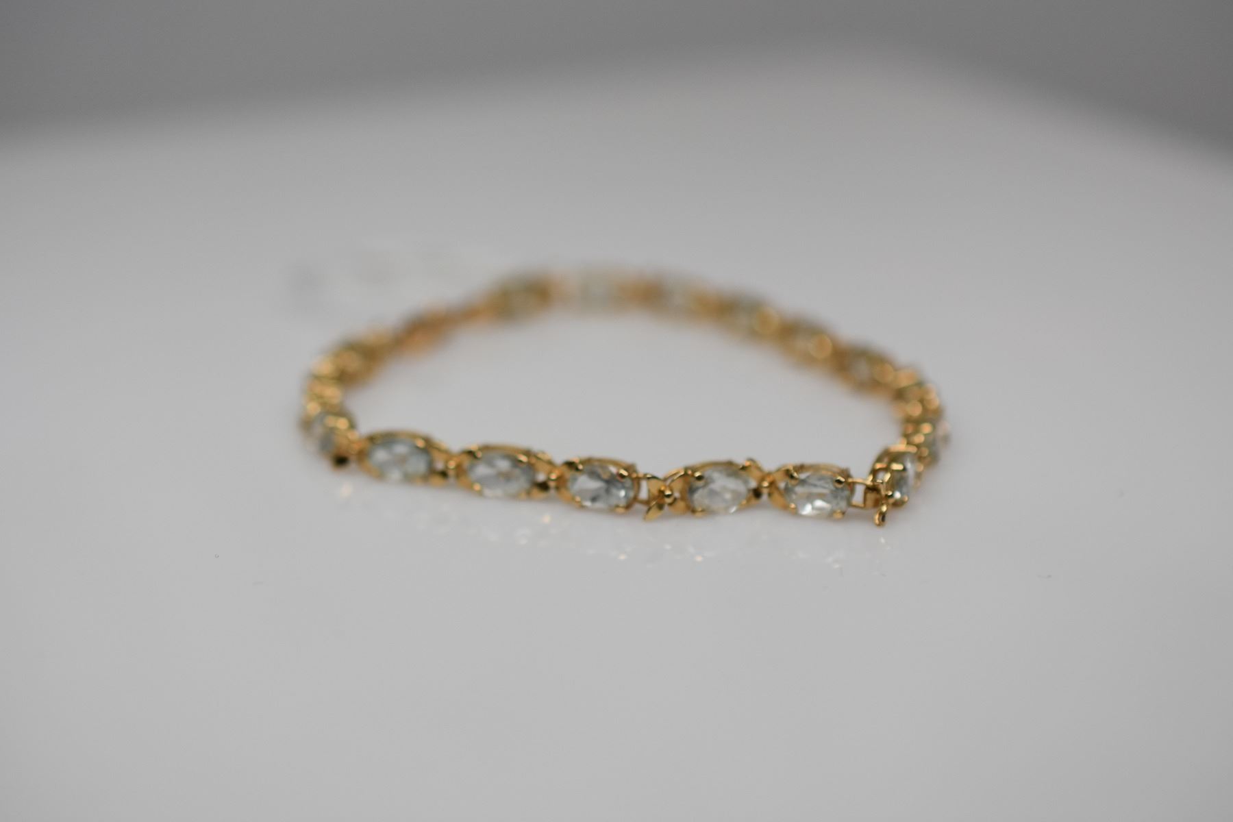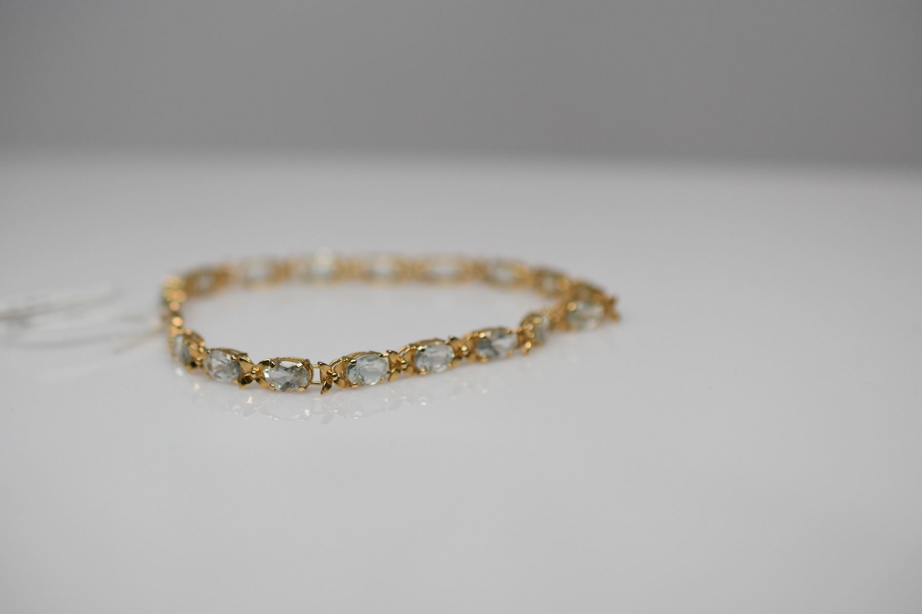 Aquamarine Link Bracelet 7" Length - 17 Aquamarines 4x6mm Each, 8.5 ct Total Wt, 14K Gold, 5.9 g