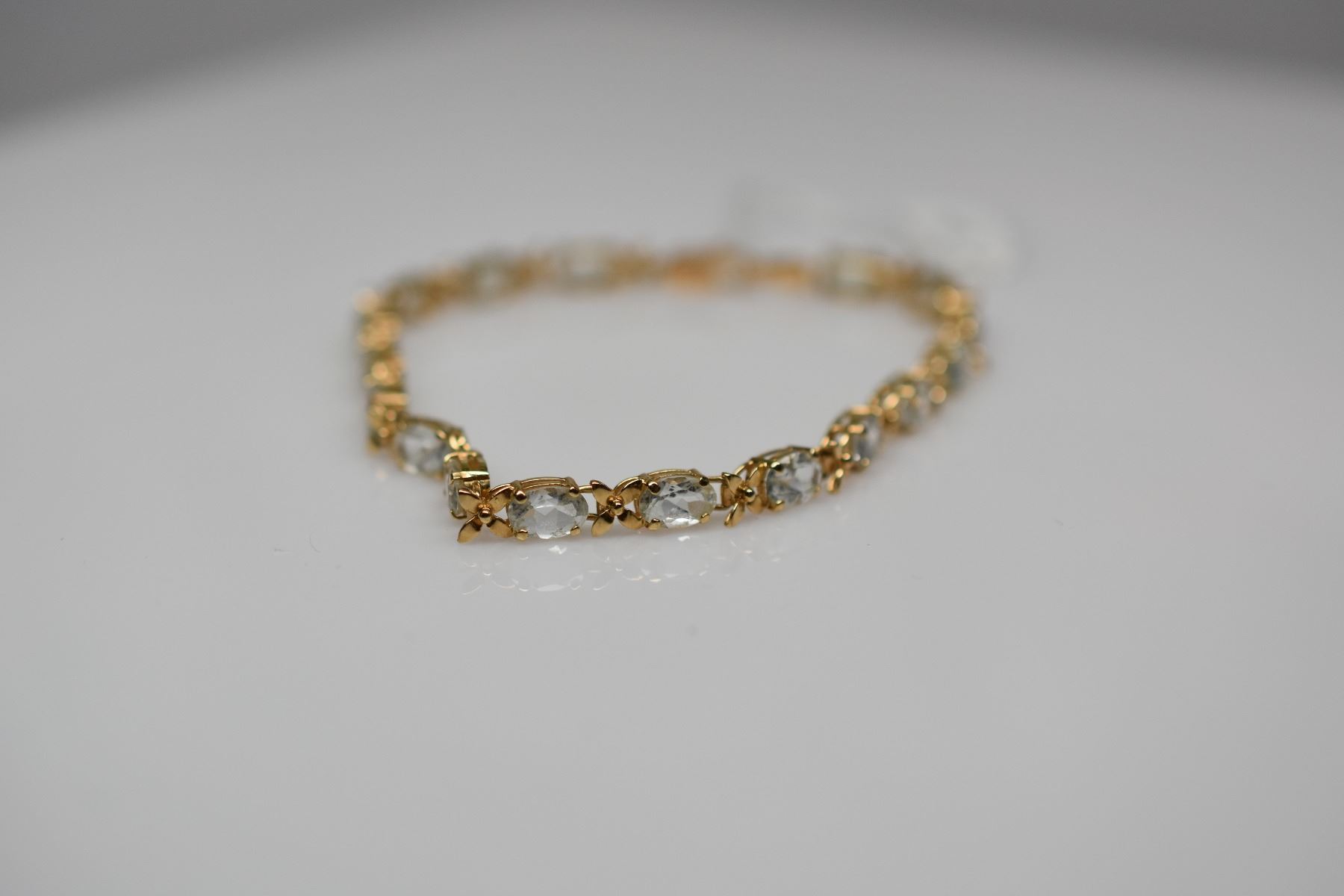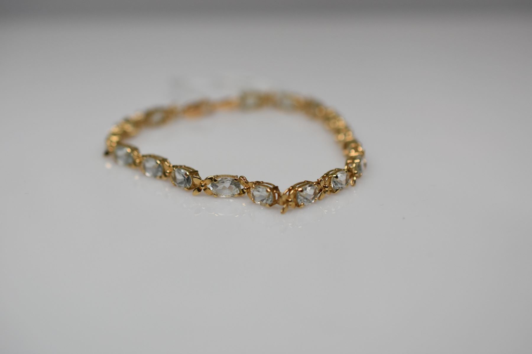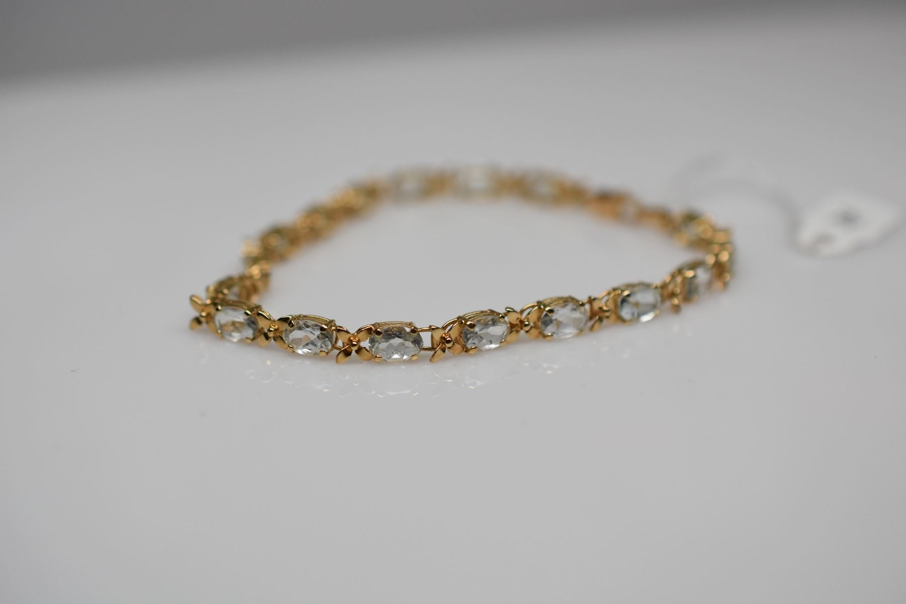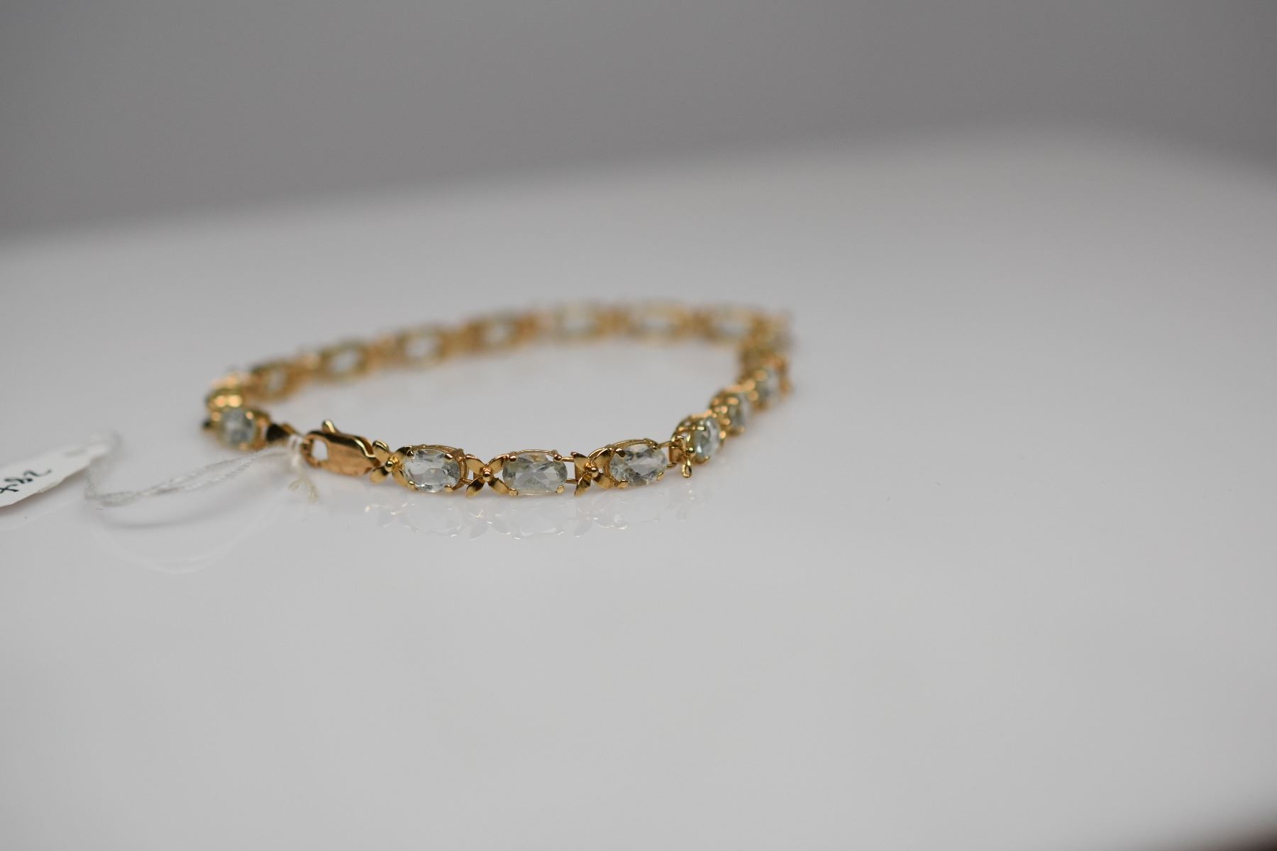 Aquamarine Link Bracelet 7" Length - 17 Aquamarines 4x6mm Each, 8.5 ct Total Wt, 14K Gold, 5.9 g