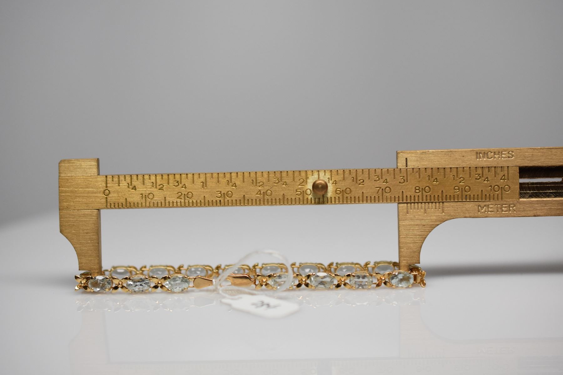 Aquamarine Link Bracelet 7" Length - 17 Oval Faceted Pale Blue Aquamarines 4x6mm Each, Approx. 8.5 ct Total Wt, 14K Yellow Gold, 5.9 g