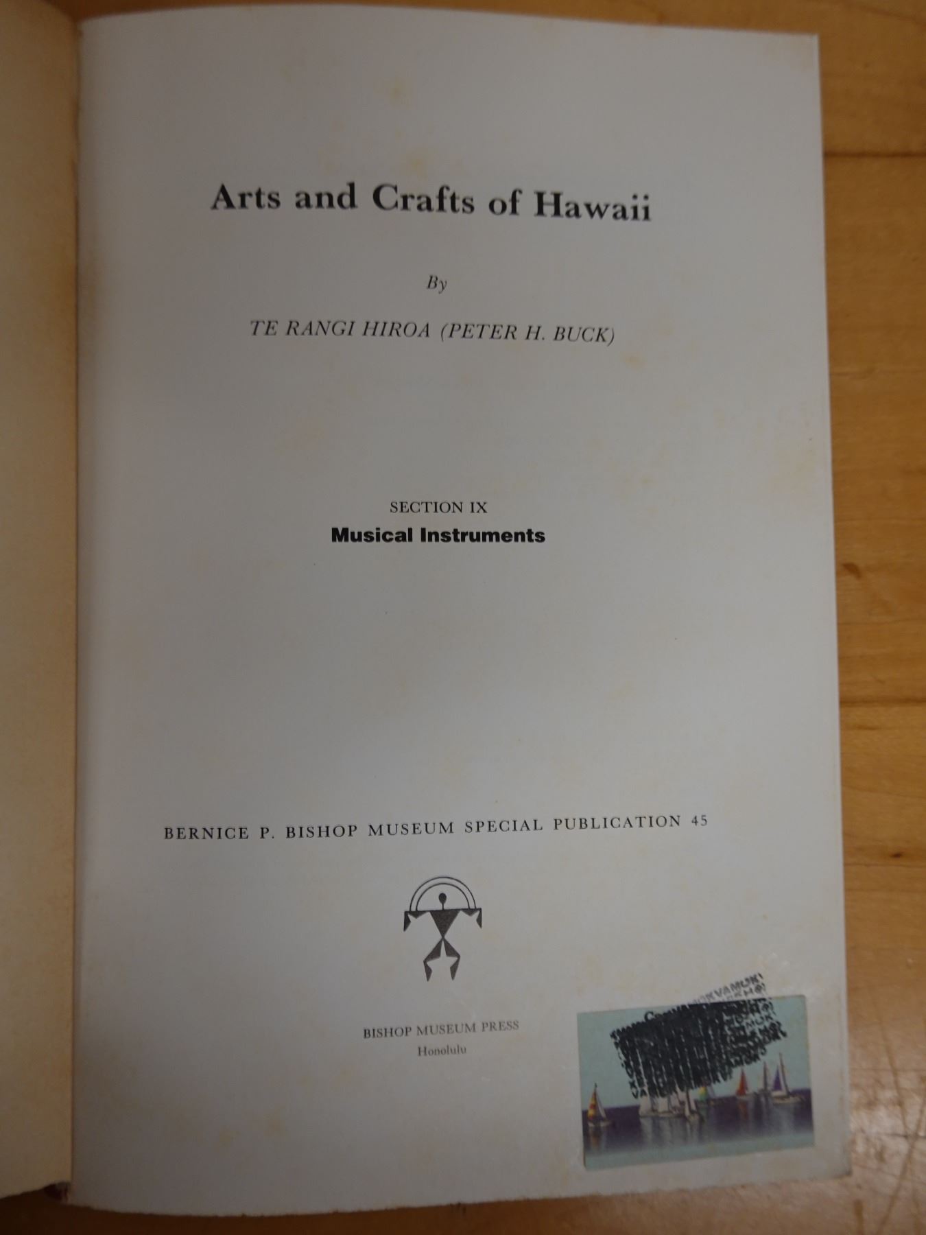 Arts & Crafts of Hawaii by Te Rangi Hiroa (Peter H. Buck) Section IX Musical Instruments, 7"W