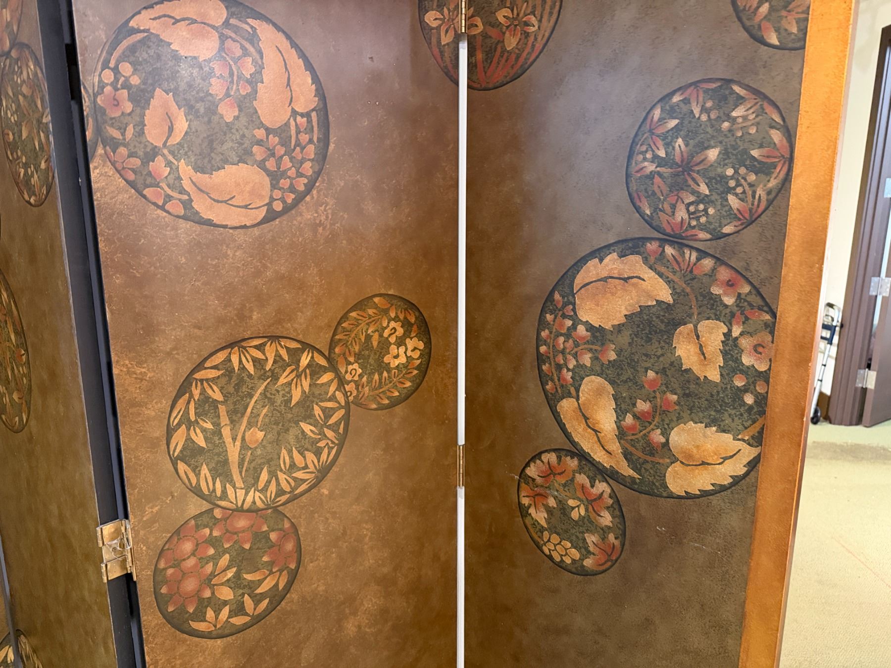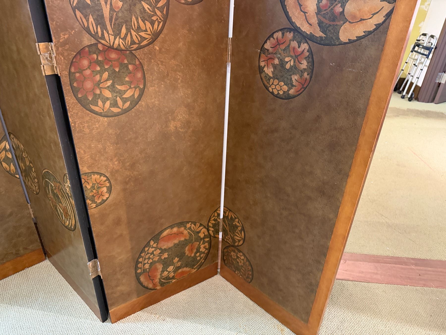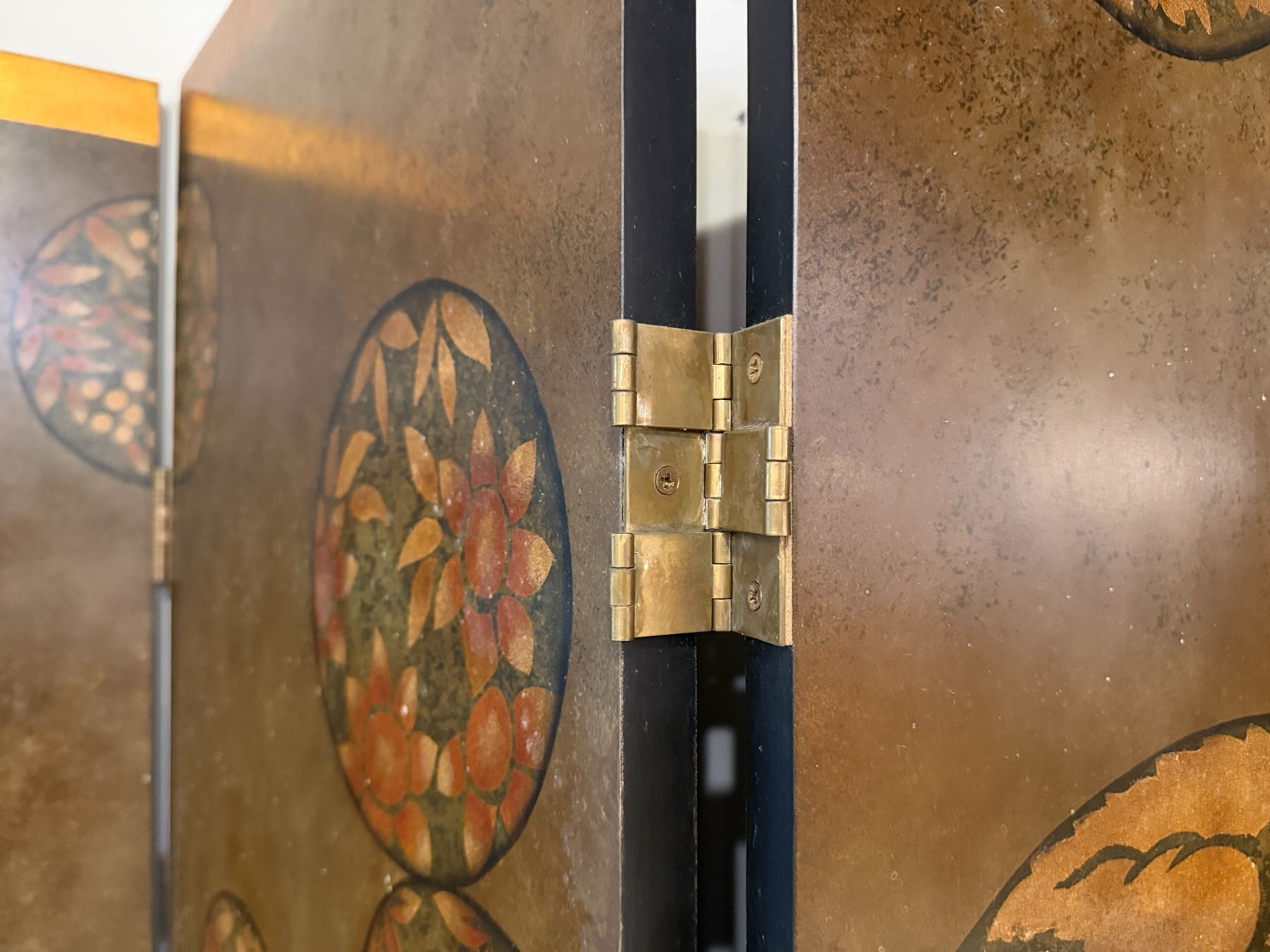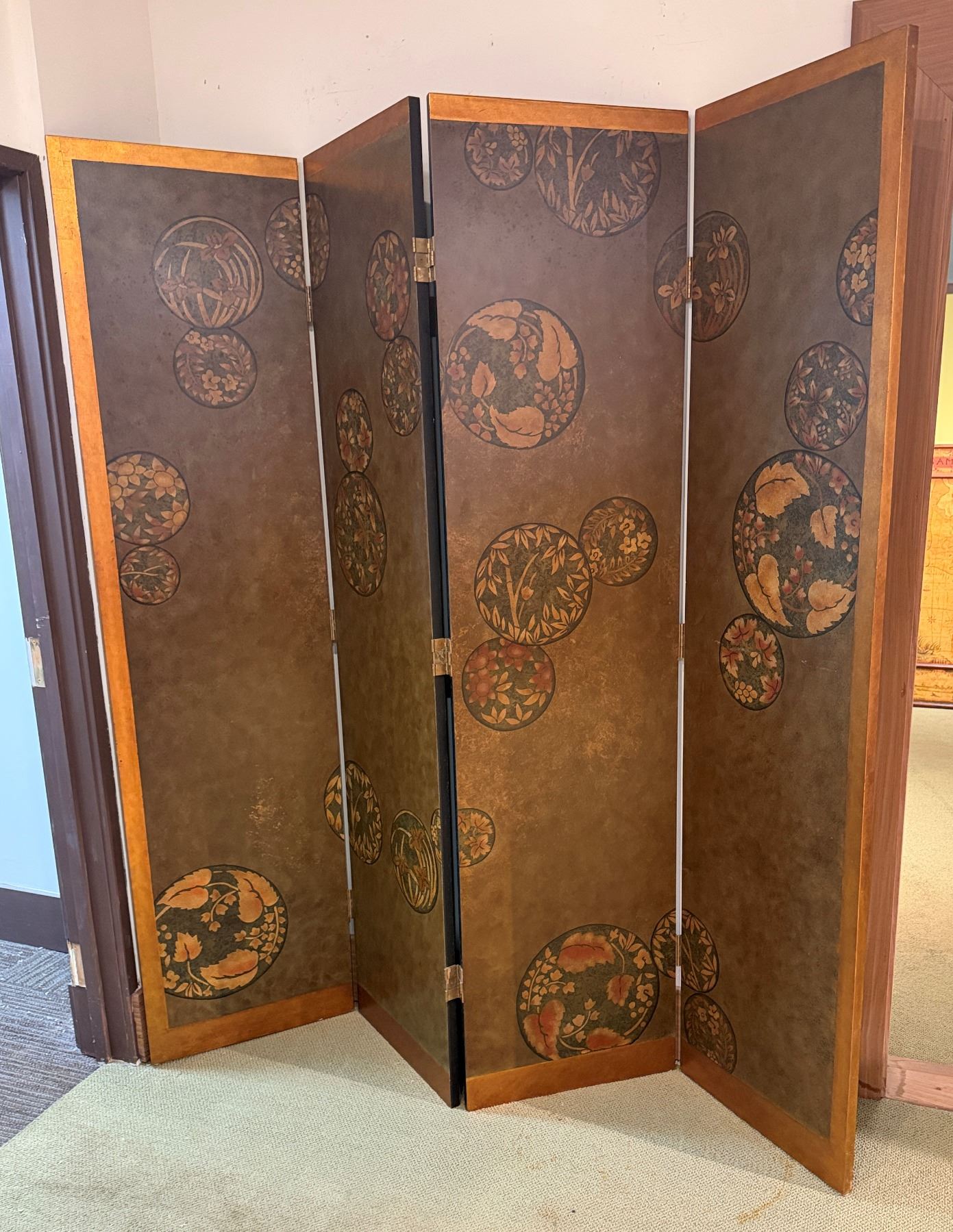 Asian 4-Panel Room Divider Screen w/ Leaf-Motif 20" x 80"H (each panel)