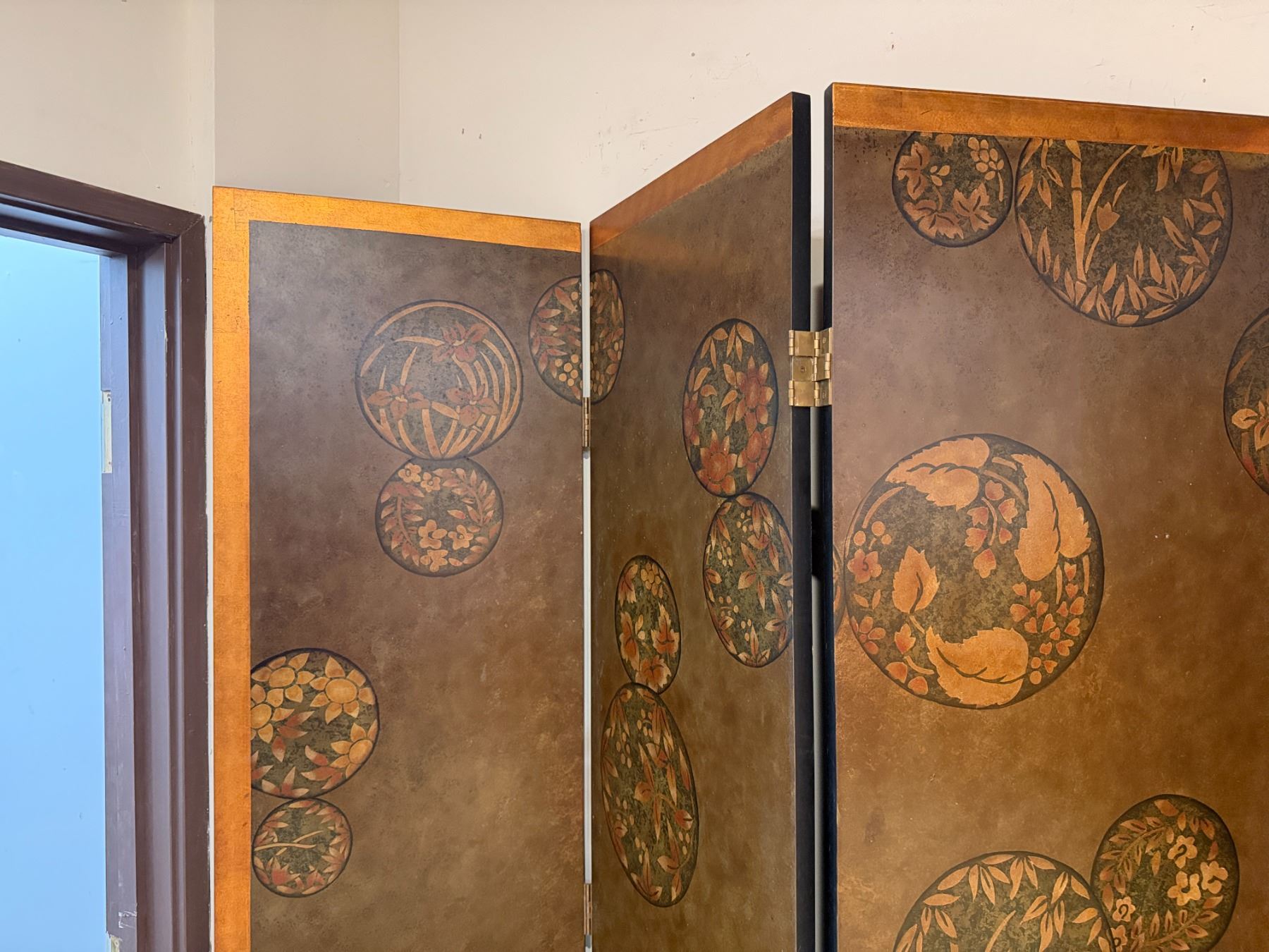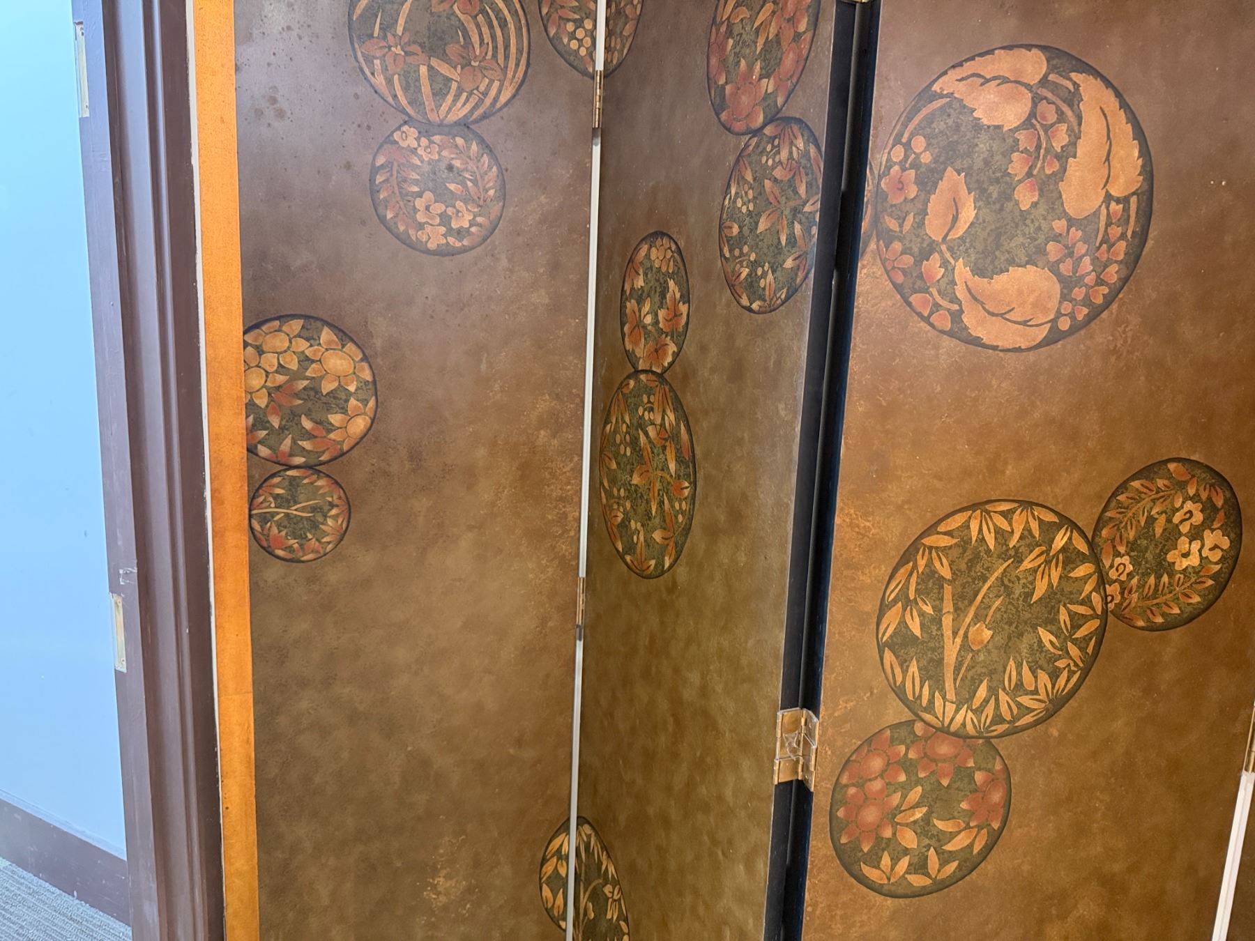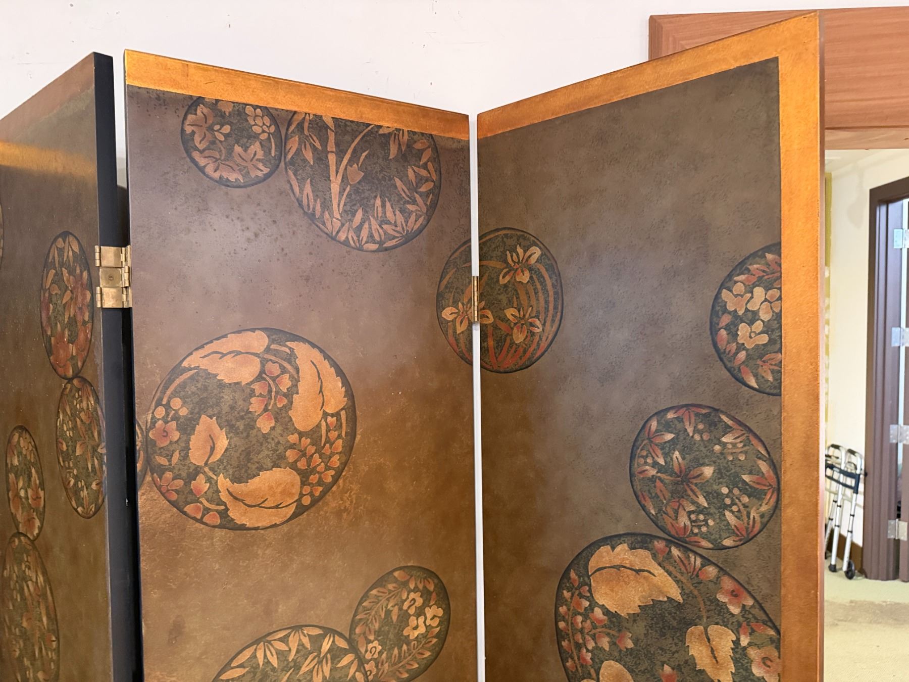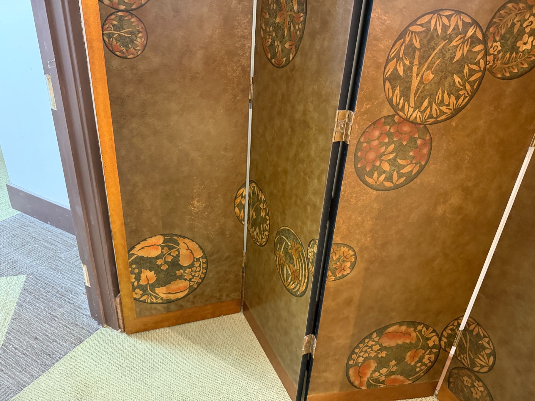 Asian 4-Panel Room Divider Screen w/ Leaf-Motif 20" x 80"H (each panel)