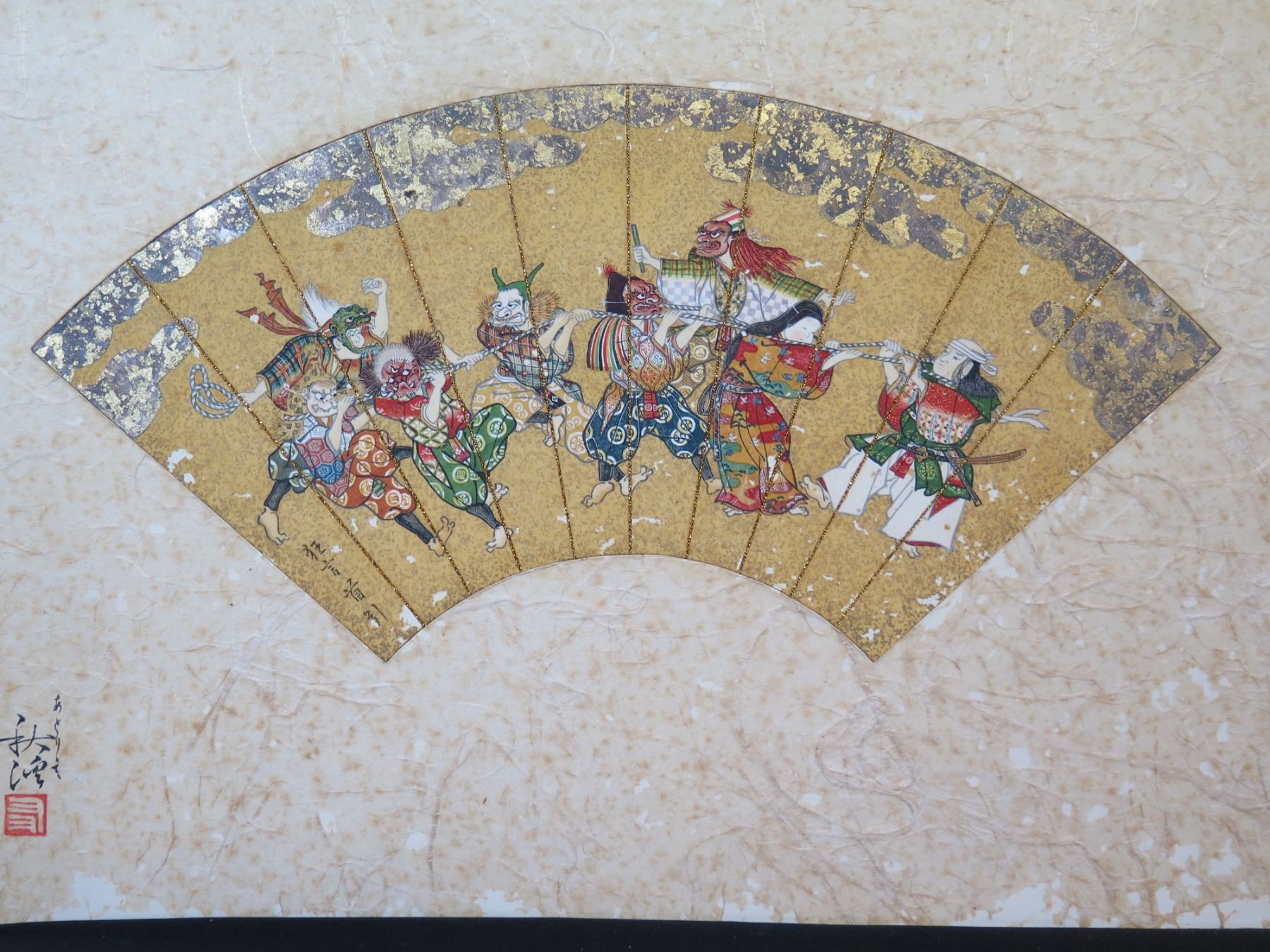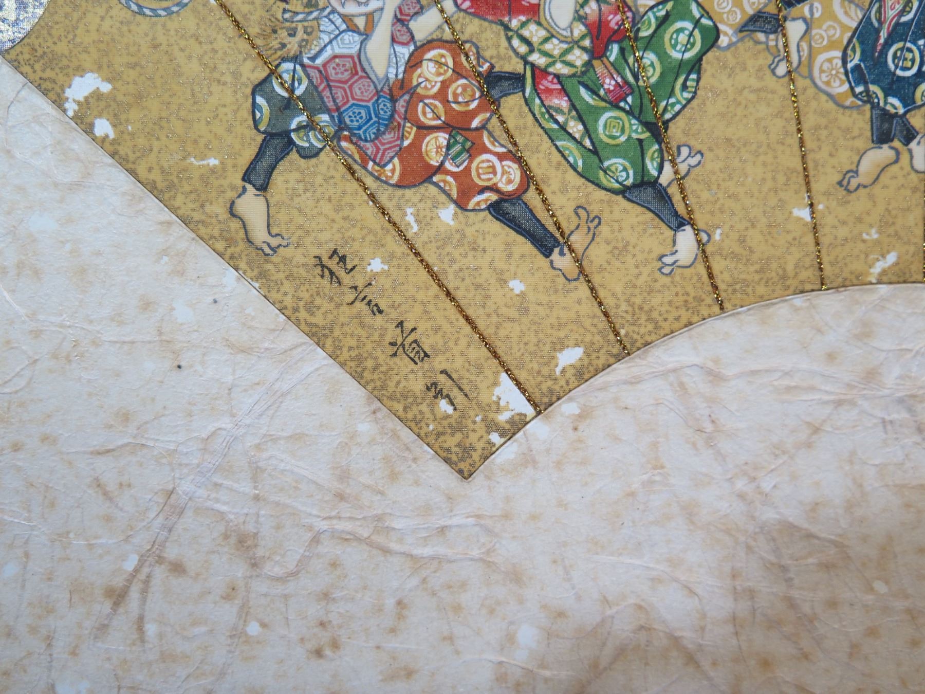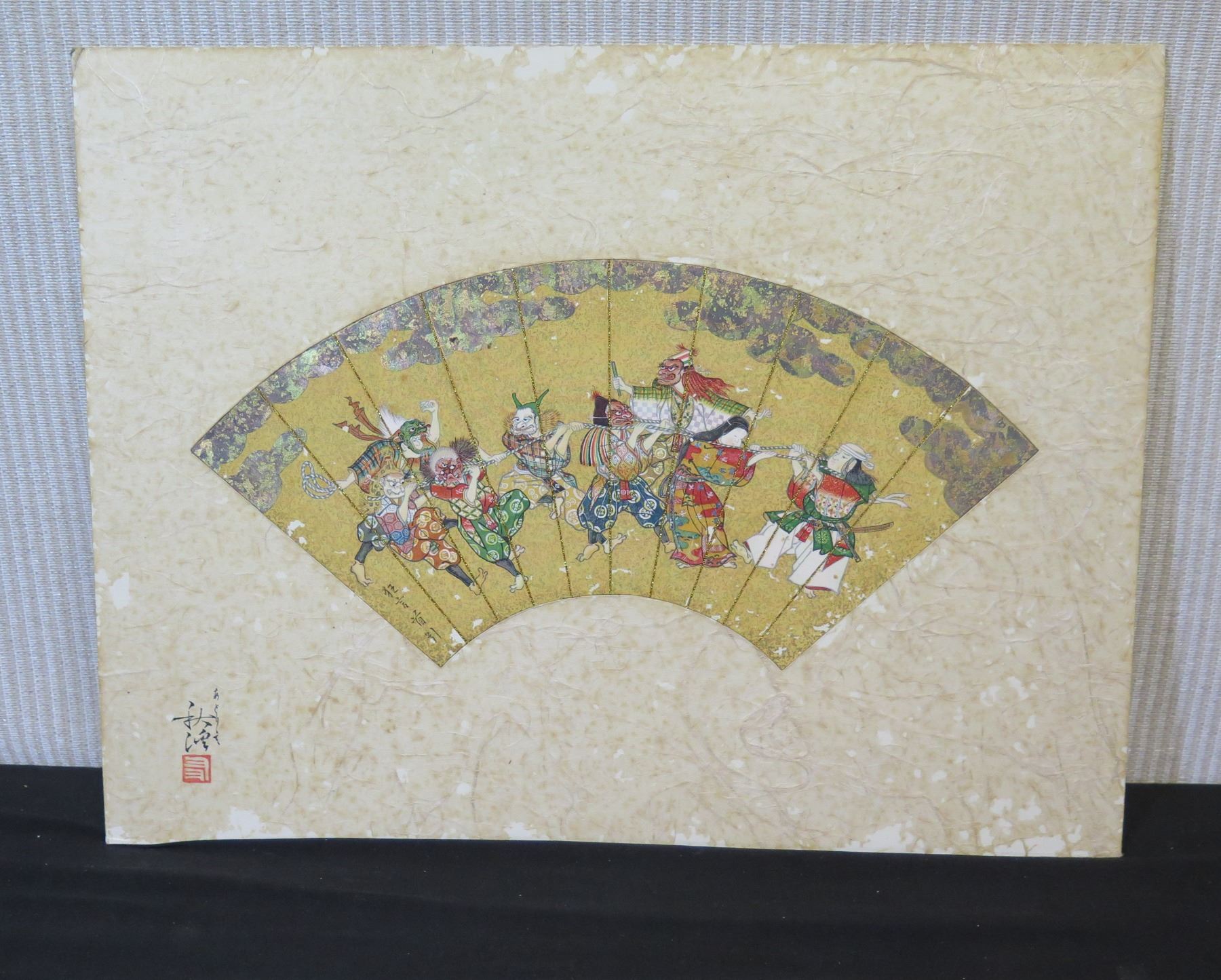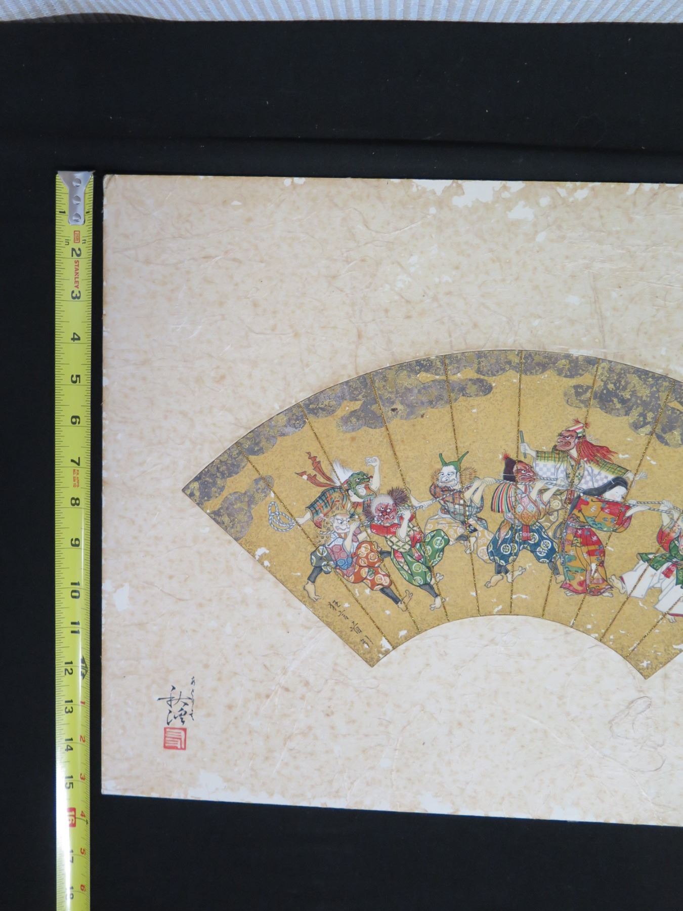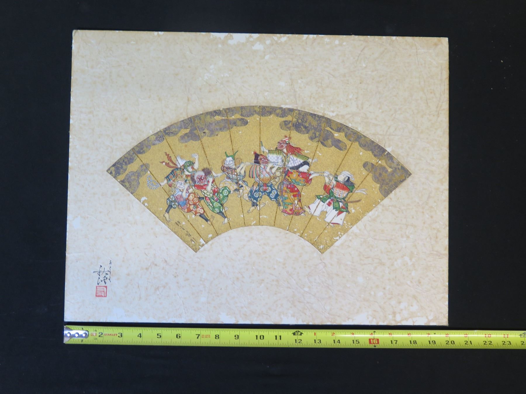 Asian Fan Artwork w/ Maker's Mark, Unframed, 20" x 16"
