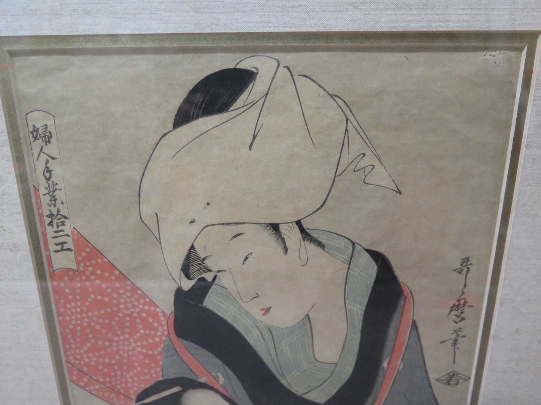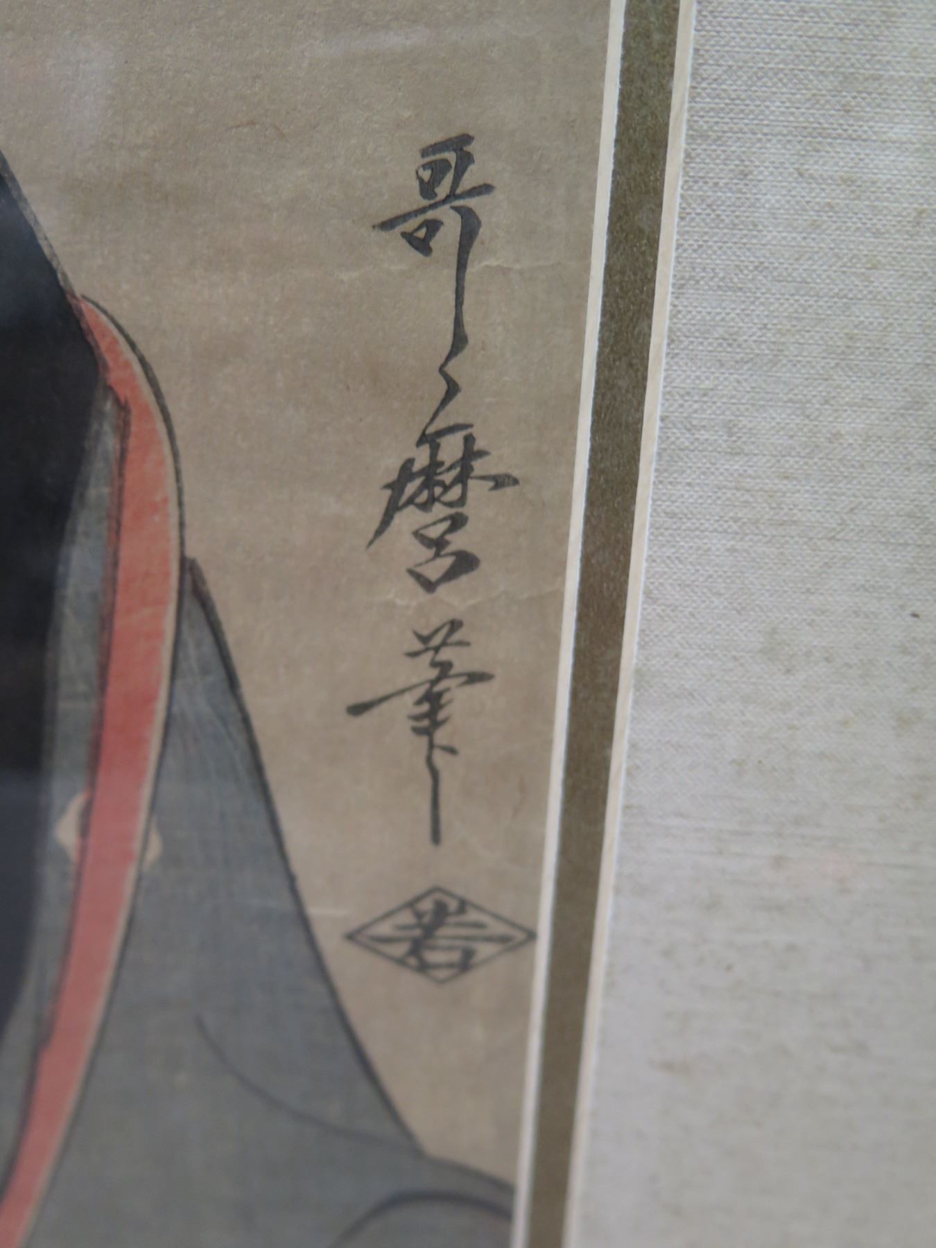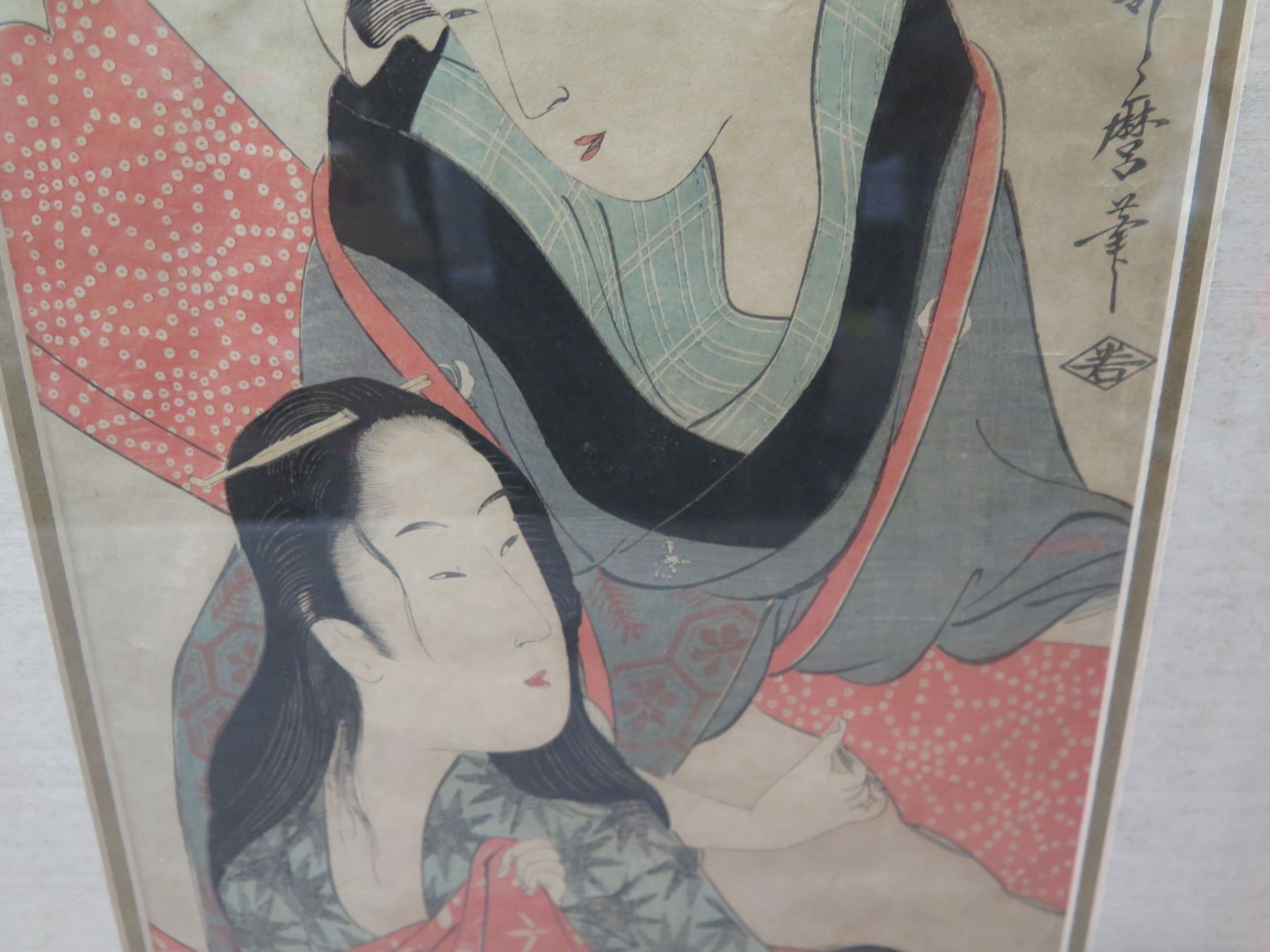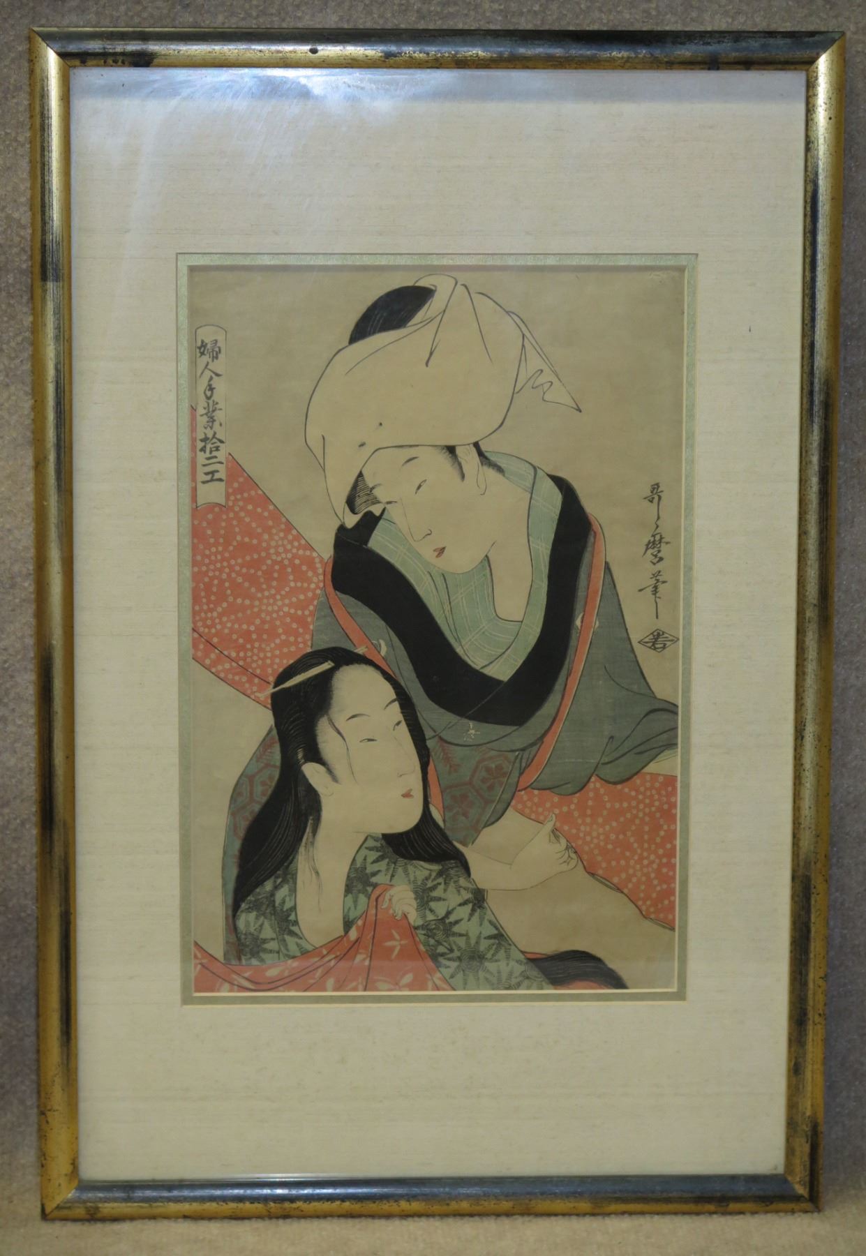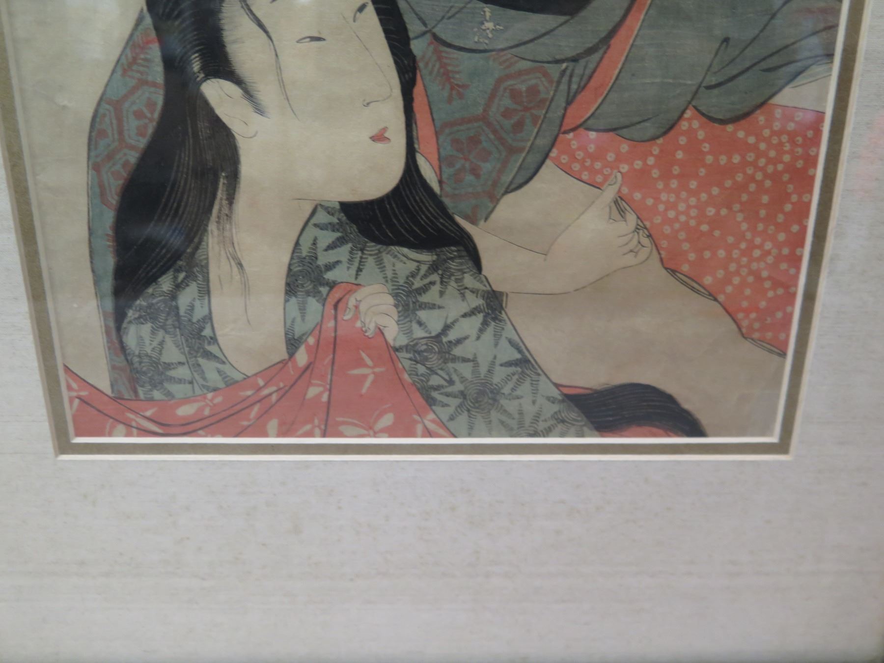 Asian Figures Artwork w/ Oriental Markings, Framed & Matted 15"x23"