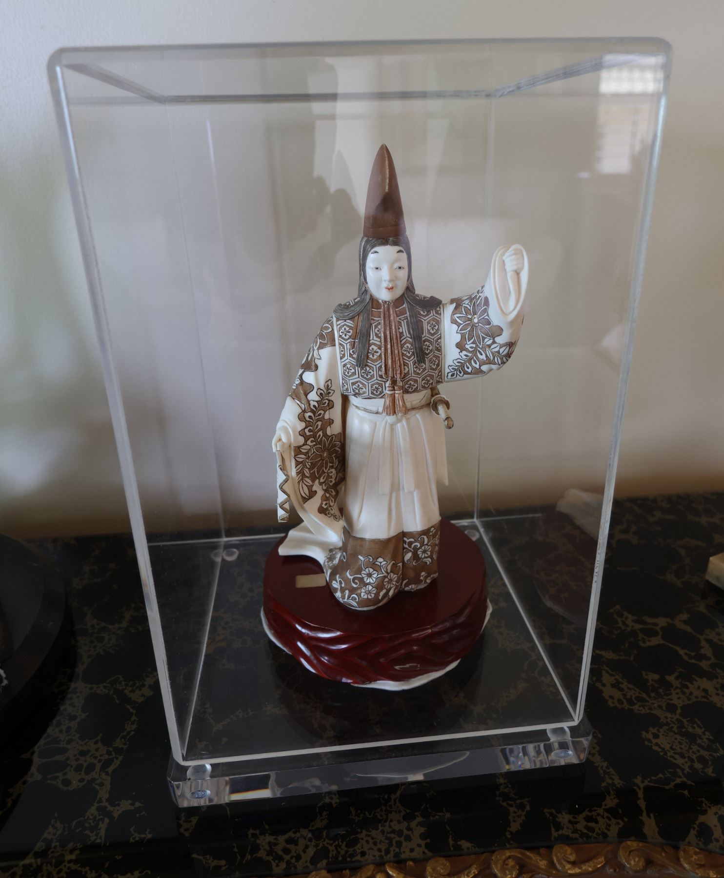 Asian Male Figurine in Display Case 8" x 8" x 13"H