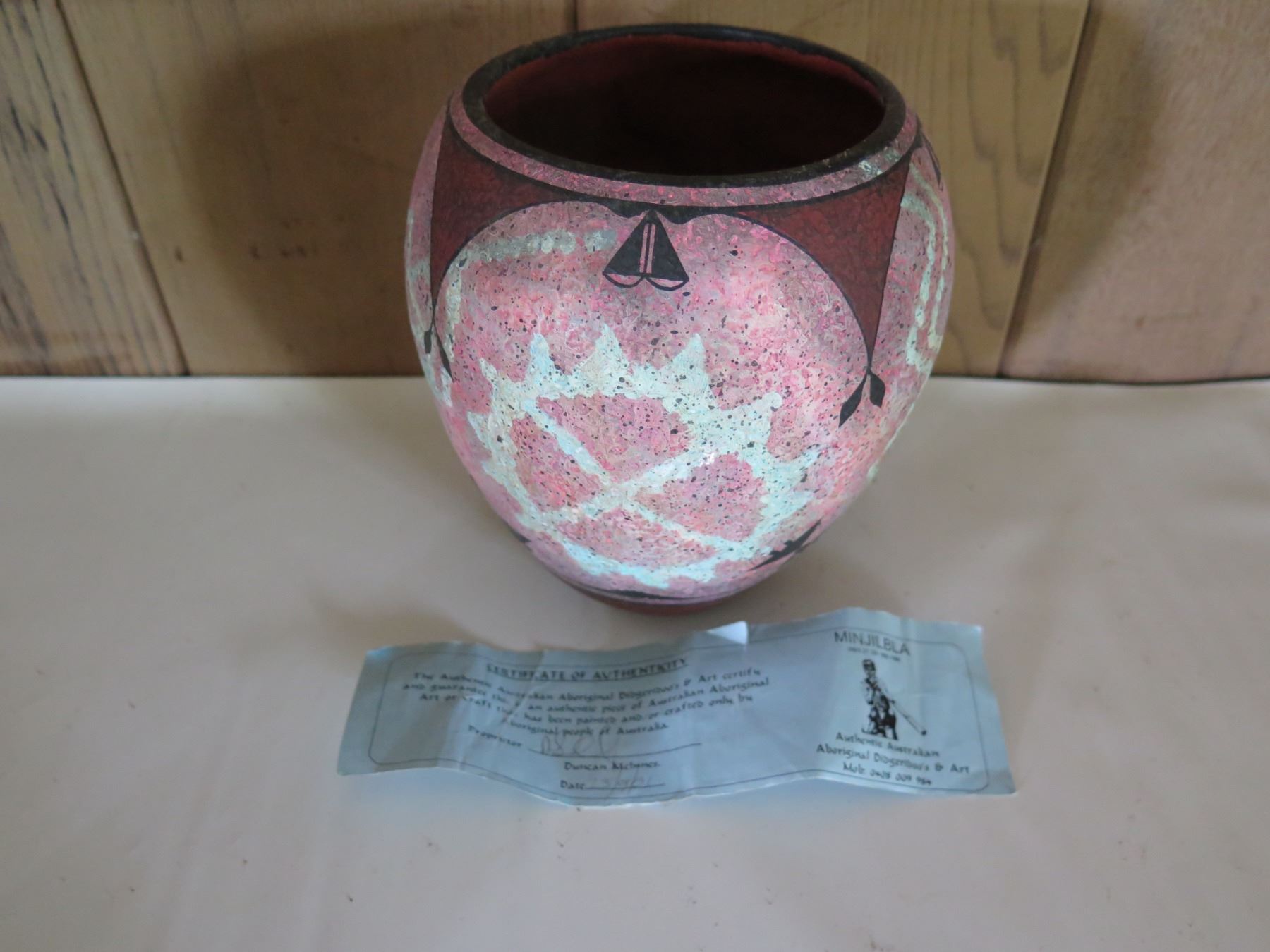 Australian Aboriginal Ceramic Vase Signed & Certified 7" Tall