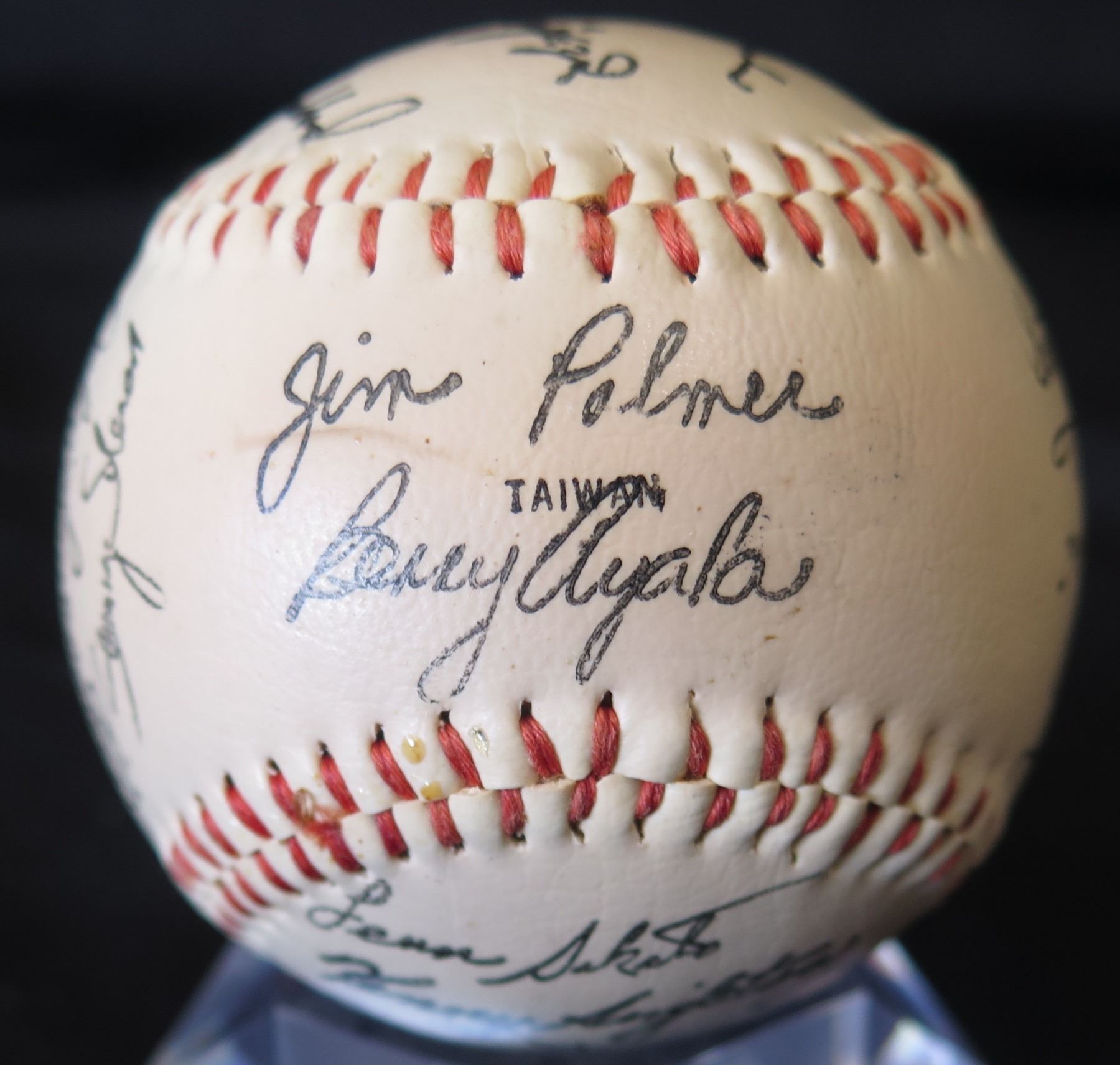Autographed Baseball: Signed Jim Palmer, Tim Stoddard & Others (Stand Not Included)