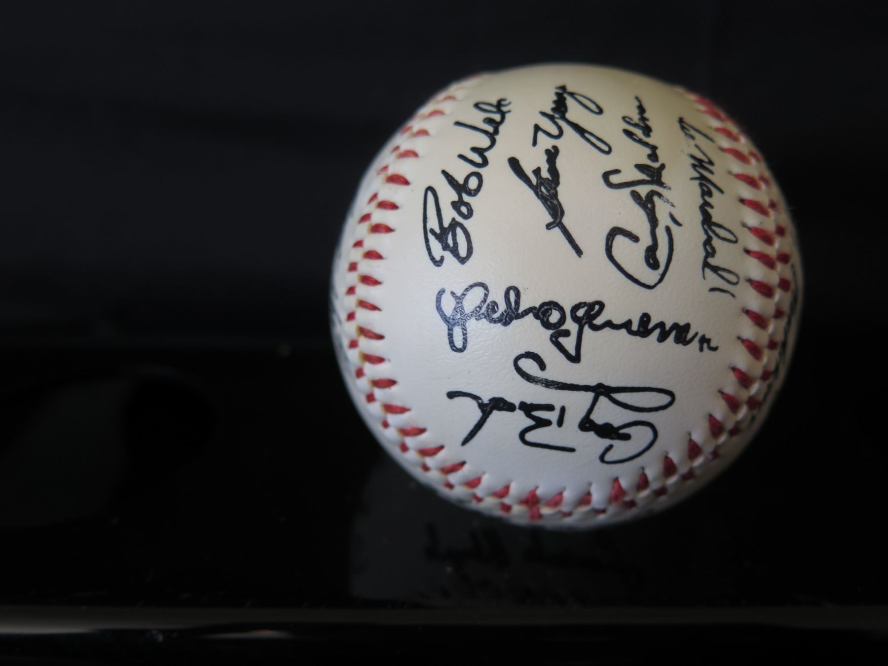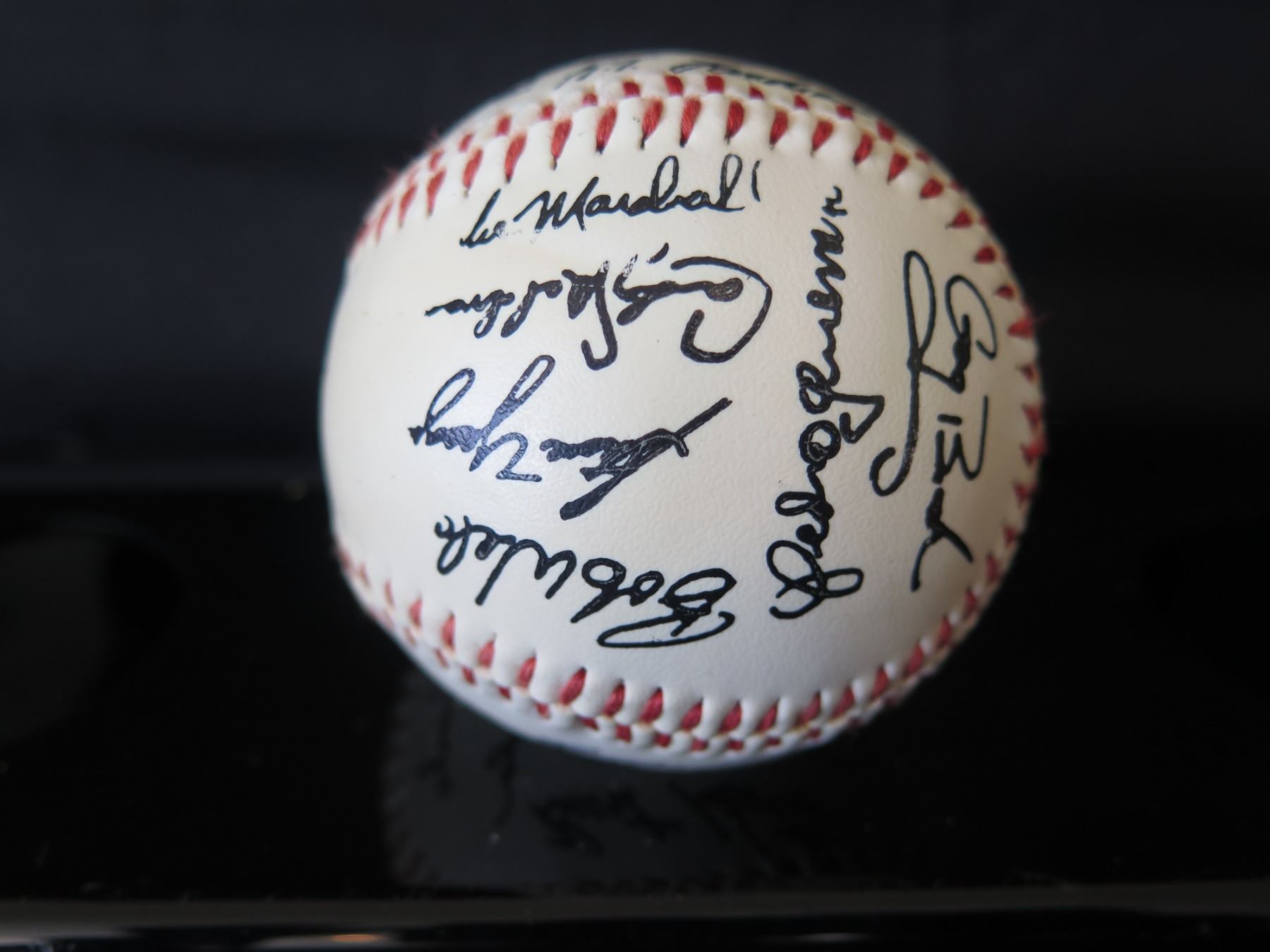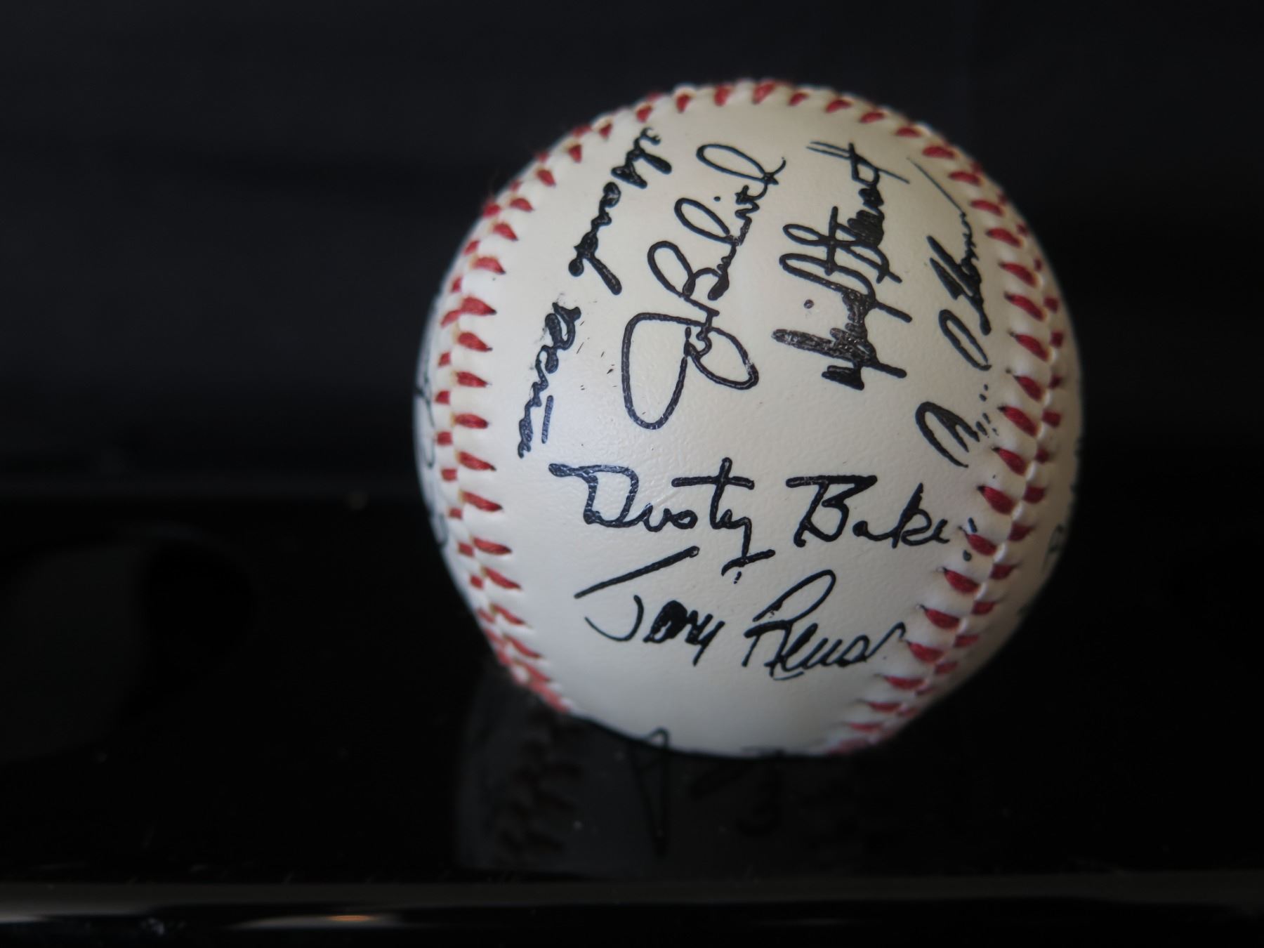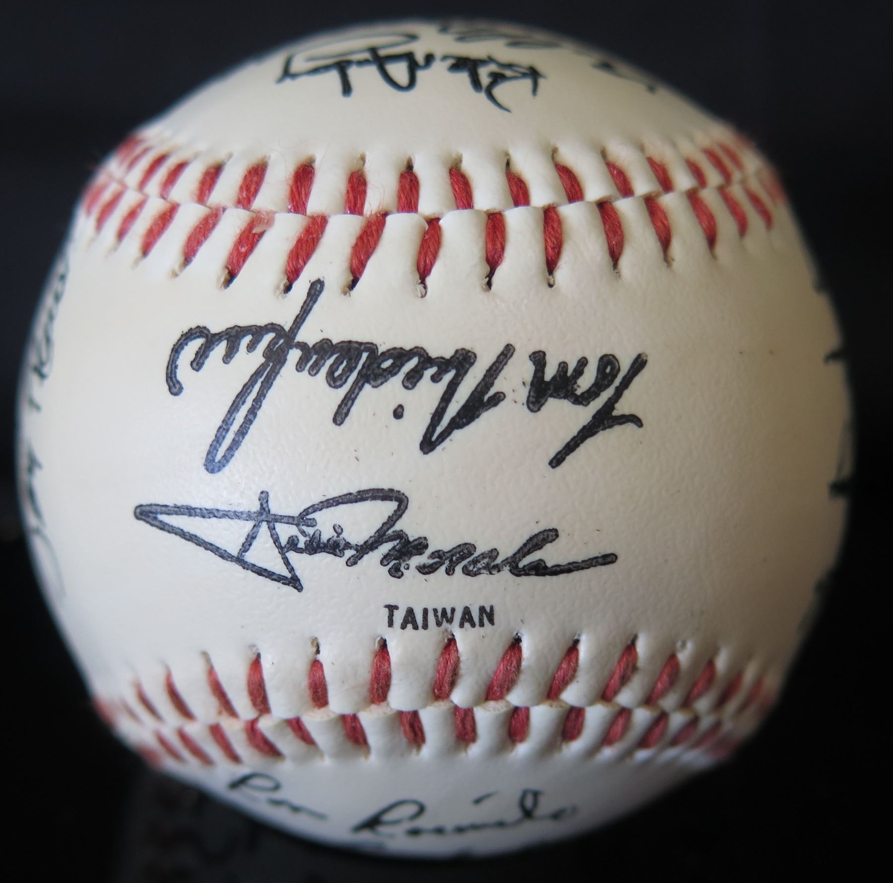 Autographed Baseball: Signed Lee Marshall, Mike Scioscia & Others (Stand Not Included)
