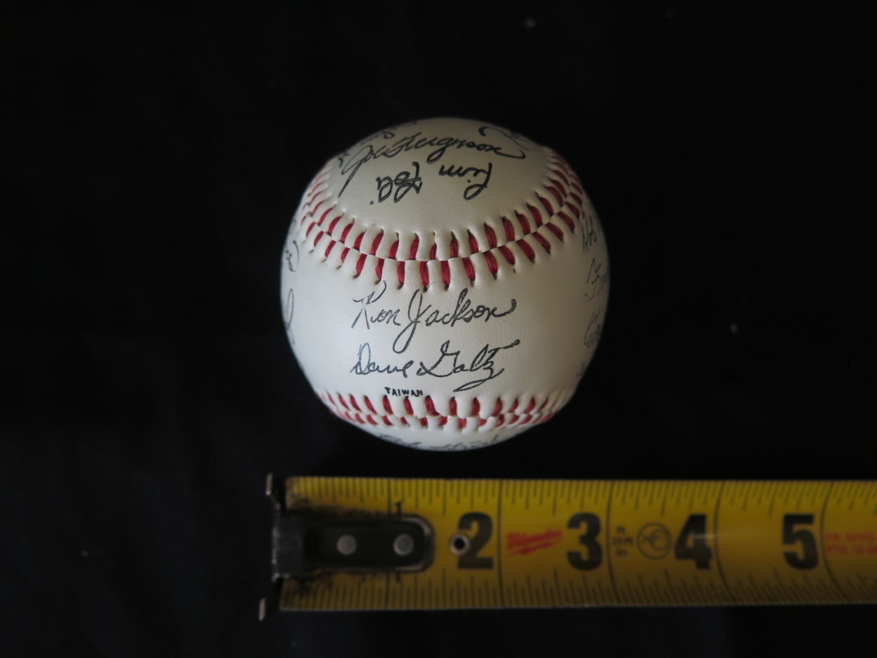 Autographed Baseball: Signed Reggie Jackson, Don Aase & Others (Stand Not Included)