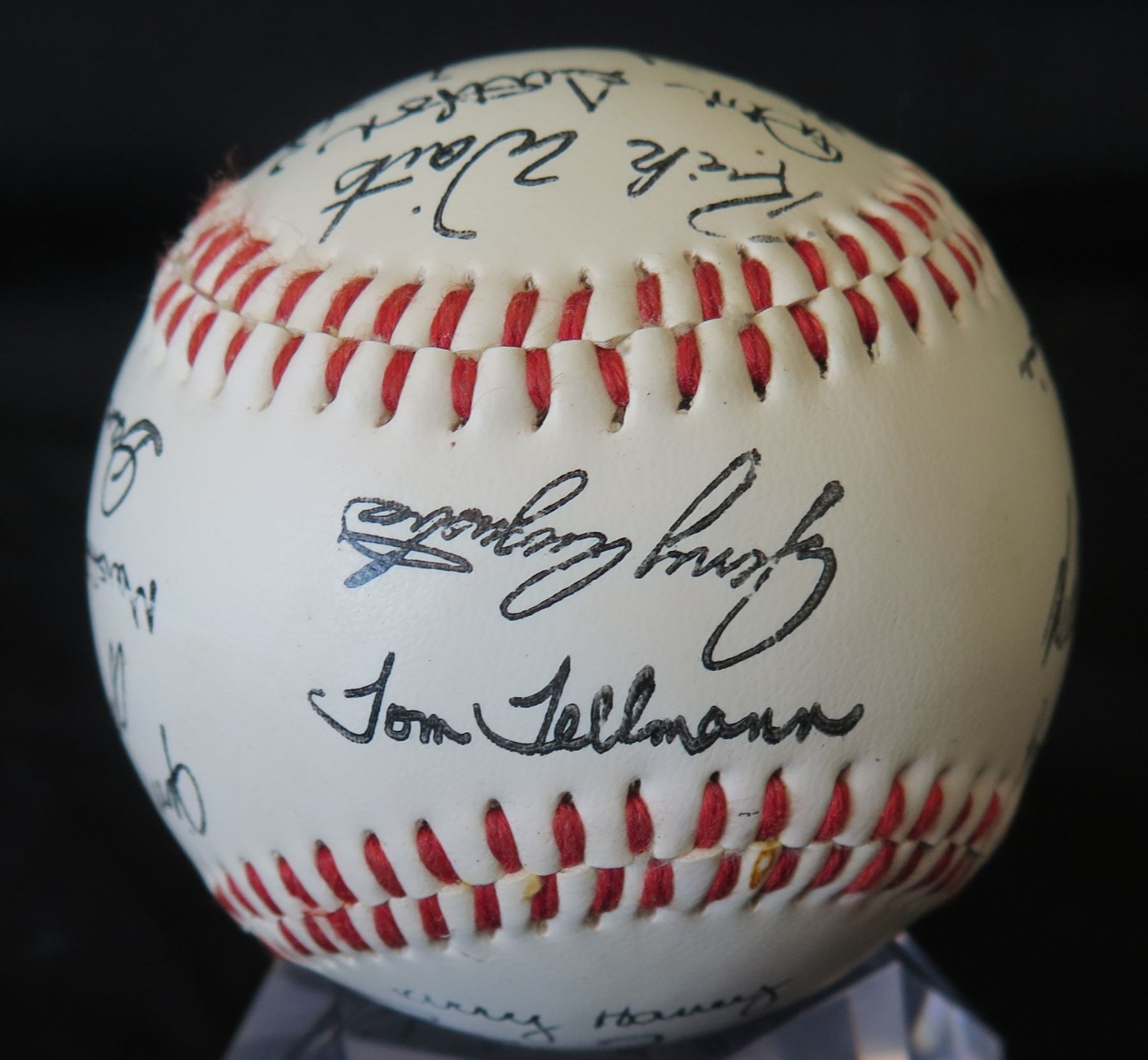 Autographed Baseball: Signed Tom Tellmann, Bob McClure & Others (Stand Not Included)