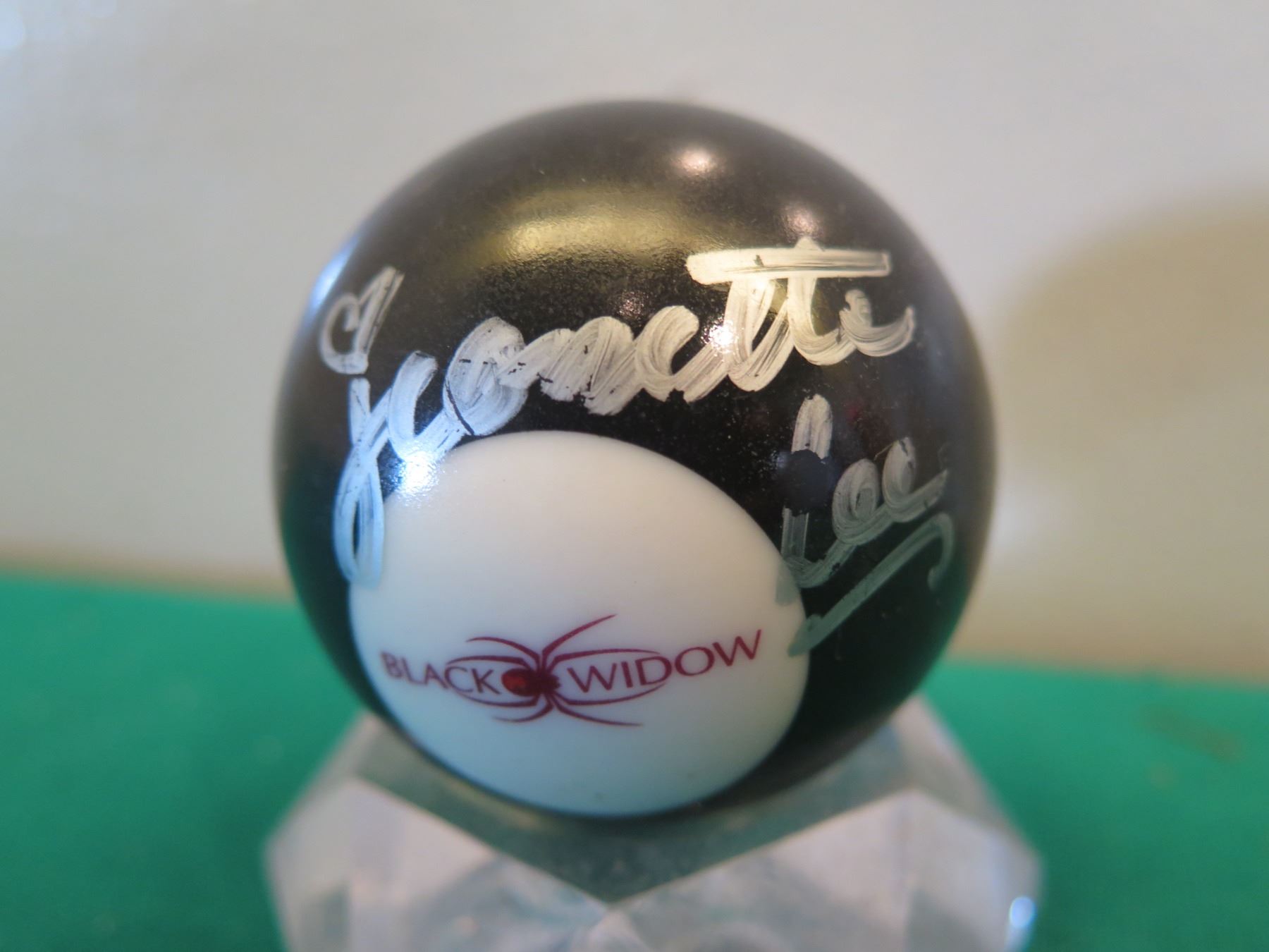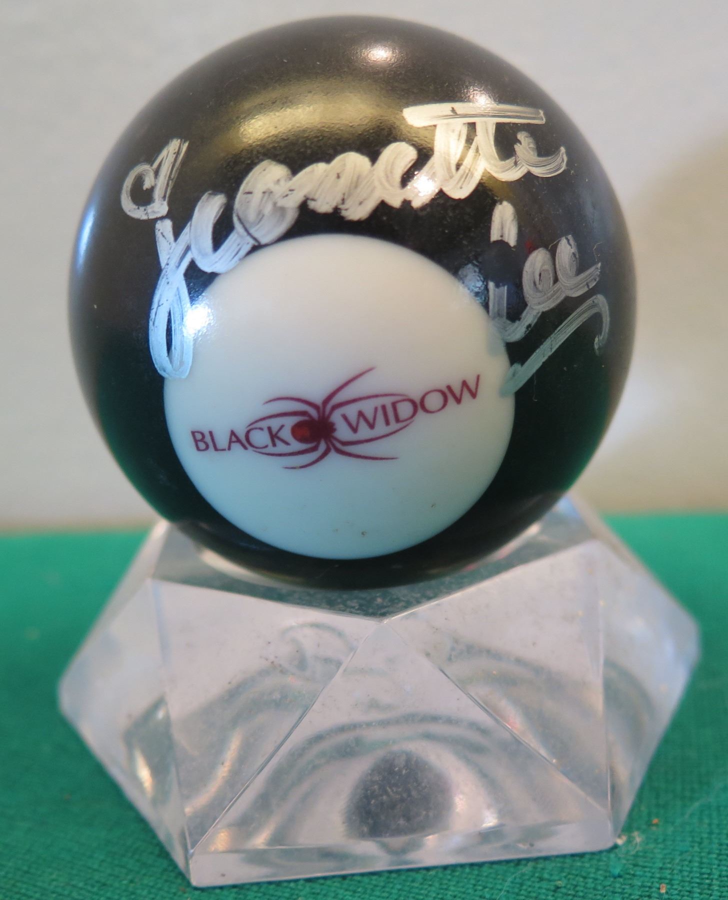 Autographed Jeannette Lee Black Widow 8 Ball on Stand