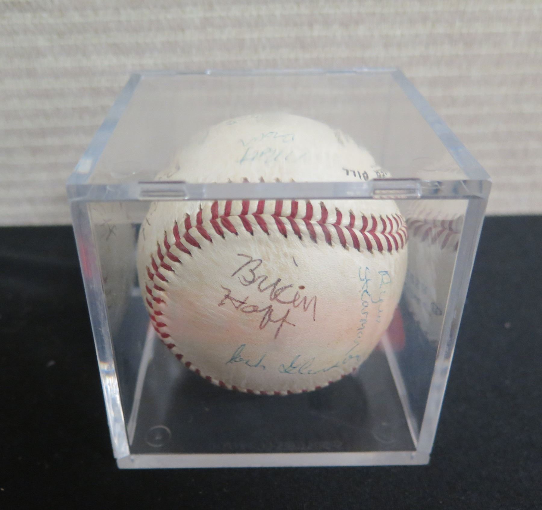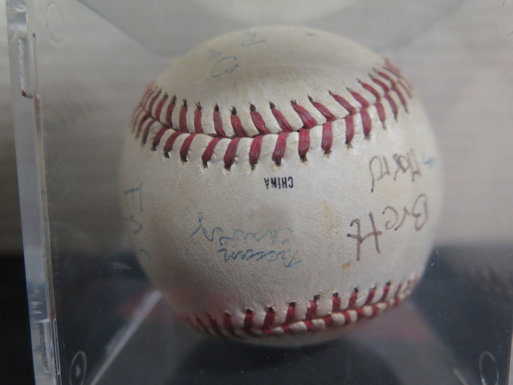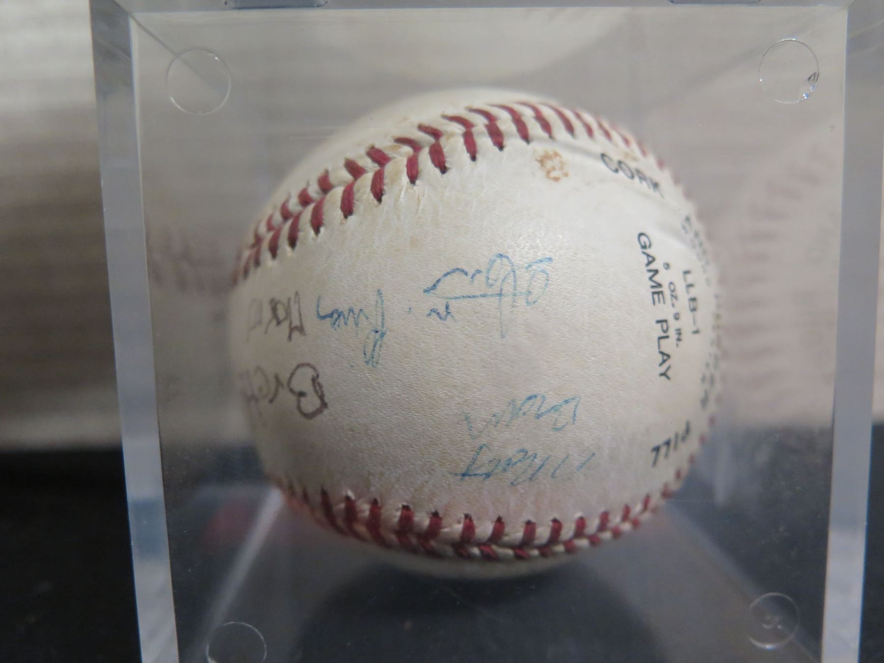 Autographed Little League Leather Ball Signed by Team in Square Display
