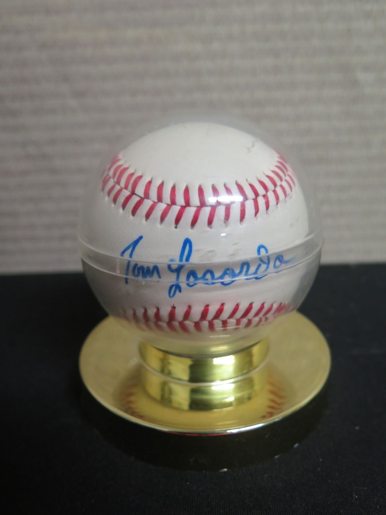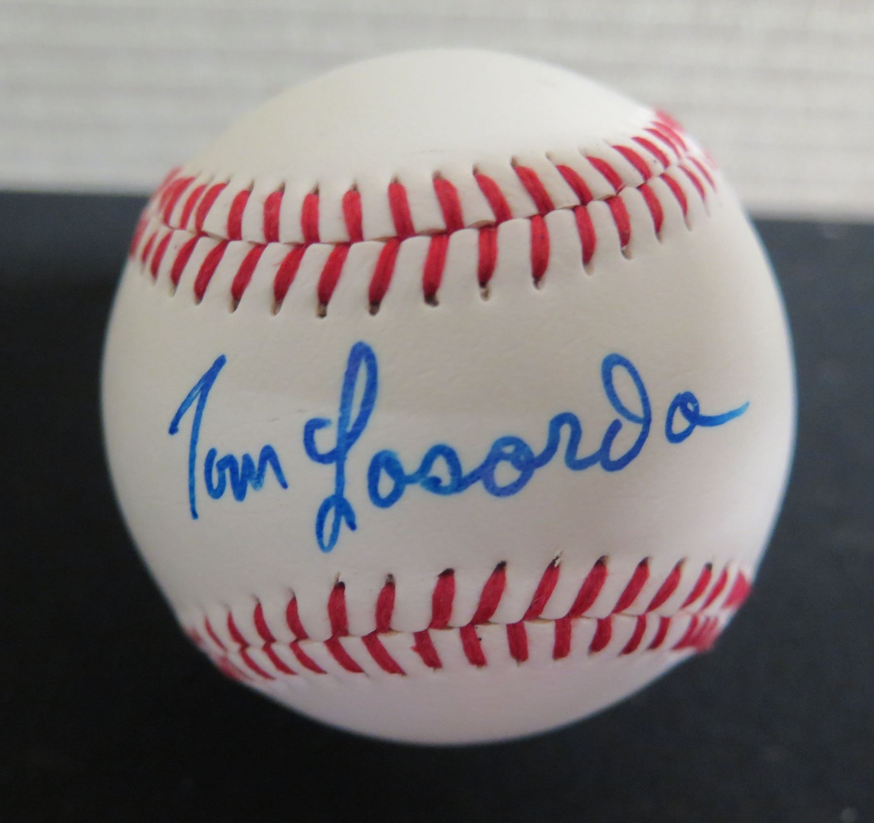 Autographed Spaulding 6000S Baseball Signed Tom Lasorda In Stand