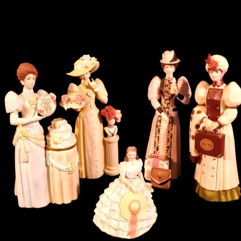 These figurines were only given to the top Avon sales representatives to commemorate membership into the President's Club. It is called the Mrs. Albee award and it's a porcelain figurine depicting Mrs. Albee (Persis Foster Eames Albee), who is considered Avon's first sales representative.