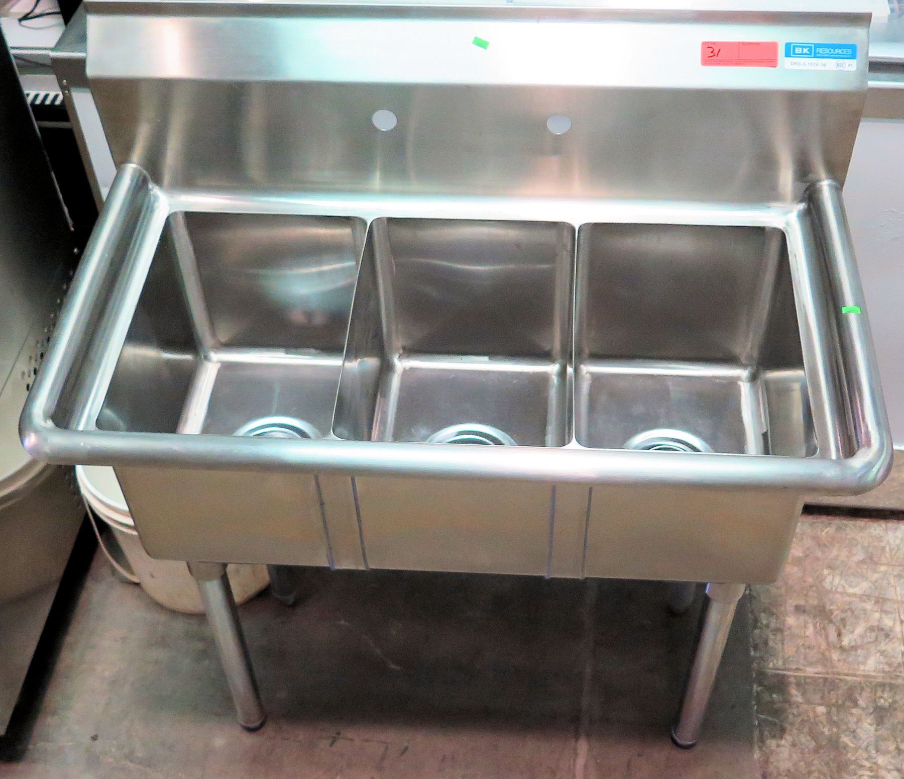 BK Resources Stainless Steel 3-Basin Sink, Model BKS-3-1014-10