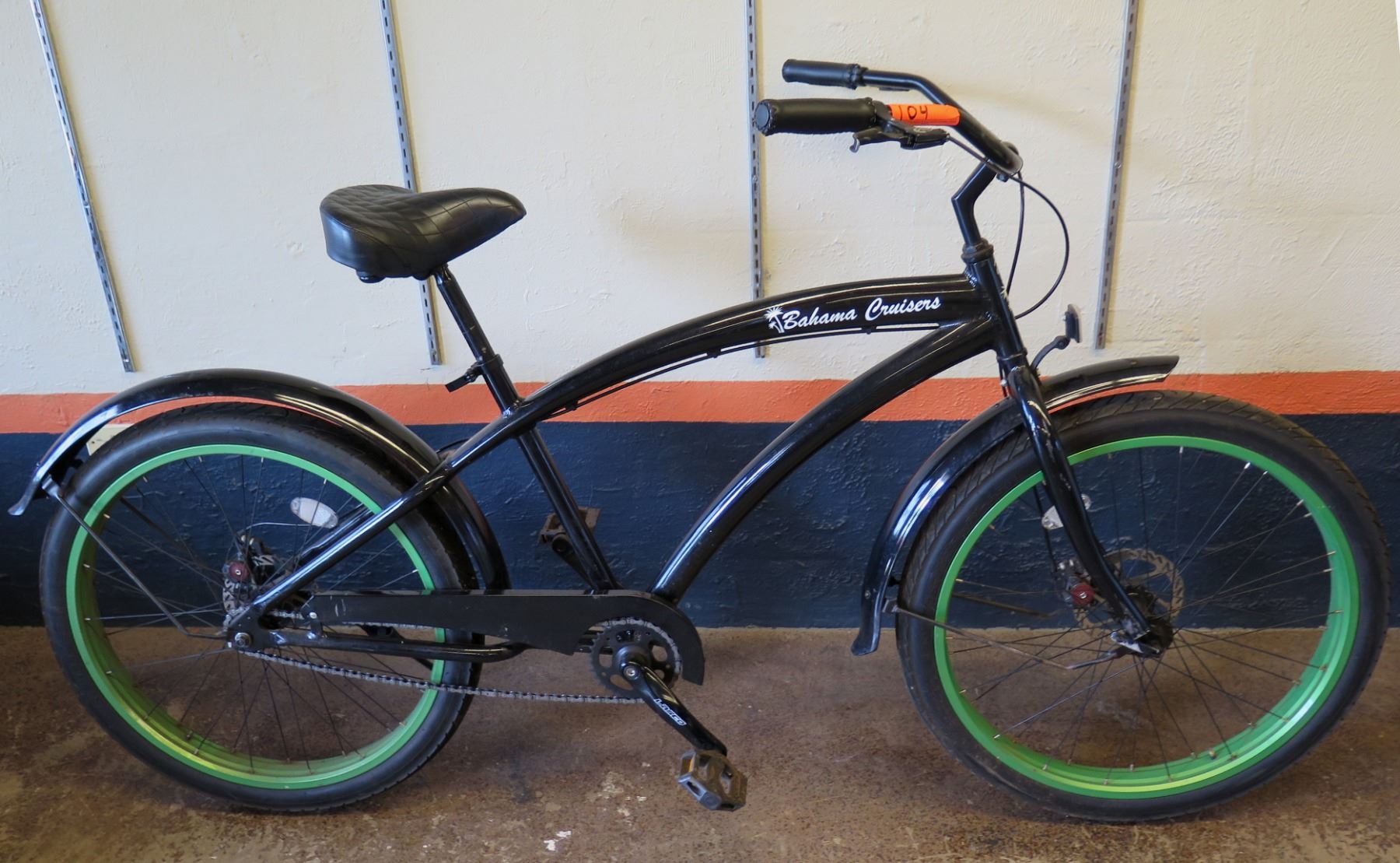 Bahama Cruisers 26" Single-Speed Fat Tire Bike w/ Upgraded Components. Retail price new $549.99 plus $104.99 for brakes. Link to the manufacturer's website for this bike. https://fattirecruisers.com/collections/custom-beach-cruisers-fat-tire-cruisers-all-products/products/single-speed-fat-tire-beach-cruiser-bicycle-pink-diamond-frame-black-wheels. This bike has an upgraded disc brake system (BB-7 mechanical disc brake), which retails new for $104.99. This is the link https://www.amazon.com/SRAM-Avid-Front-Brake-140mm/dp/B00DH20B4S/ref=sr_1_6?dchild=1& keywords=avid+bb7+mechanical+disc+brakes& qid=1593811941& sr=8-6