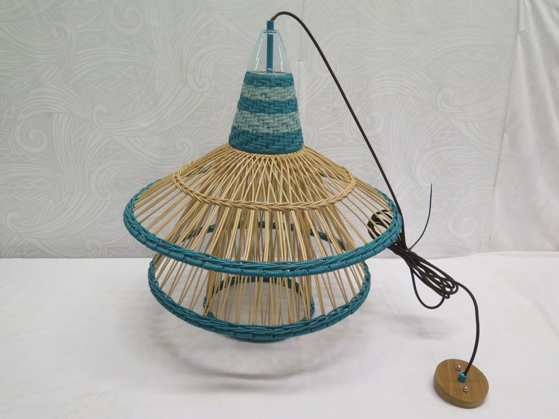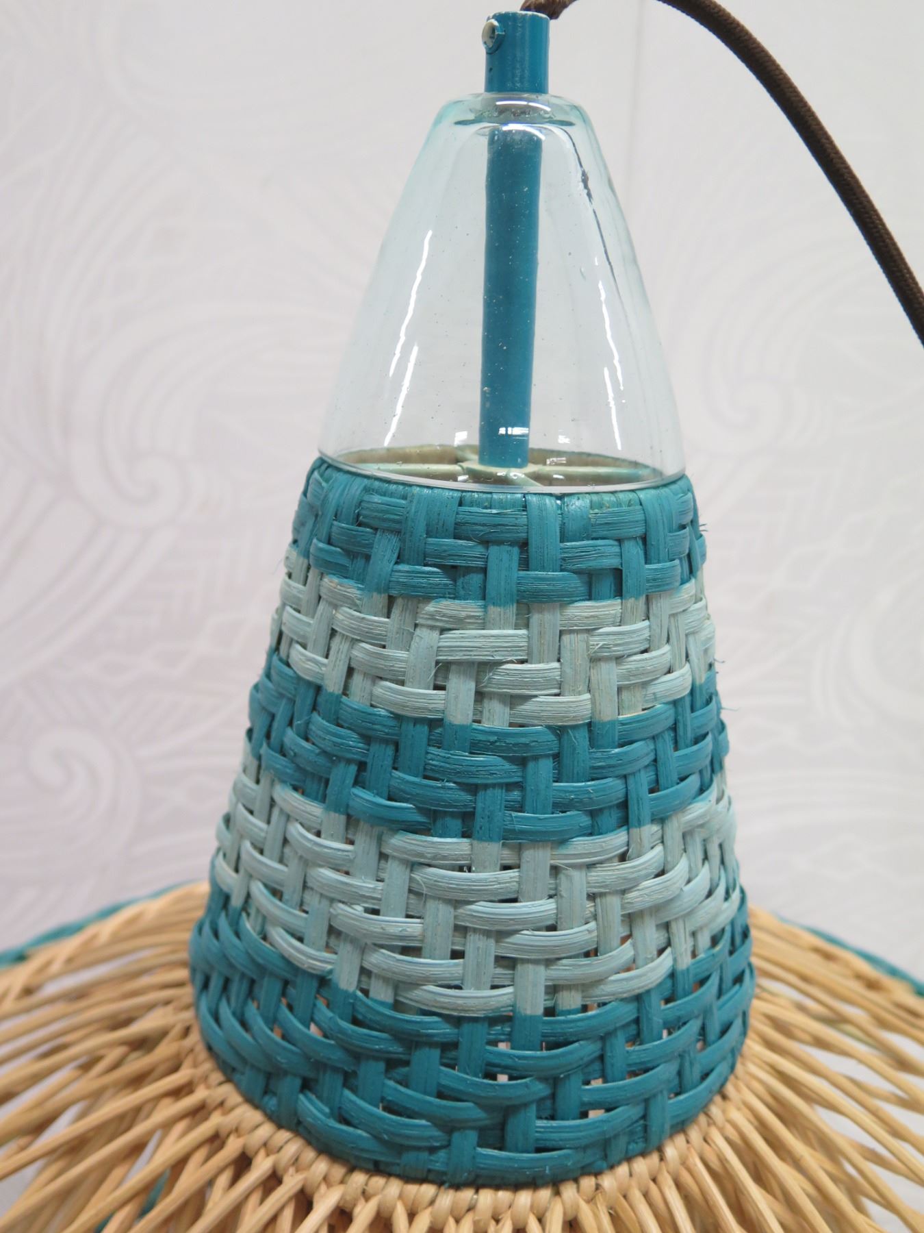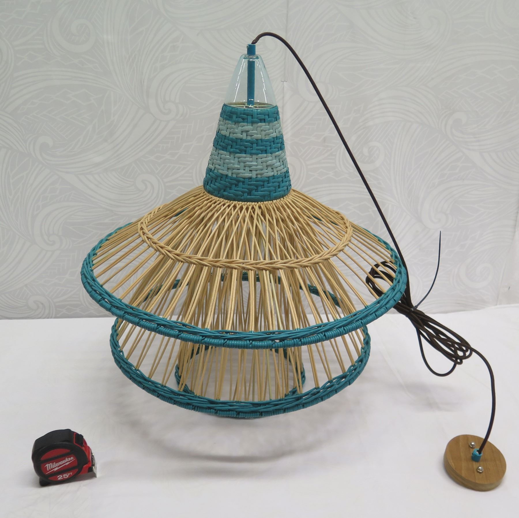 Baja Woven Hanging Lamp Blue 23" dia, 26"H (Retail $740)