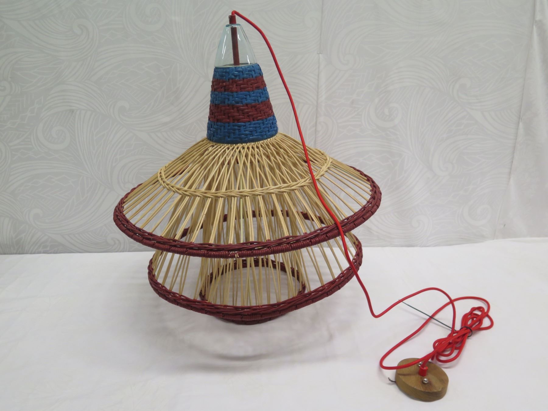 Baja Woven Hanging Lamp Red 23" dia, 26"H (Retail $740)