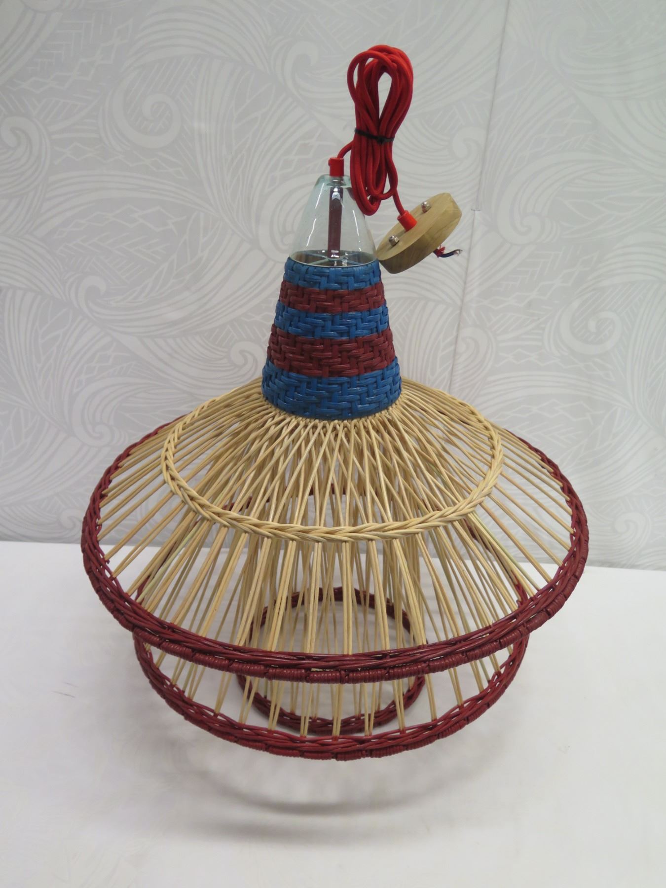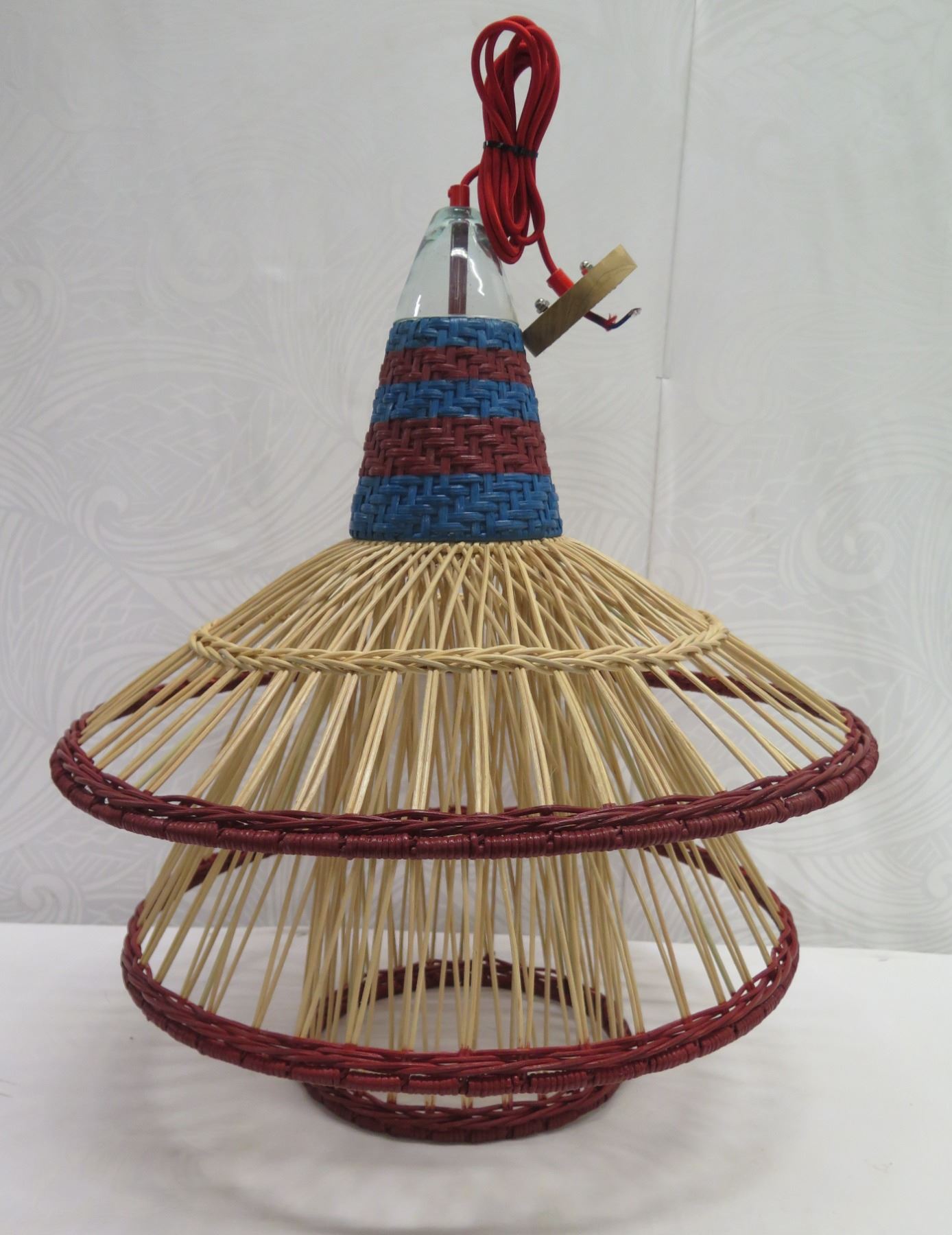 Baja Woven Hanging Lamp Red 23" dia, 26"H (Retail $740)