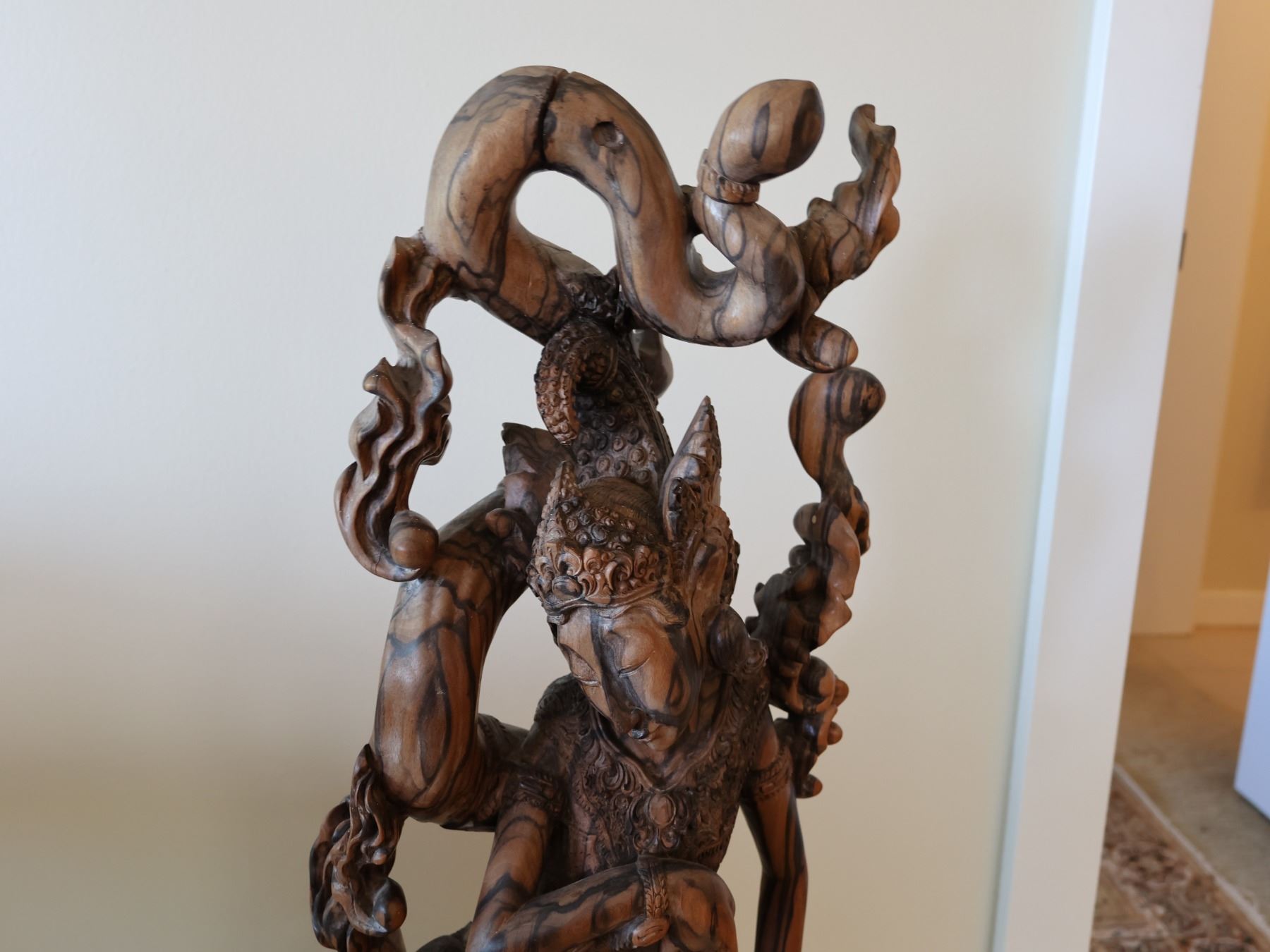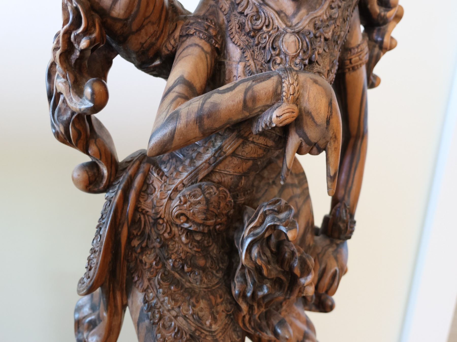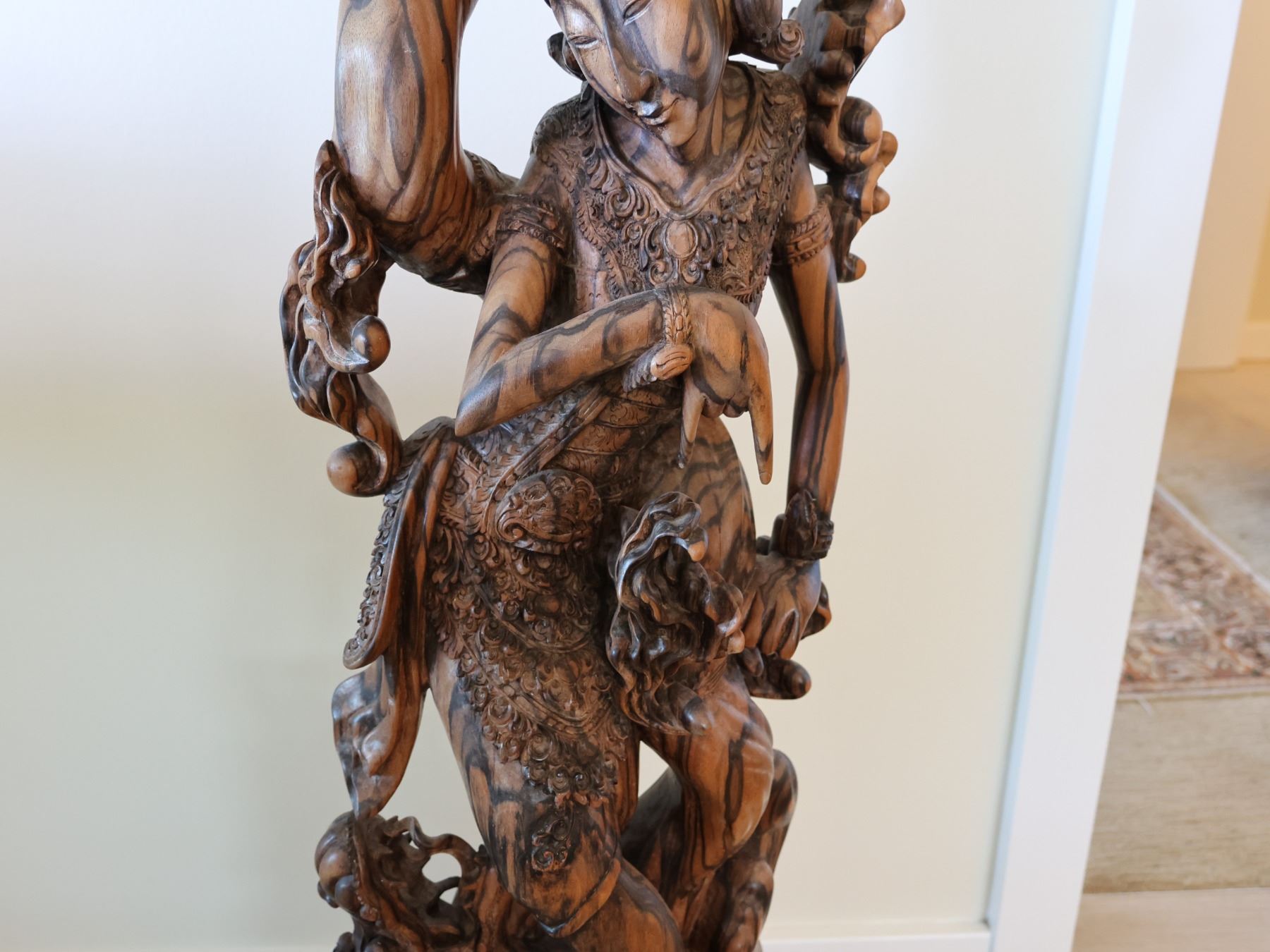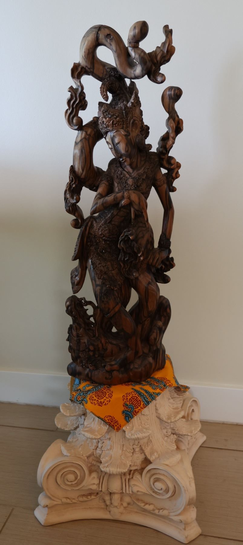 Balinese Hardwood Sculpture of a Dancer on Cast Column Base 43"H