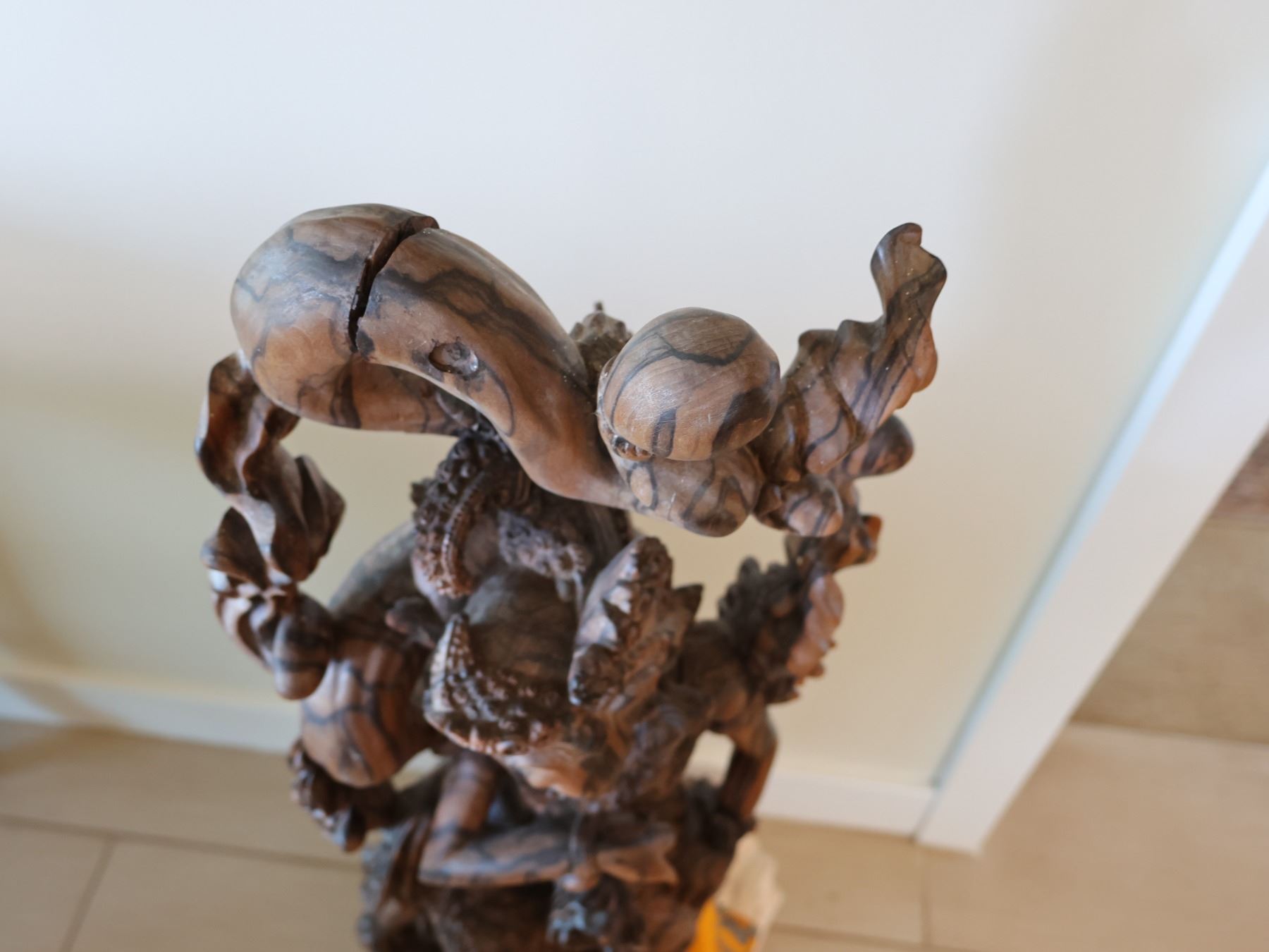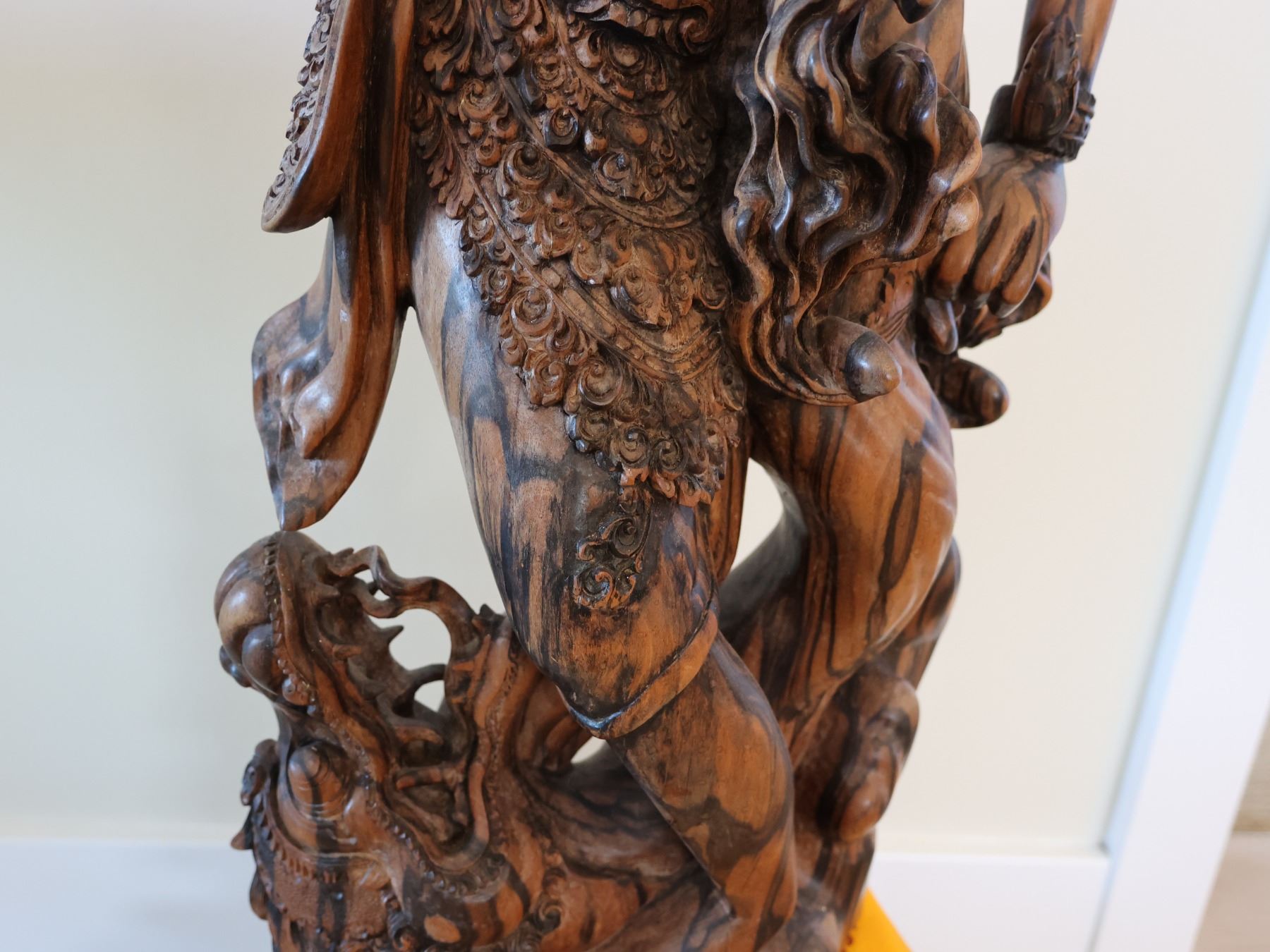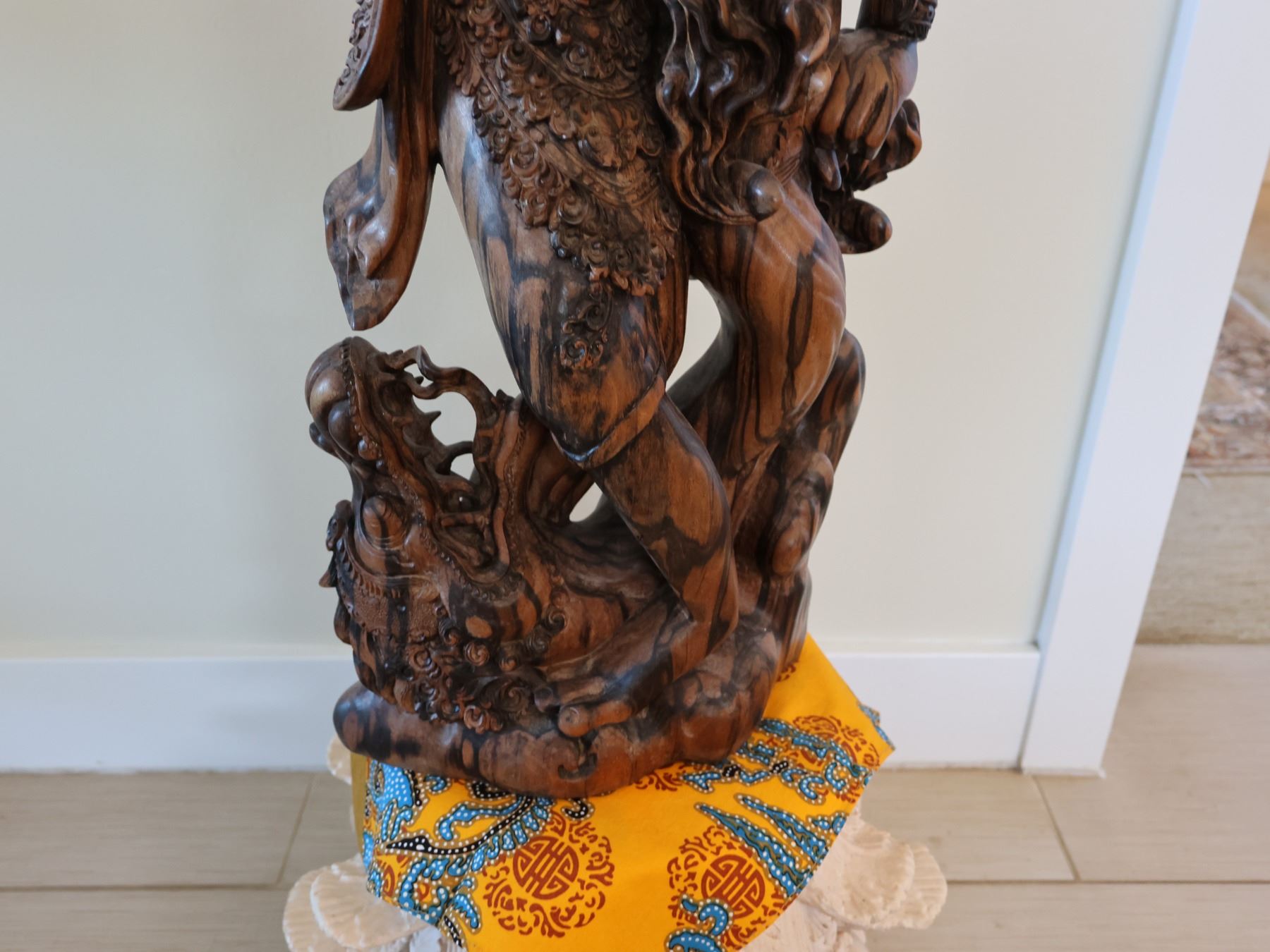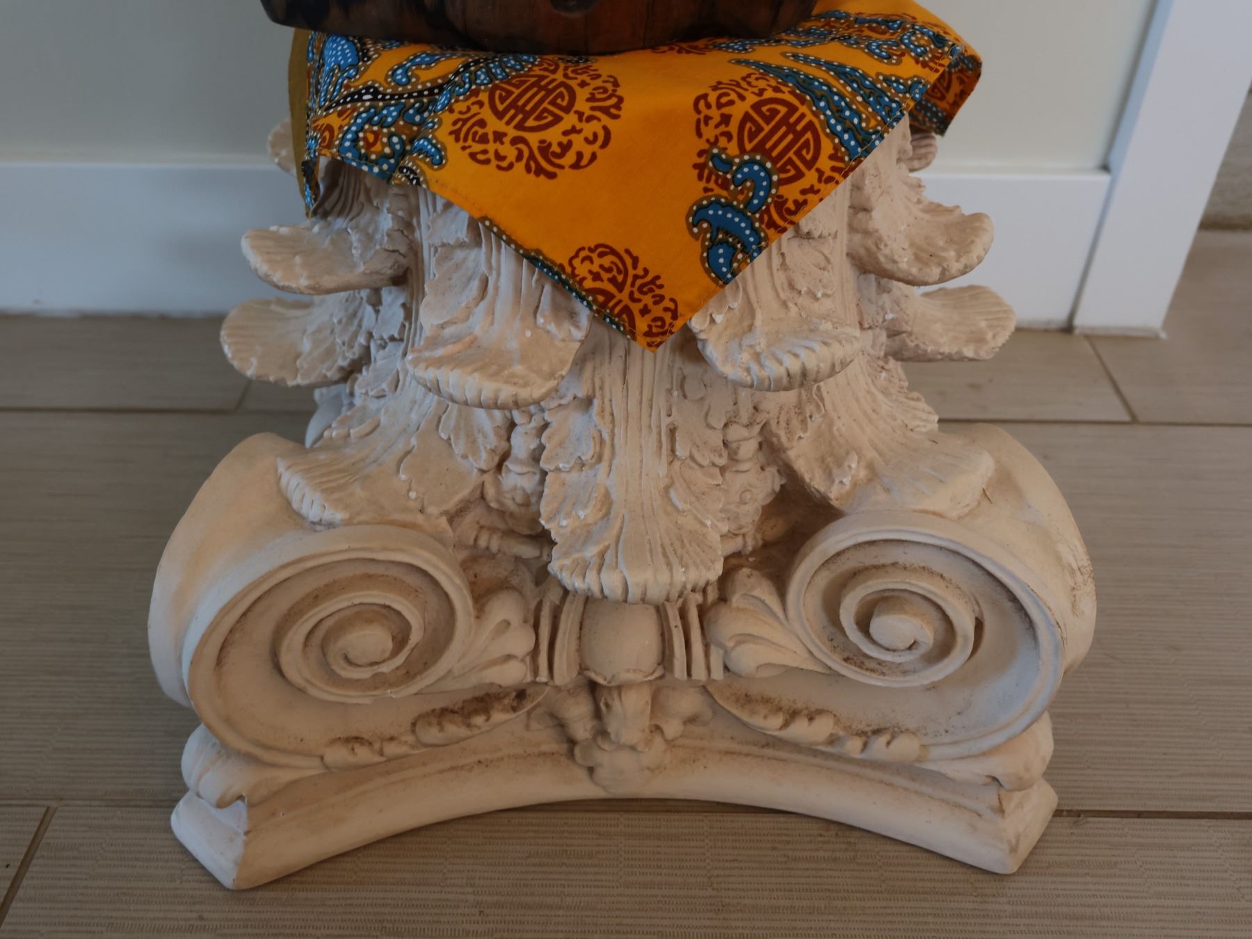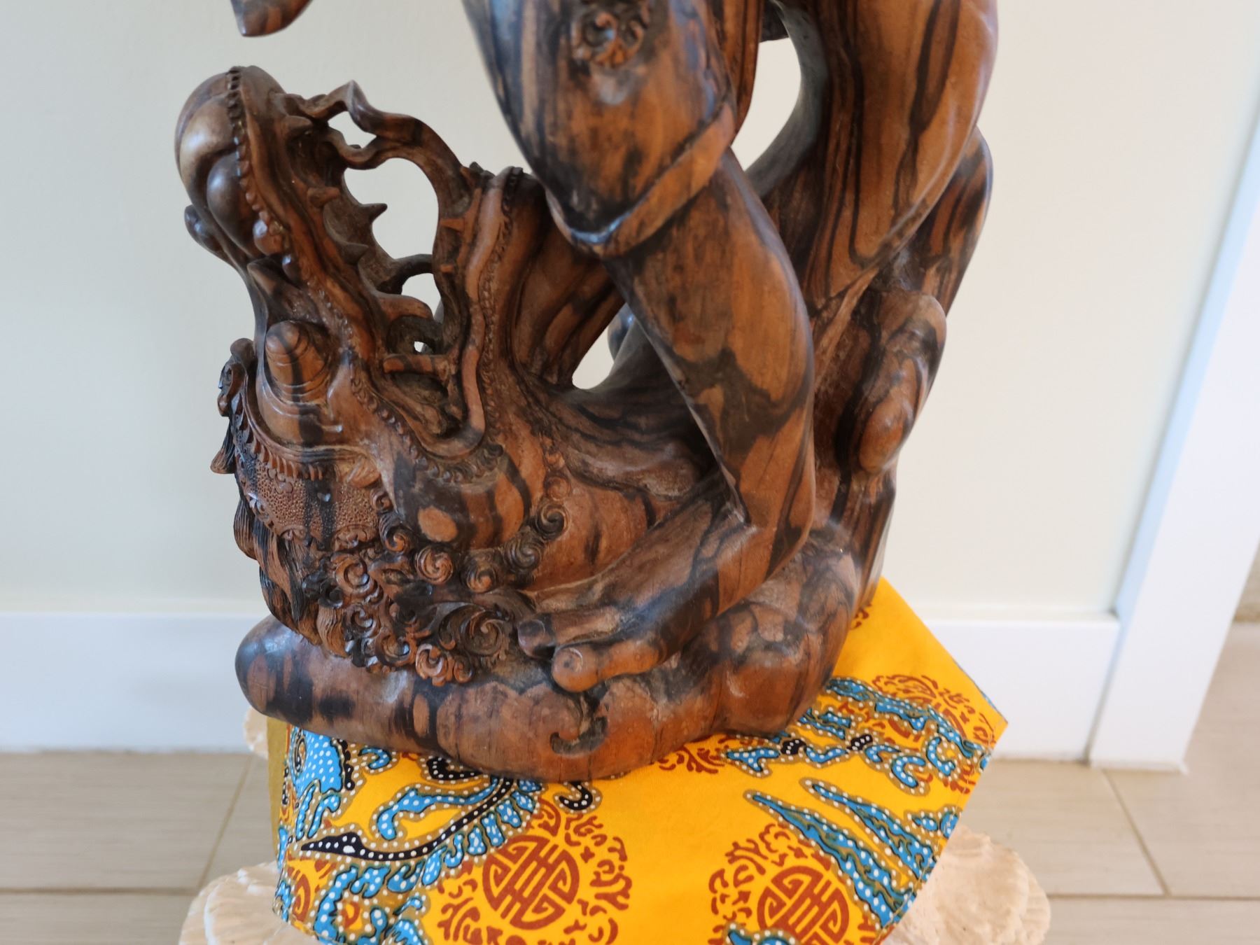 Balinese Hardwood Sculpture of a Dancer on Cast Column Base 43"H
