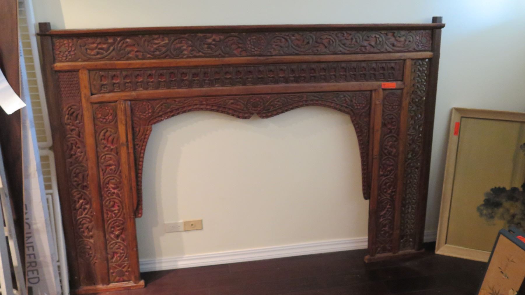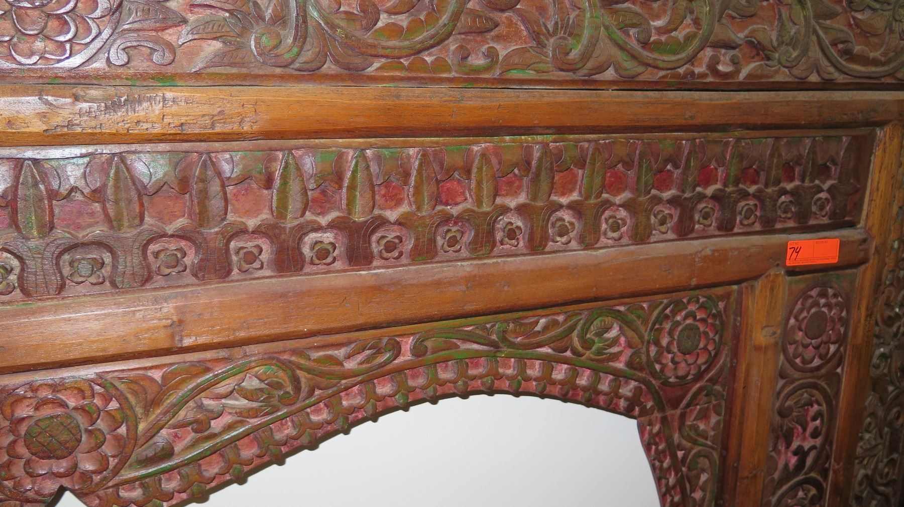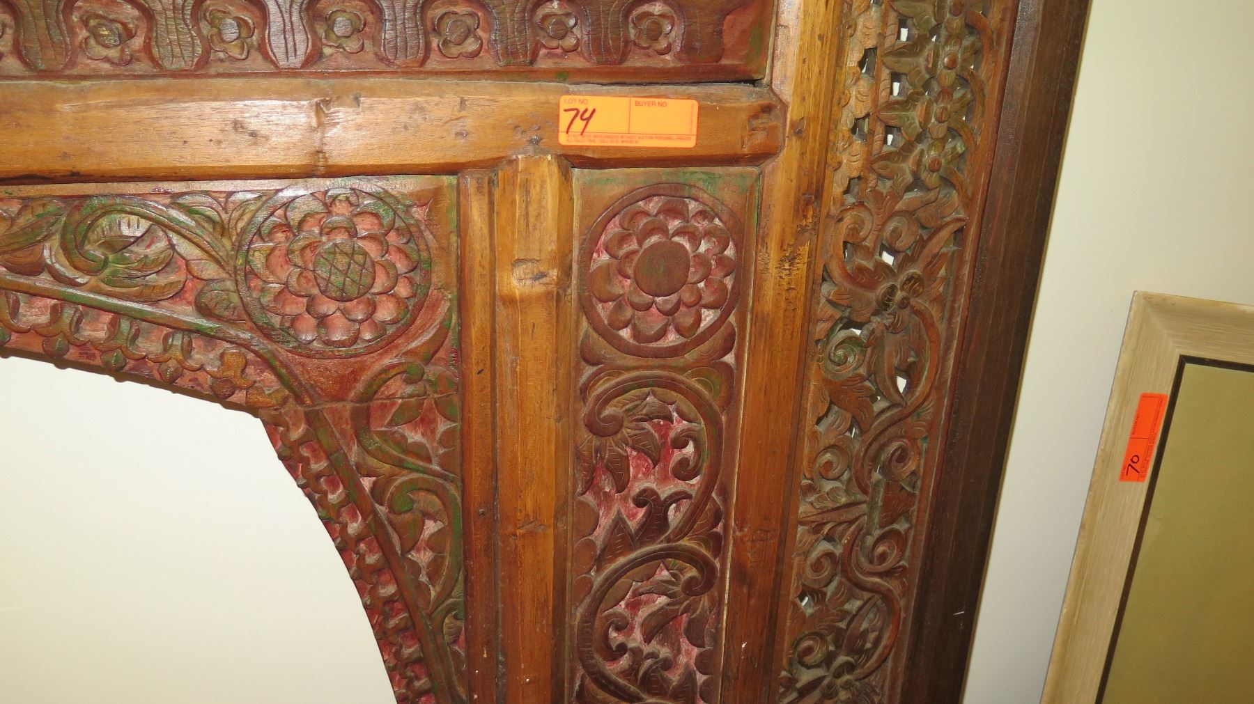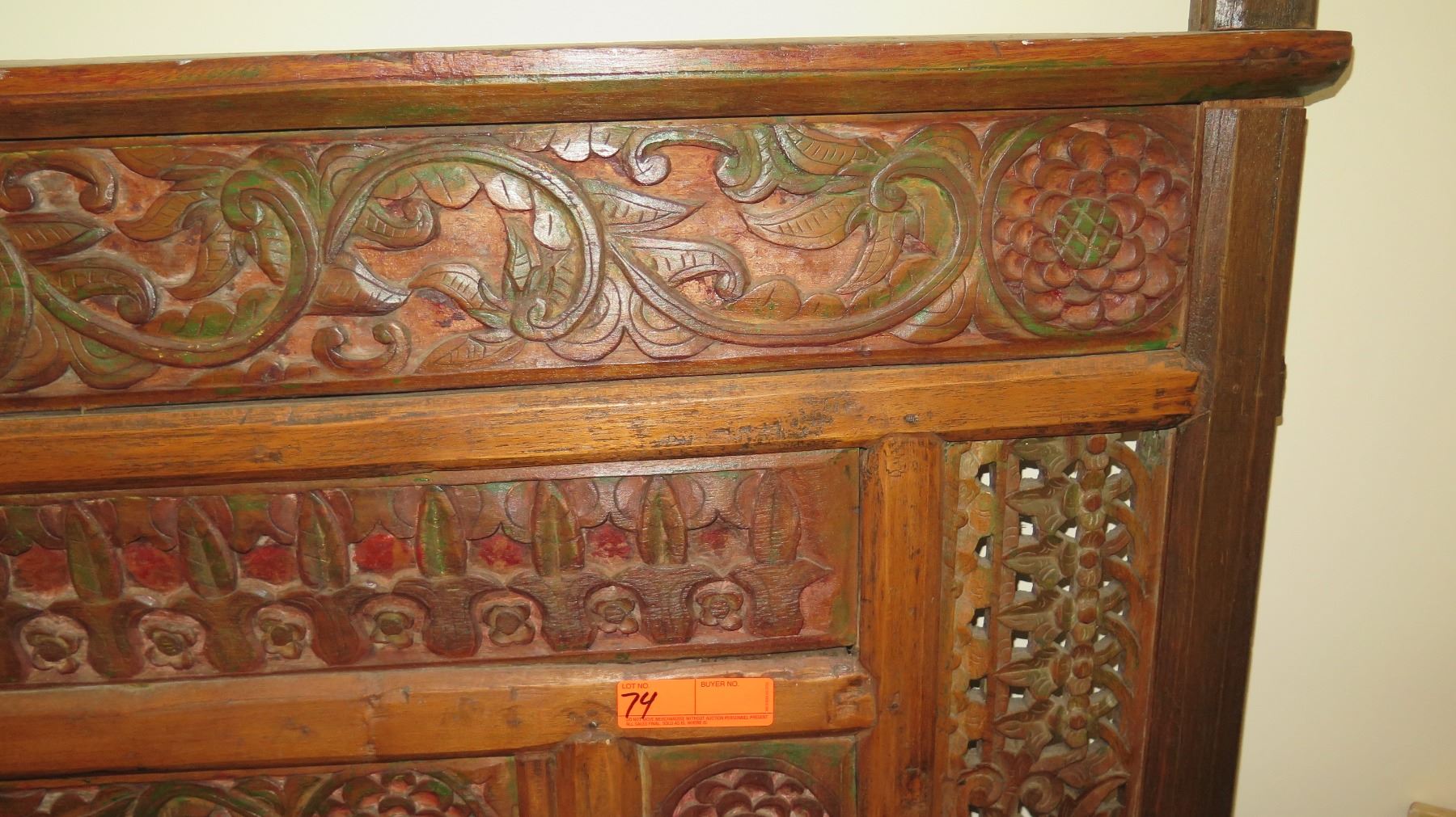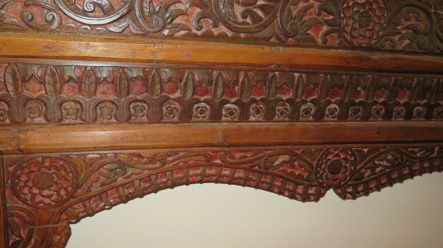 Balinese Painted Carved Wooden Headboard w/ Vine & Floral Motifs 7'4" W x 59" H