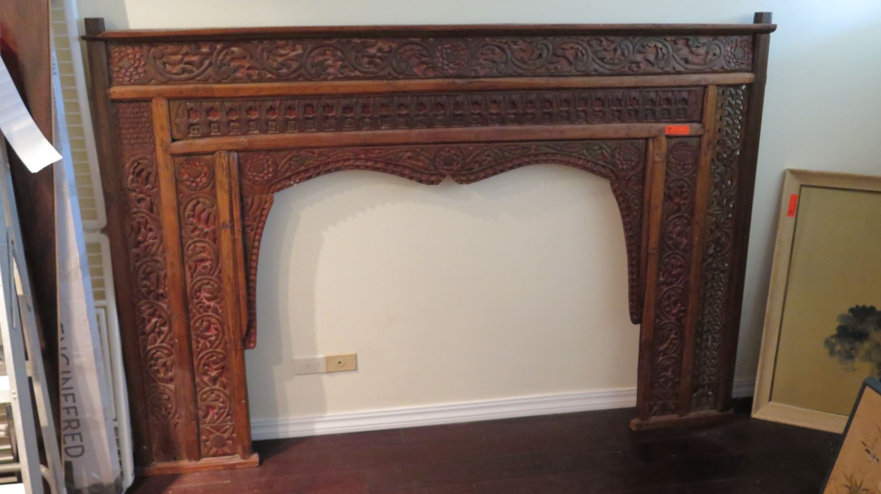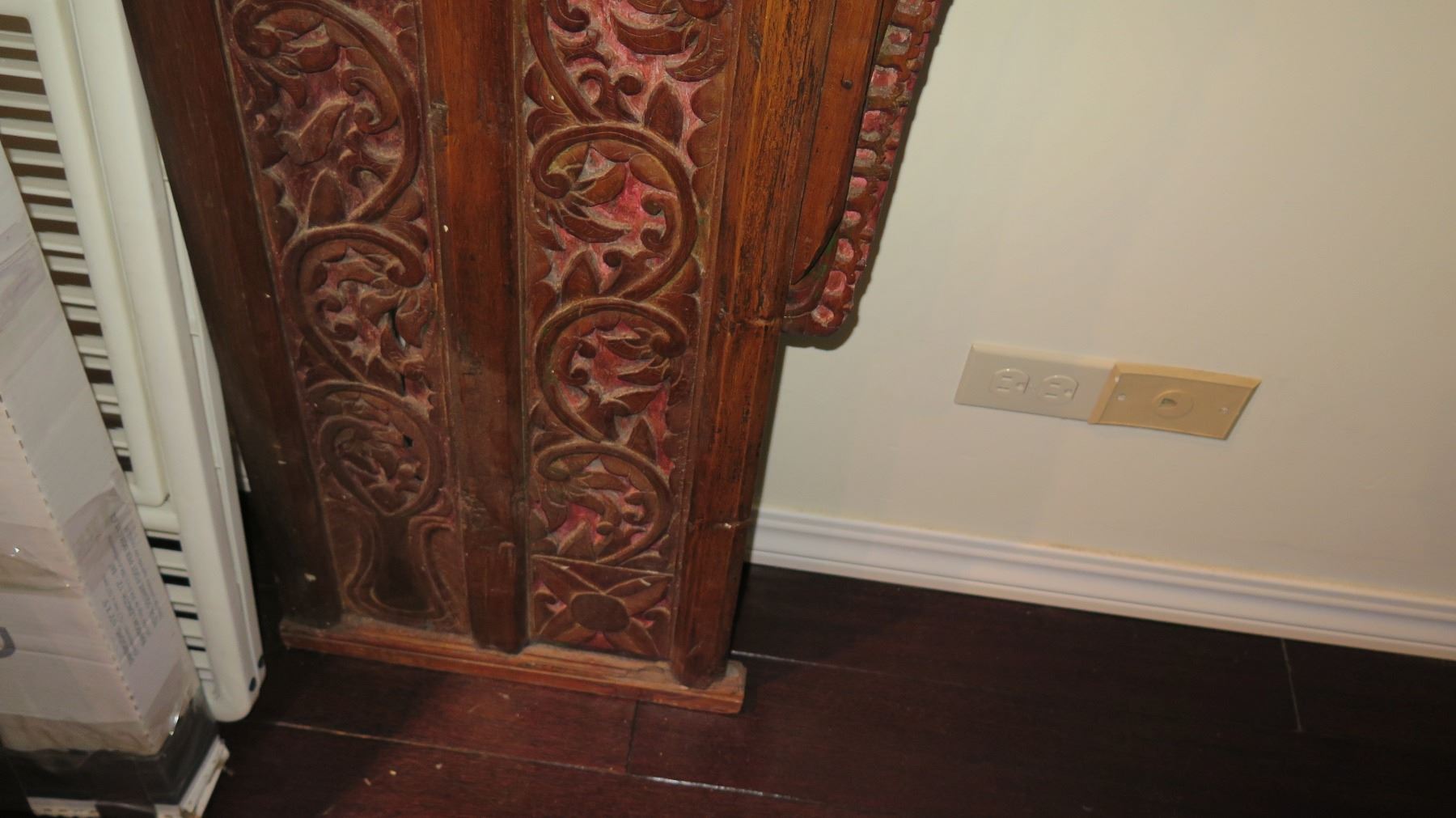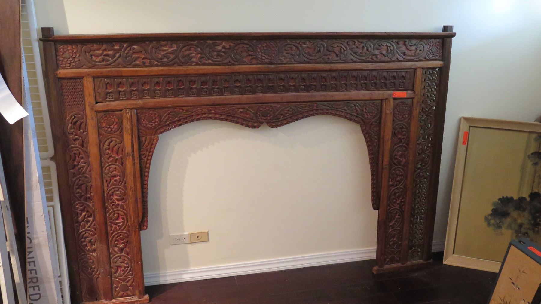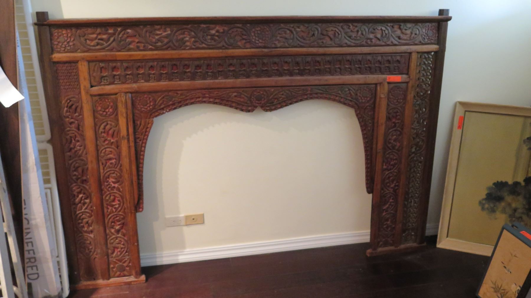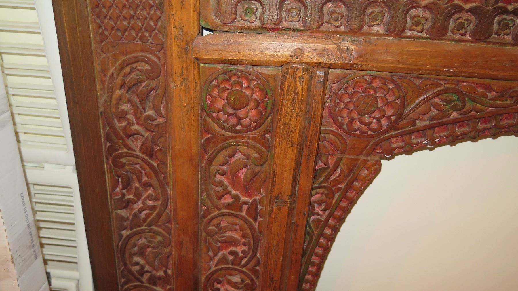 Balinese Painted Carved Wooden Headboard w/ Vine & Floral Motifs 7'4" W x 59" H