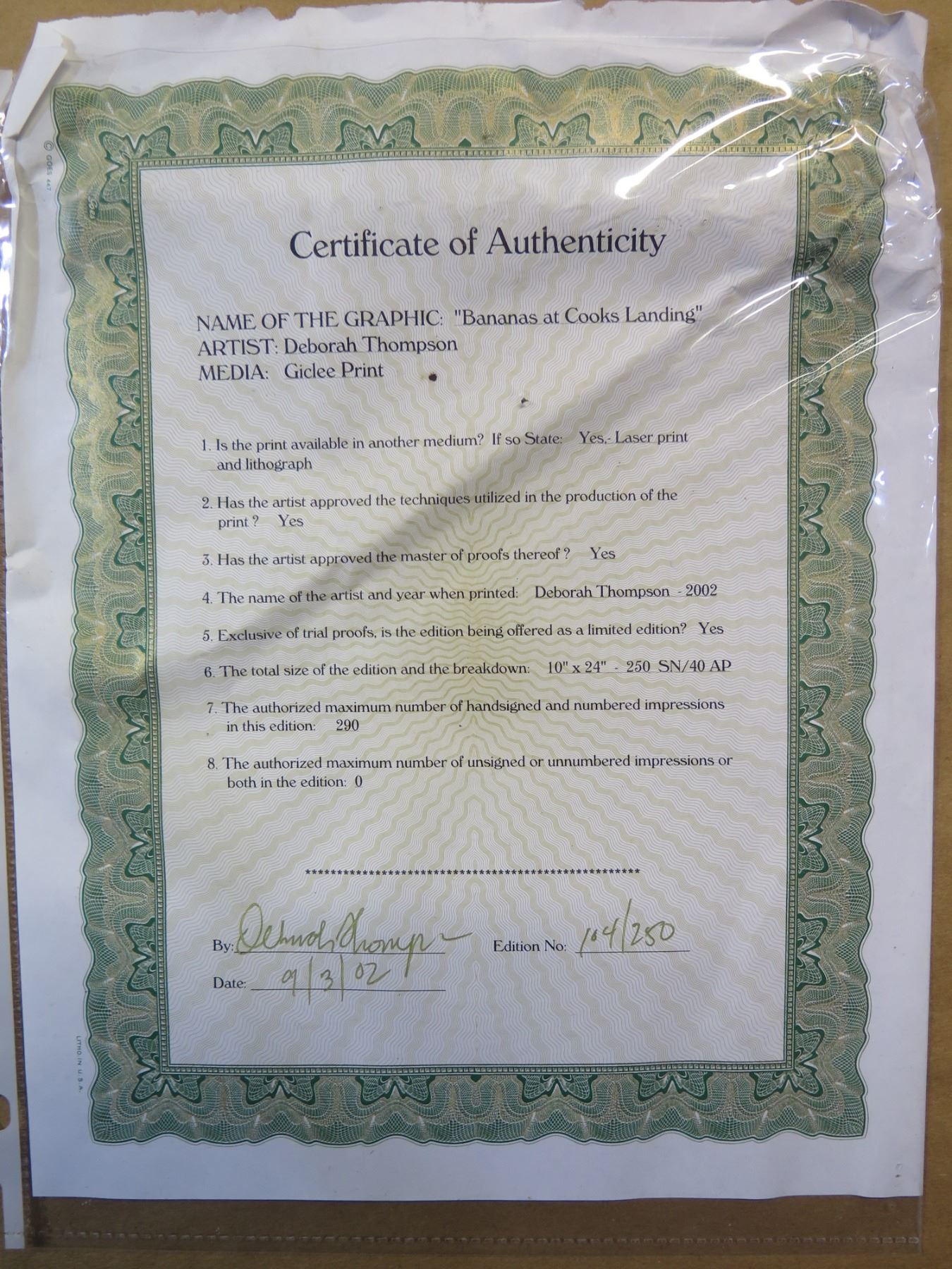 Bananas at Cooks Landing Giclee Artwork by Deborah Thompson '98 w/ COA, Framed & Matted 17" x 32"