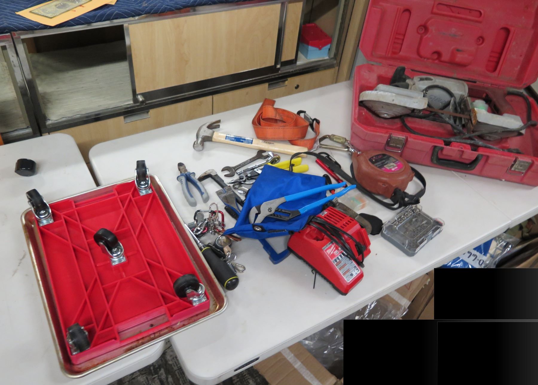 Band Saw in Hard Case w/ Milwaukee Chargers, Misc Tools, etc
