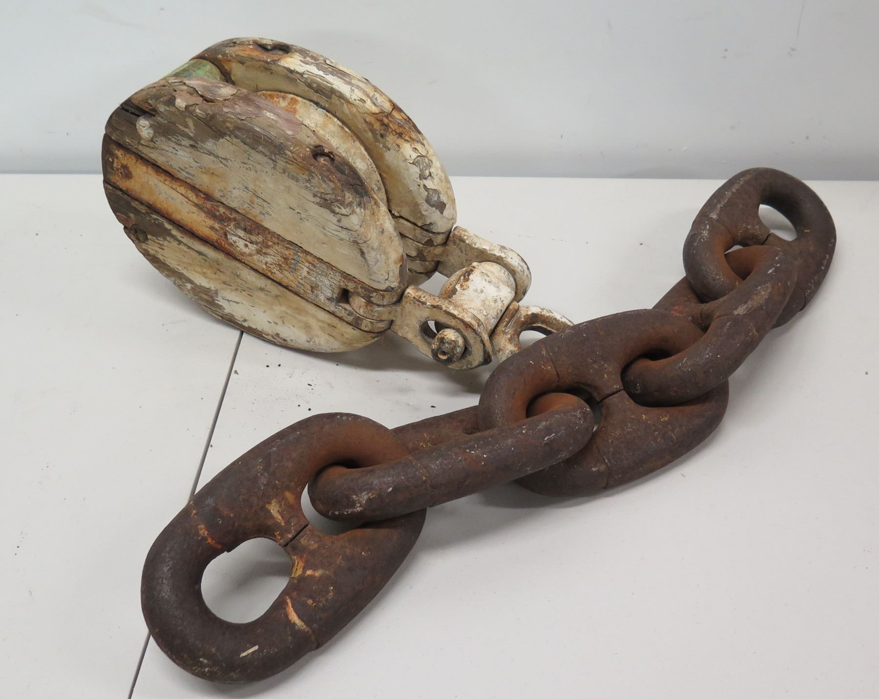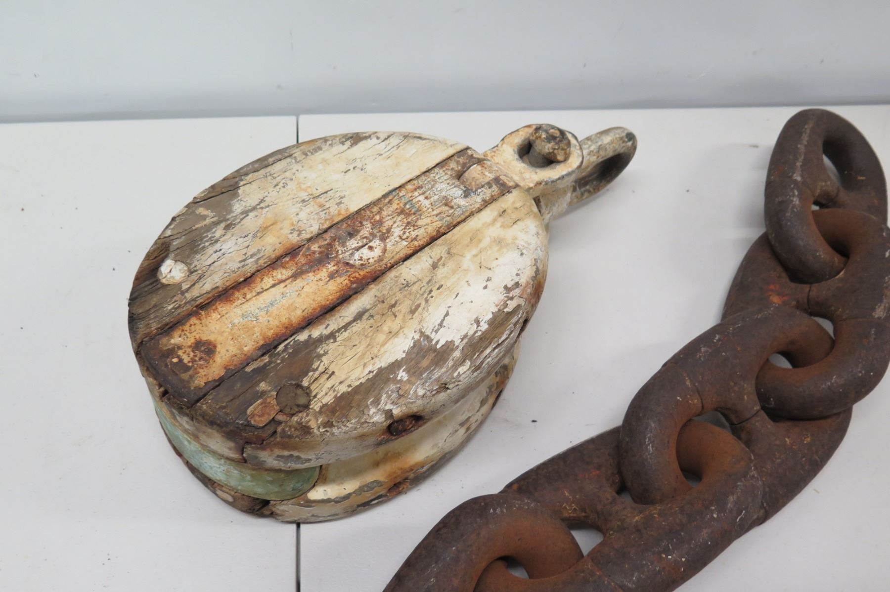 Battleship Anchor Chain & Antique Clipper Ship Pulleys