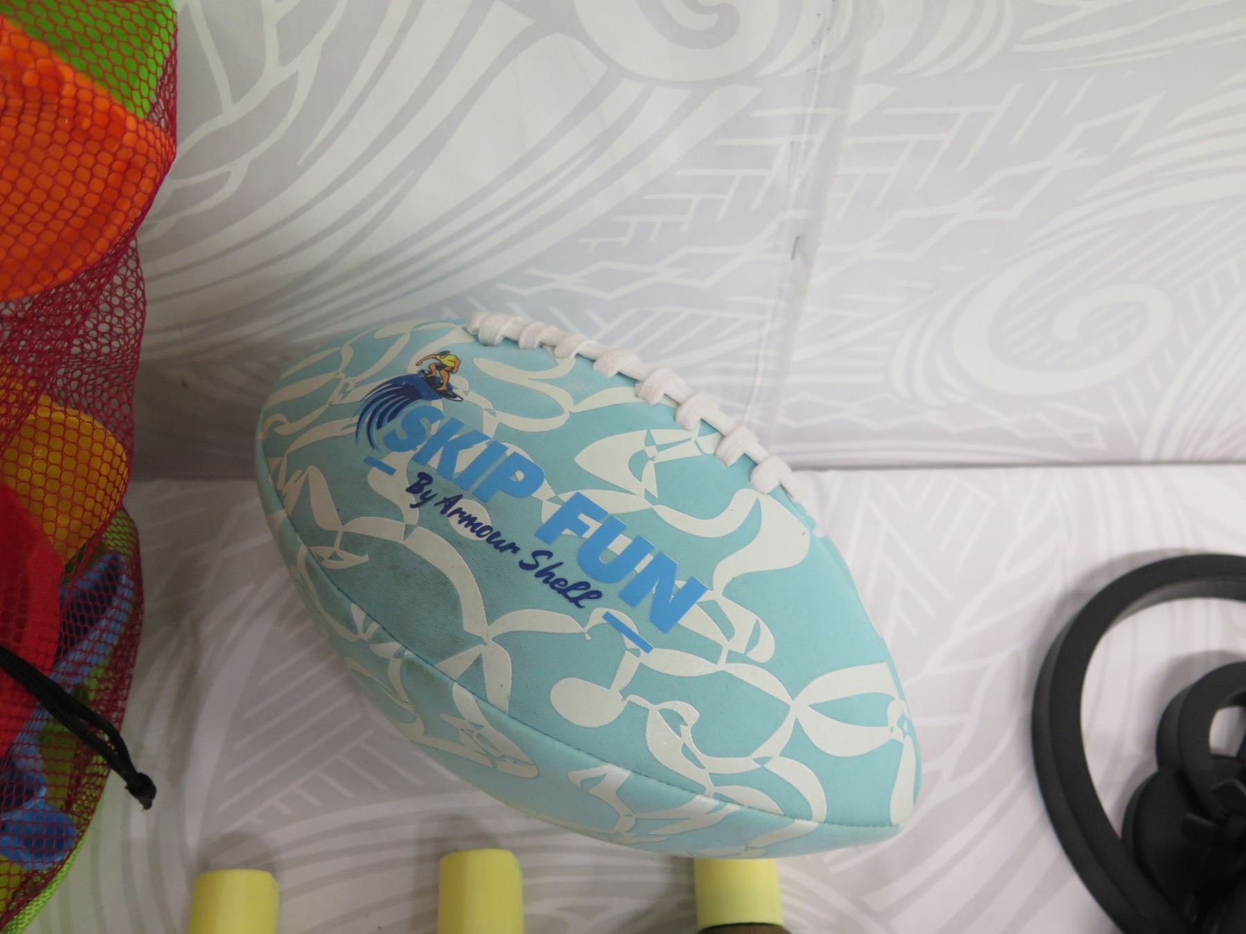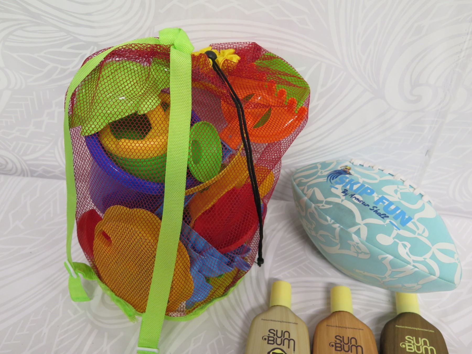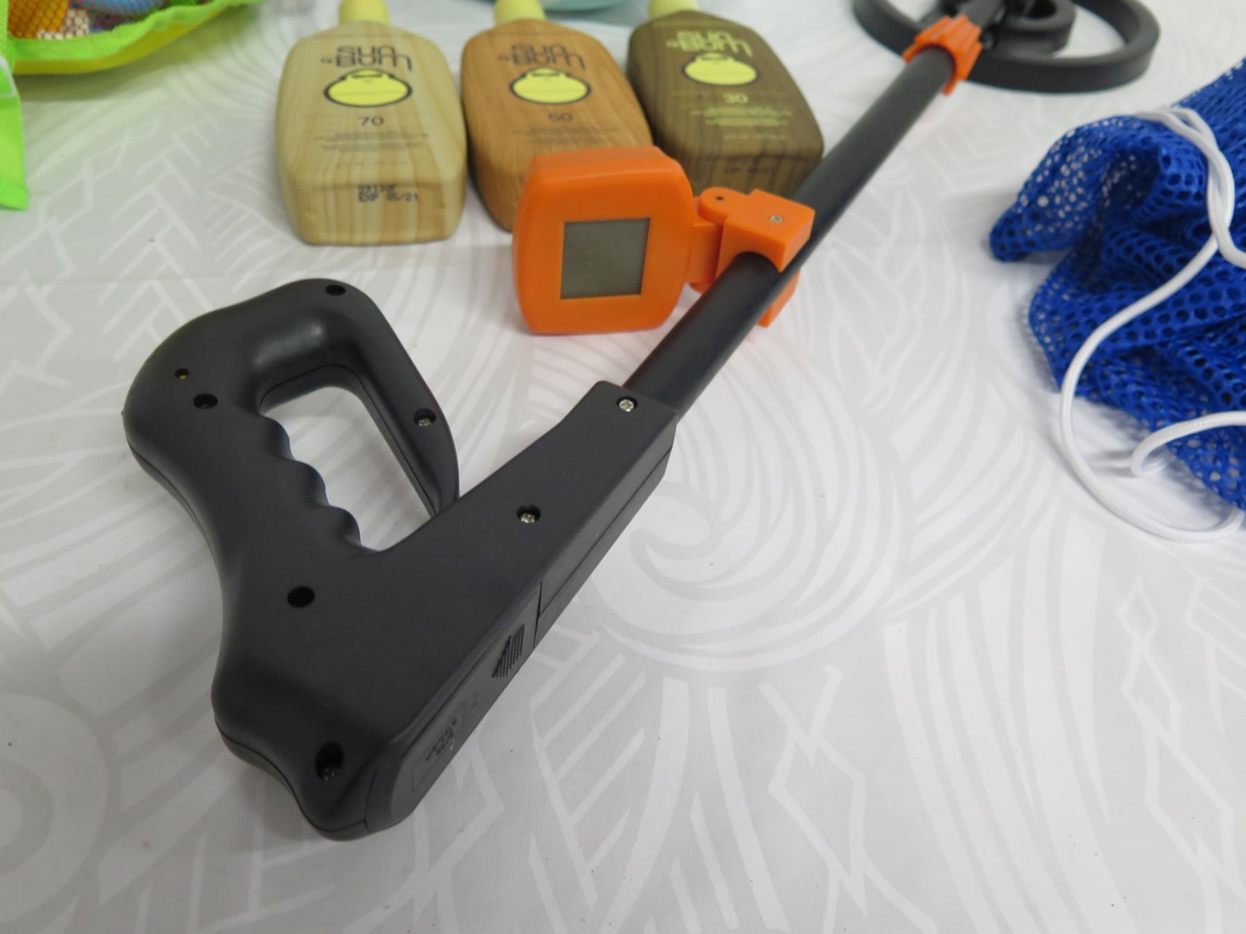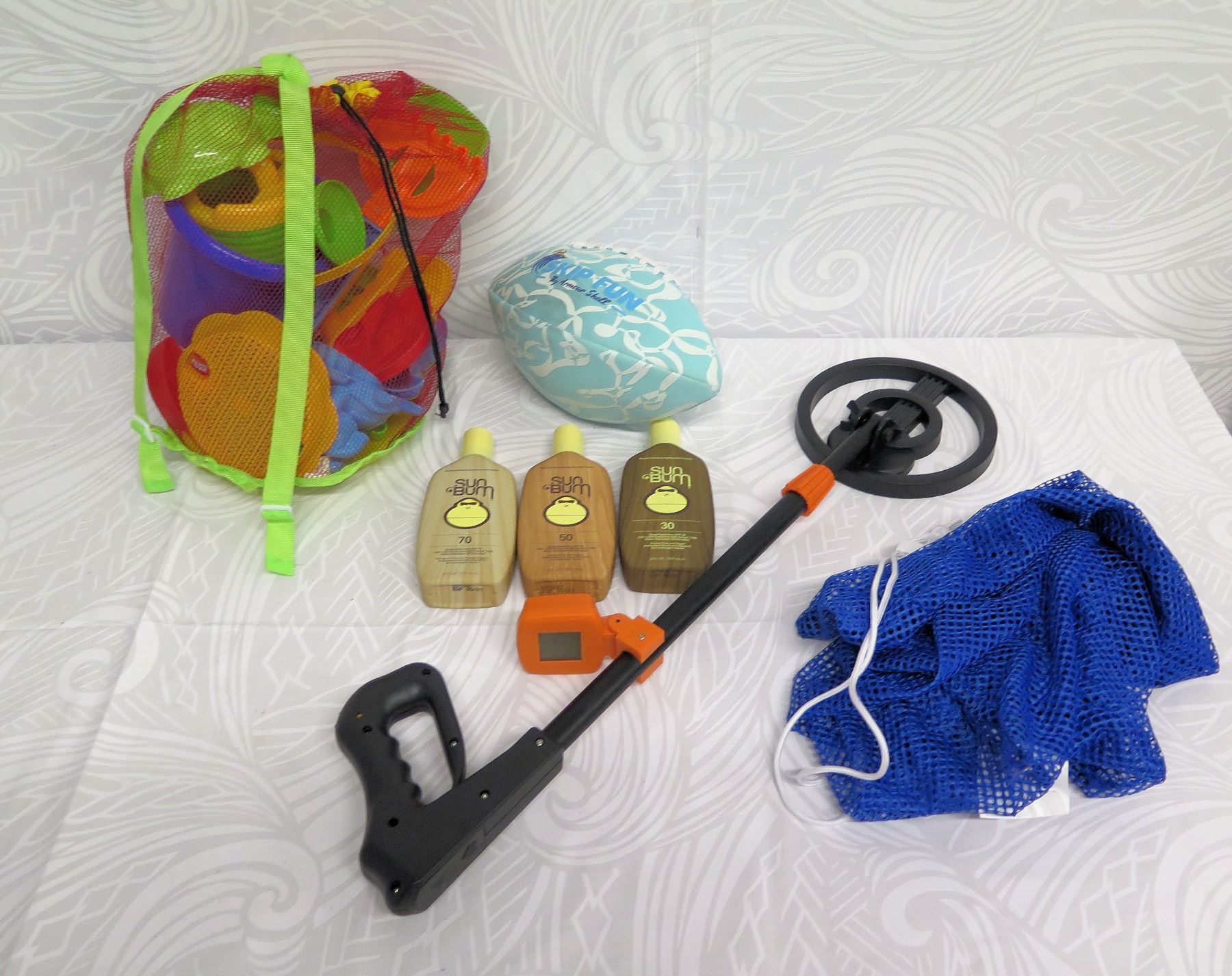 Beach Lot: Portable Metal Detector, Football, Toys: Pail & Shovels, Blue Bag, etc