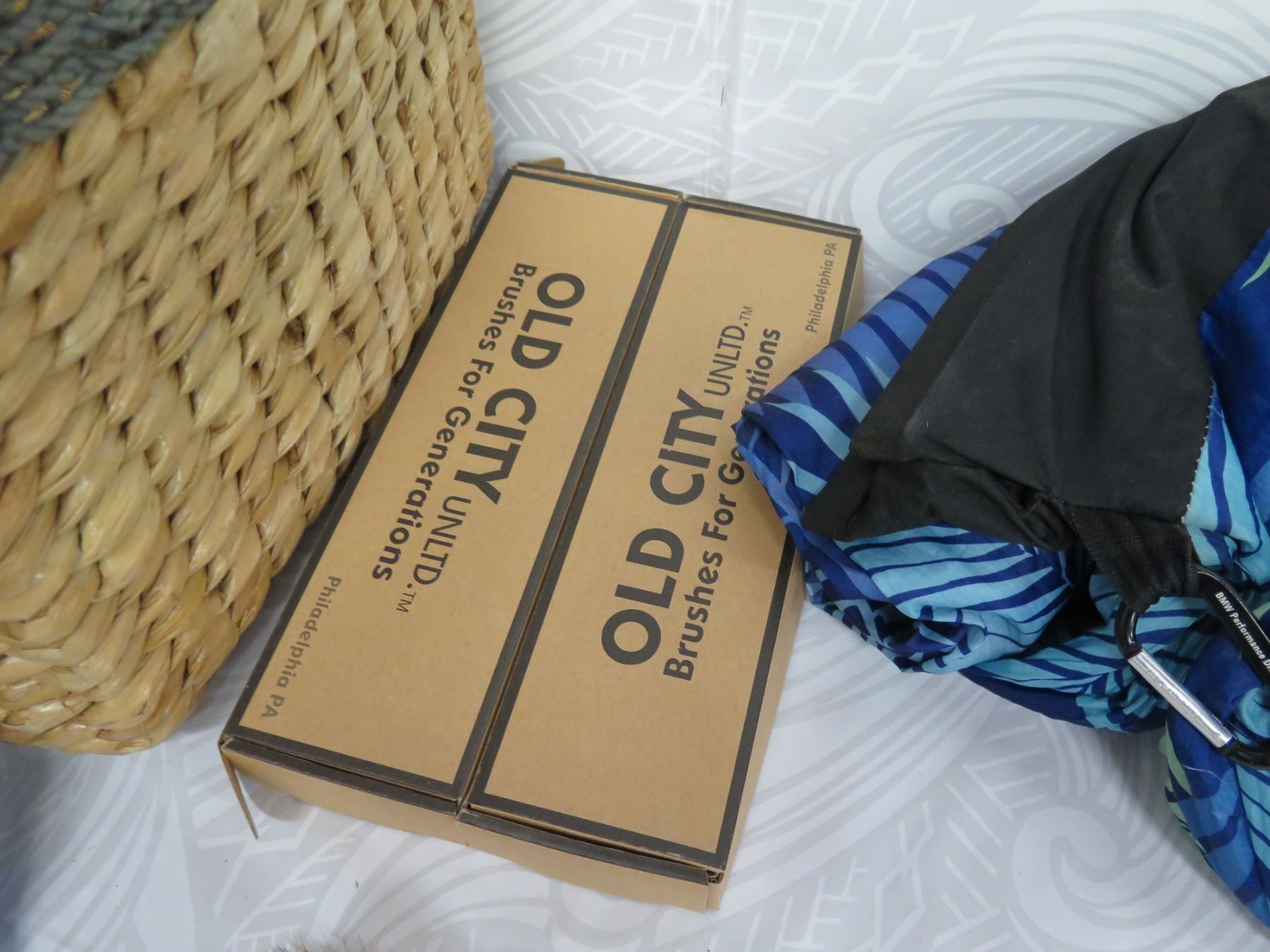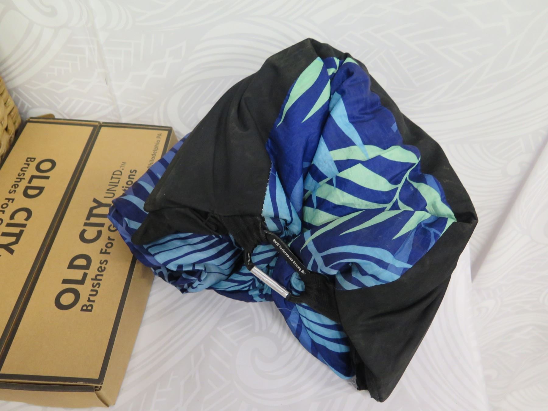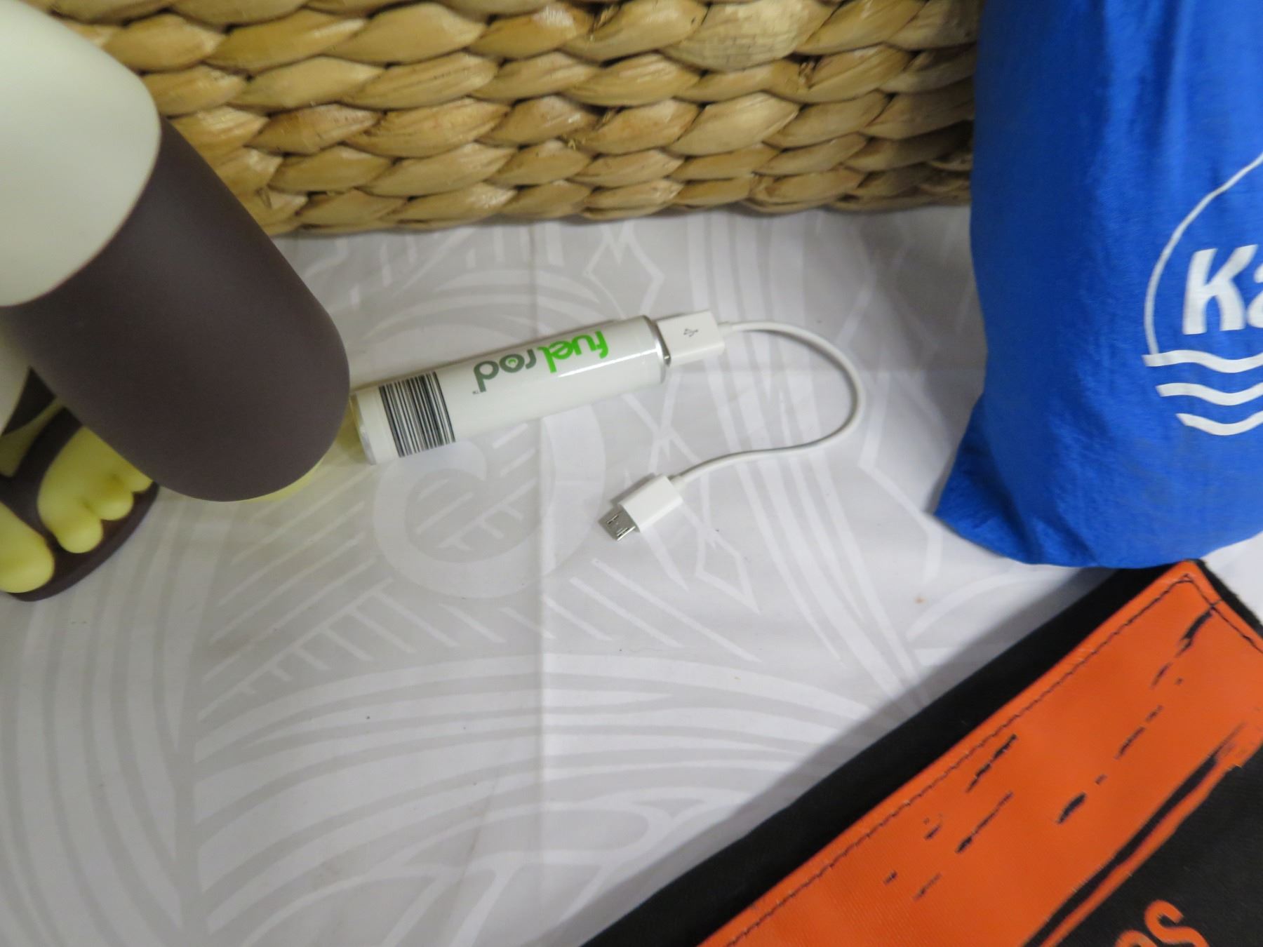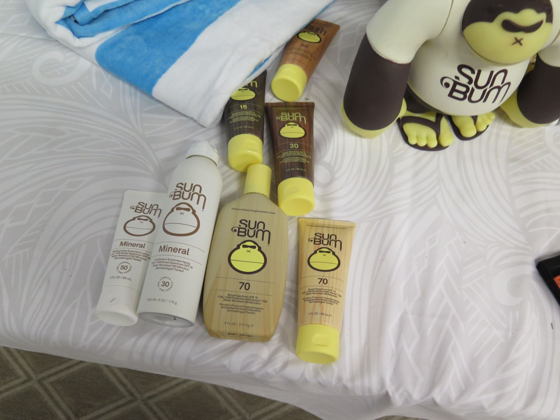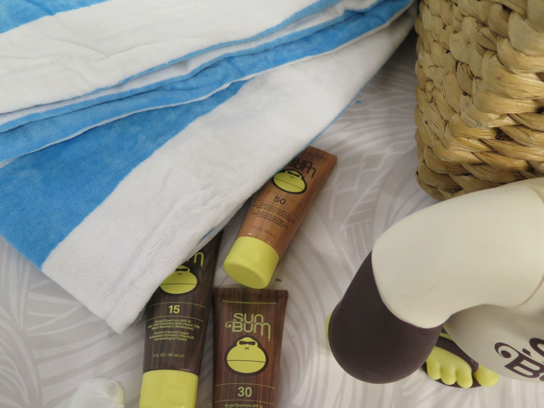 Beach Lot: Wicker Basket, Towels, Lotions, "Sun Bum" Toy, Solar 21 Charger, etc