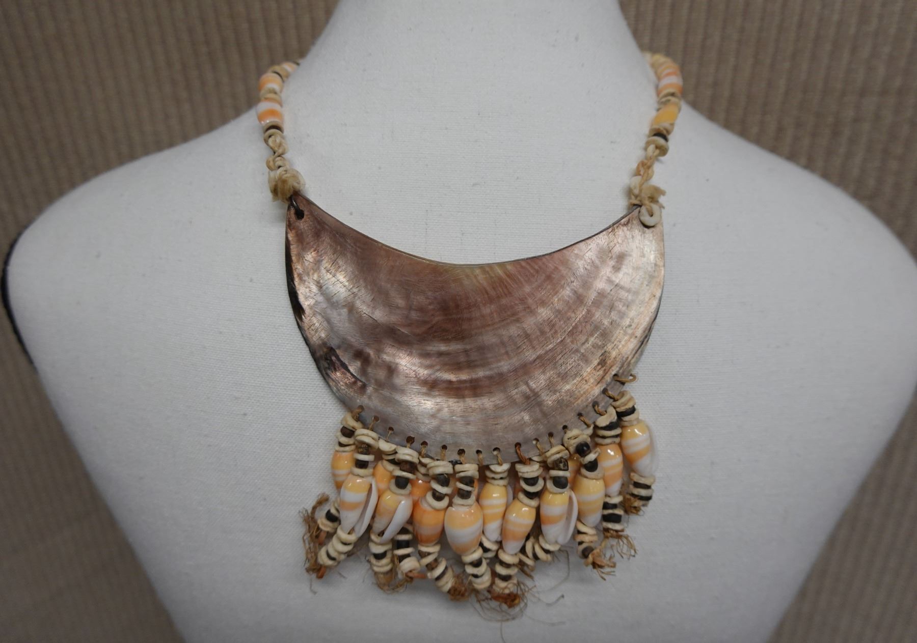 Beaded Necklace w/ Half Moon Pendant & Fringe 22"L x 5"W