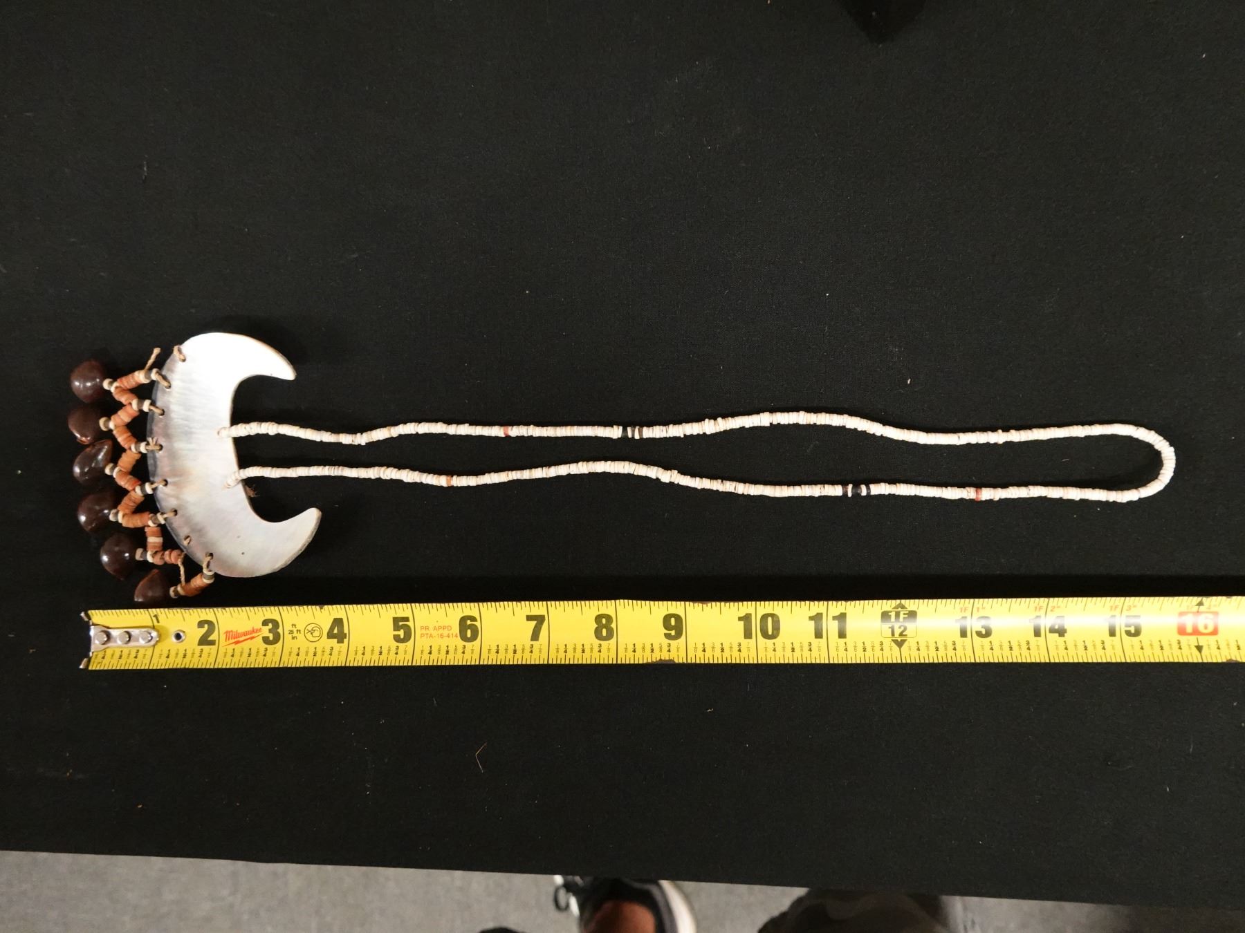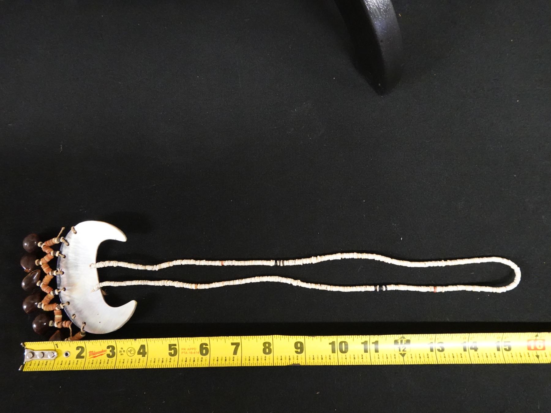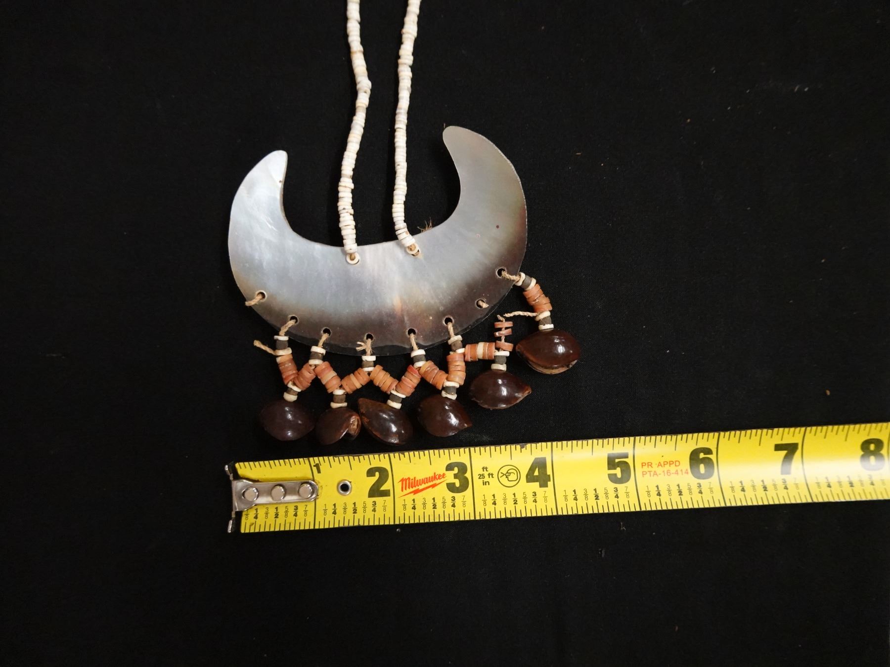 Beaded Necklace w/ Shell Half Moon Pendant & Fringe from the Soloman Islands 32"L x 4"W