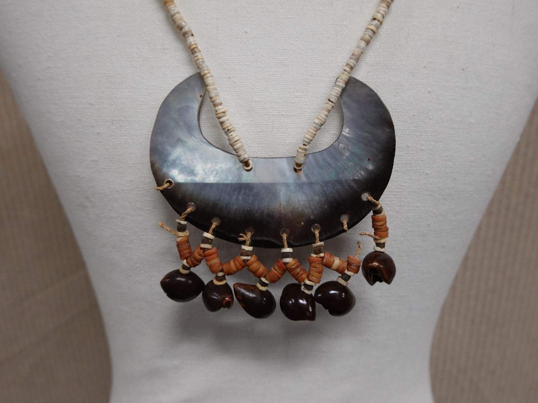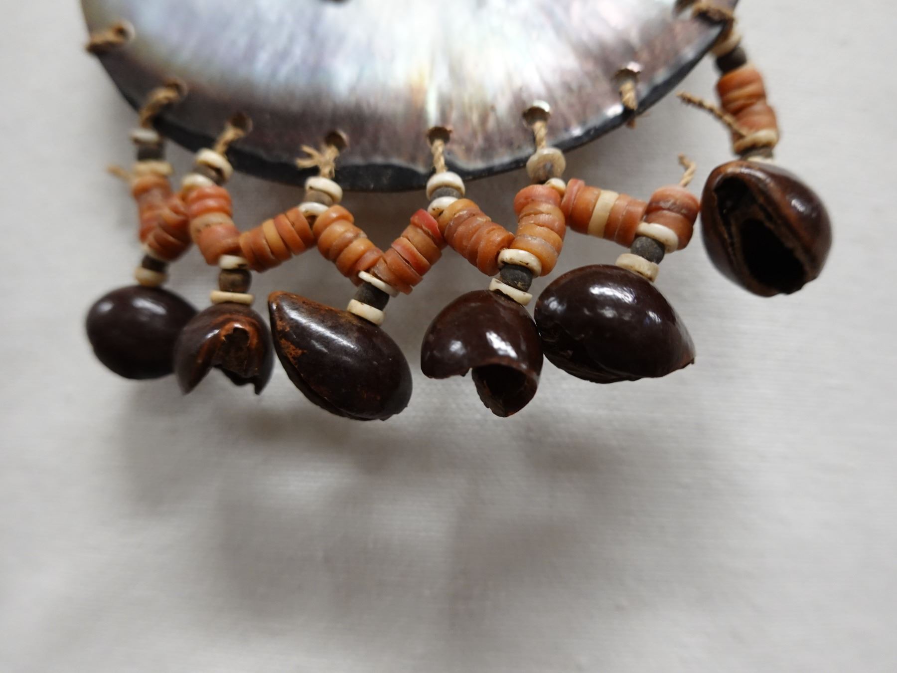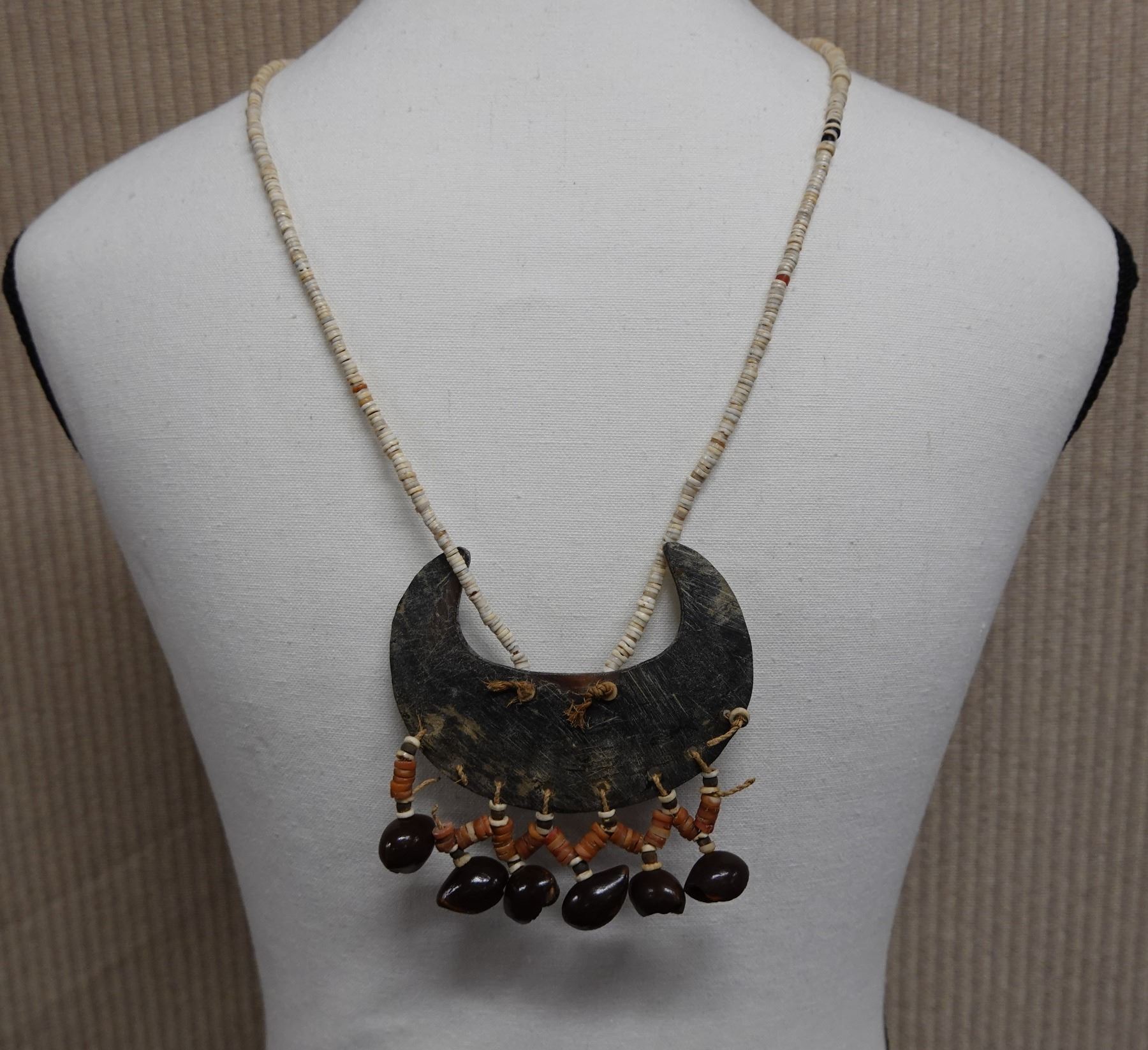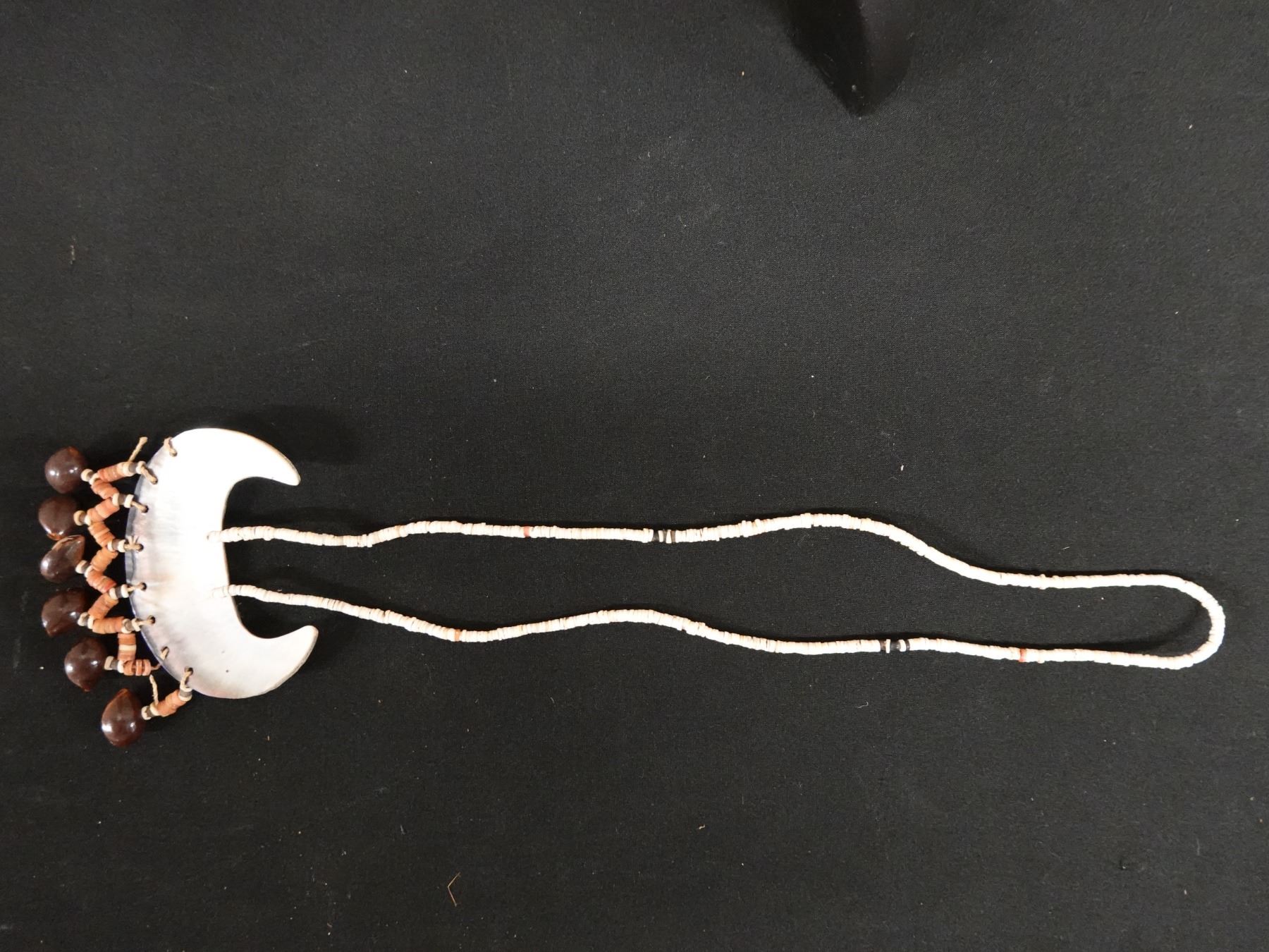Beaded Necklace w/ Shell Half Moon Pendant & Fringe from the Soloman Islands 32"L x 4"W
