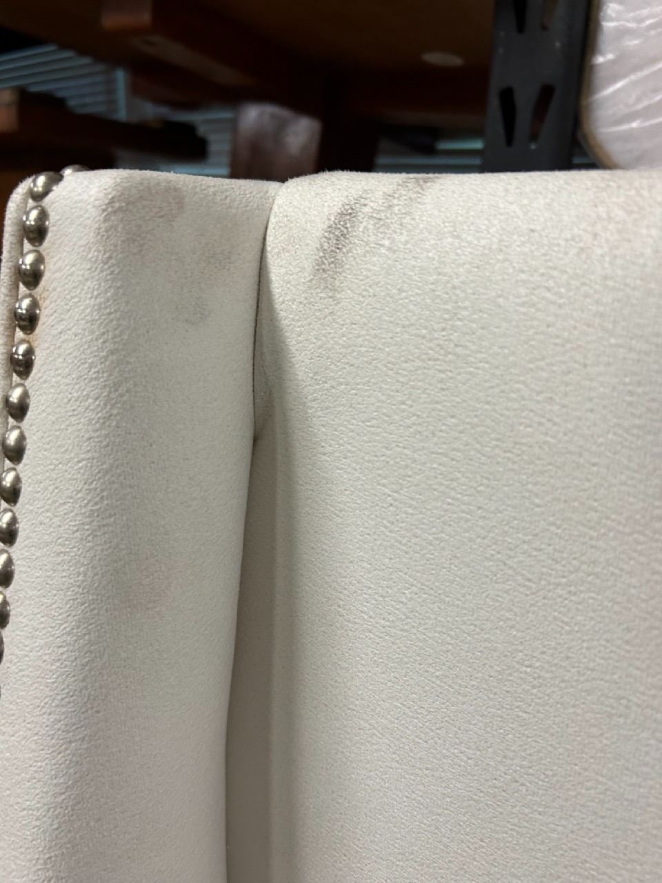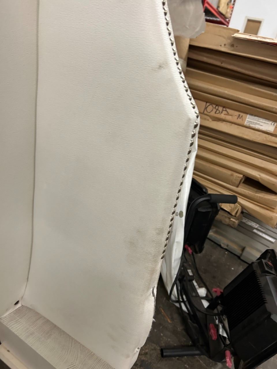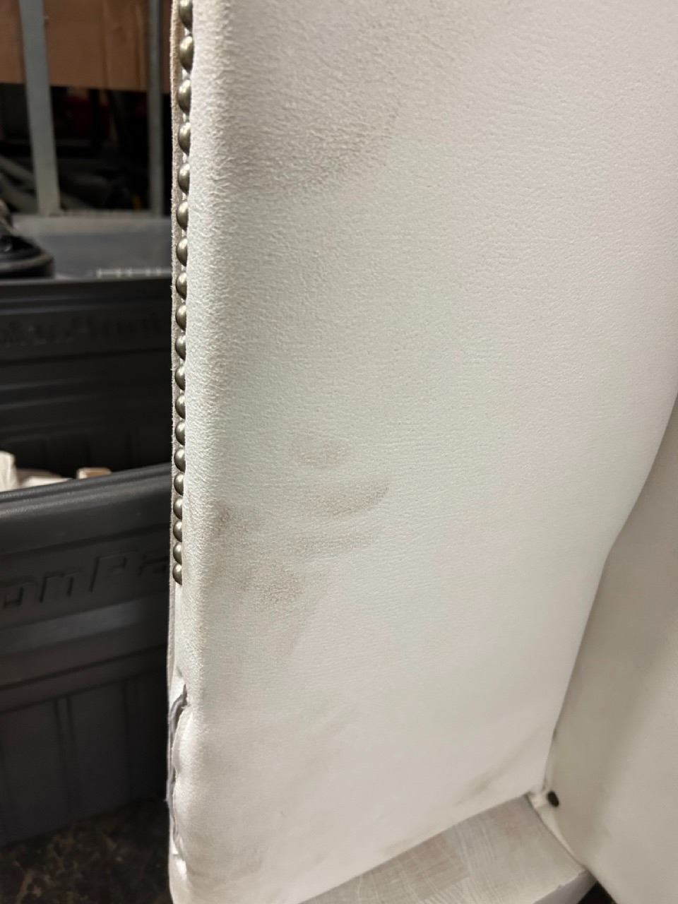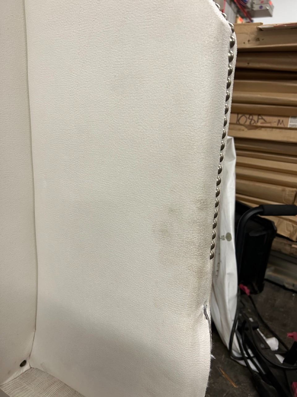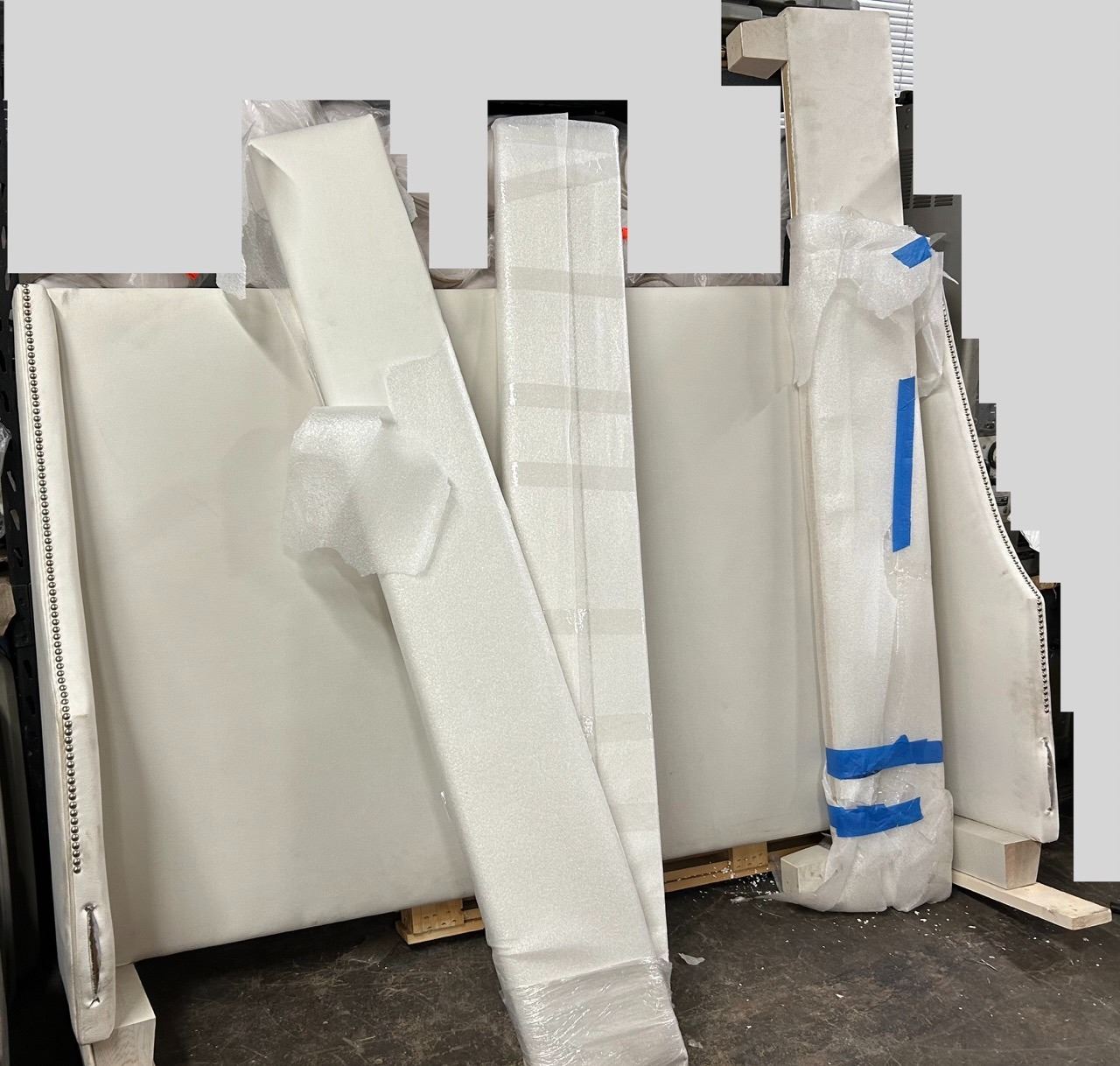 Full Size Bed Frame w/ Upholstered Headboard, Footboard & Sides. (Box Spring & Mattress Not Included). Shows some surface dirt from handling--see pictures. Can be removed with regular household cleaning solution.