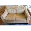 Beige Loveseat w/ Cushions 64  x 33  x 34  Back Ht.