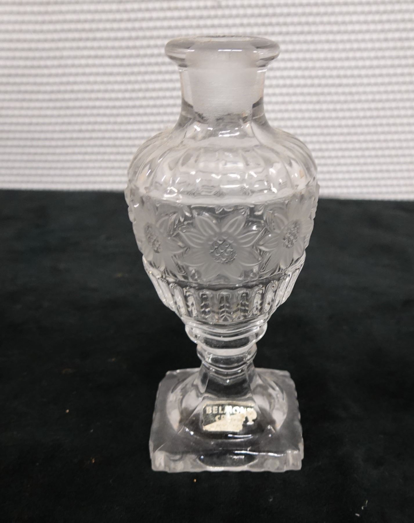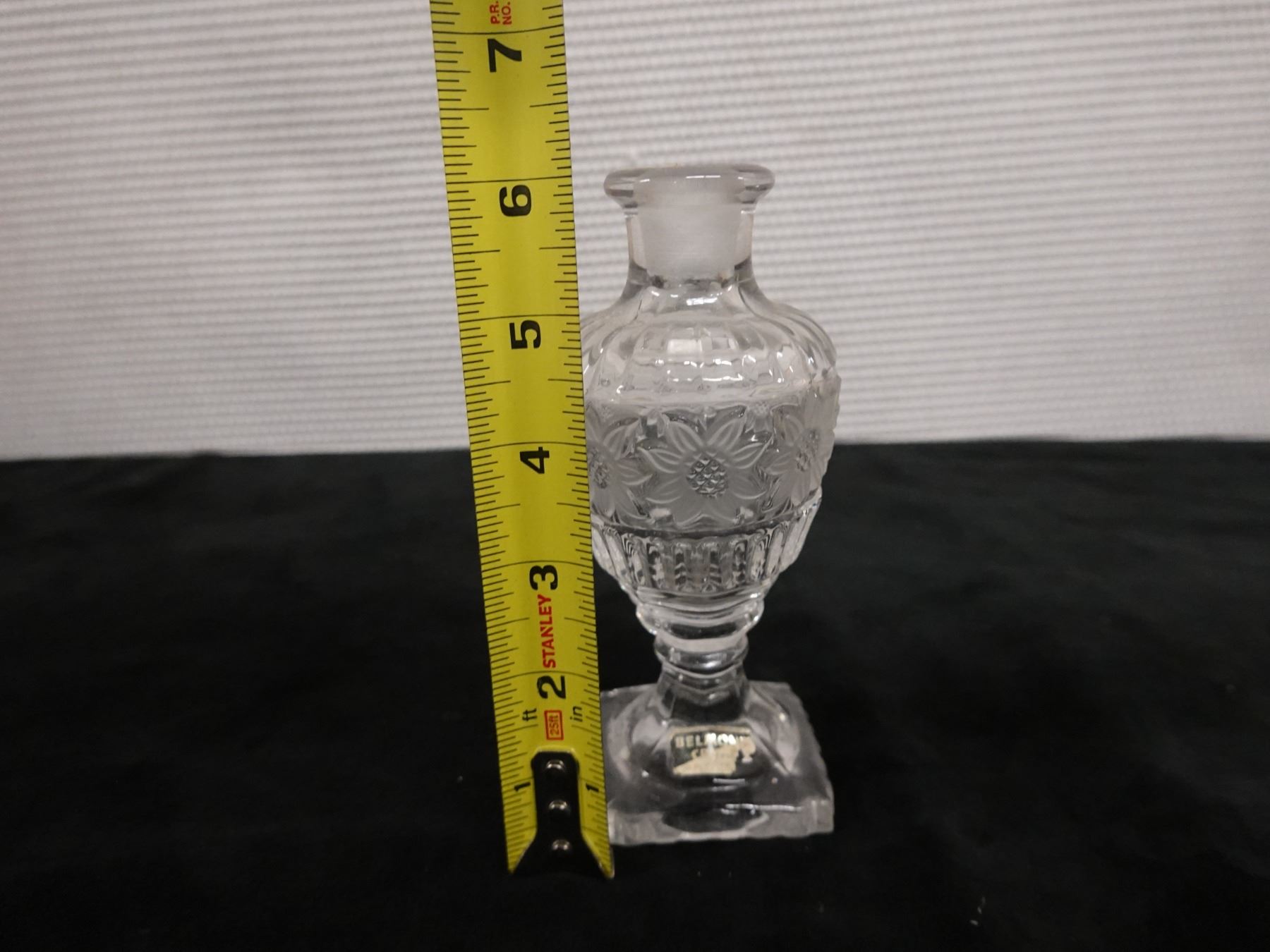 Belmont Crystal Footed Vase w/ Floral Design 2.5" Dia, 6"H