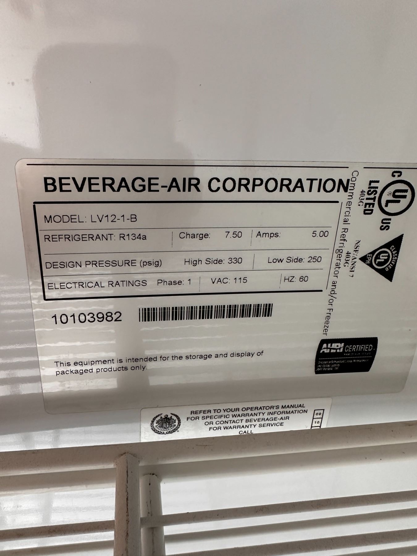 Beverage-Air LV12-1-B Single Section Glass Door Merchandiser Refrigerator