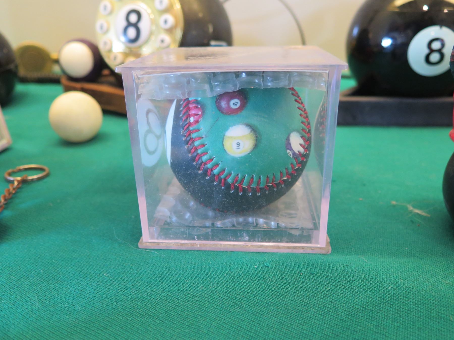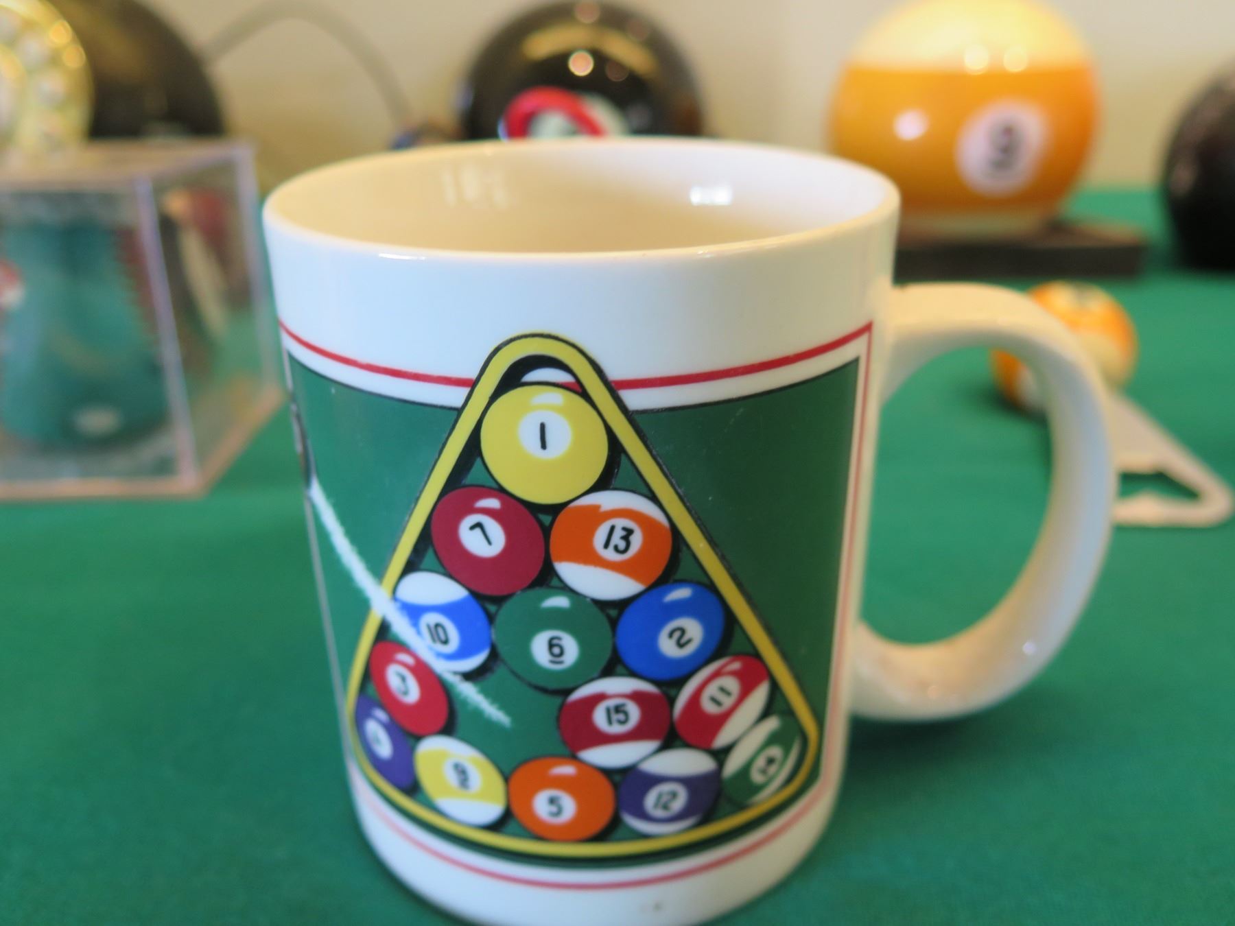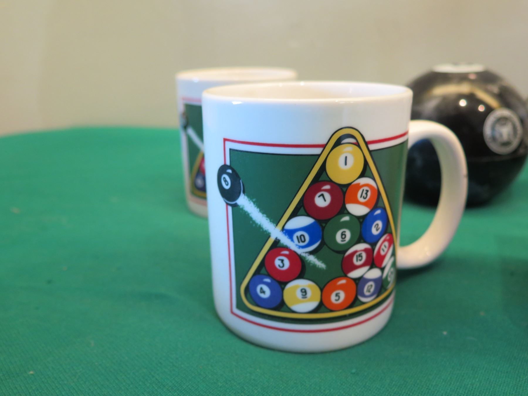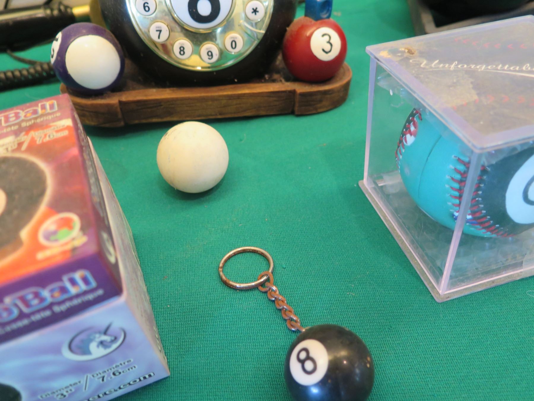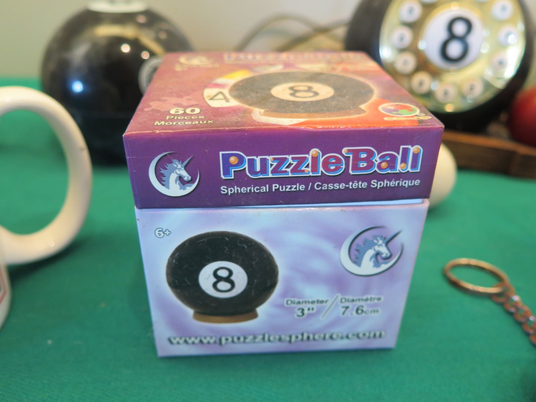Billiards Decor: 8 Ball Telephone, Cue Ball Mugs, Puzzle Ball, Key Ring, etc