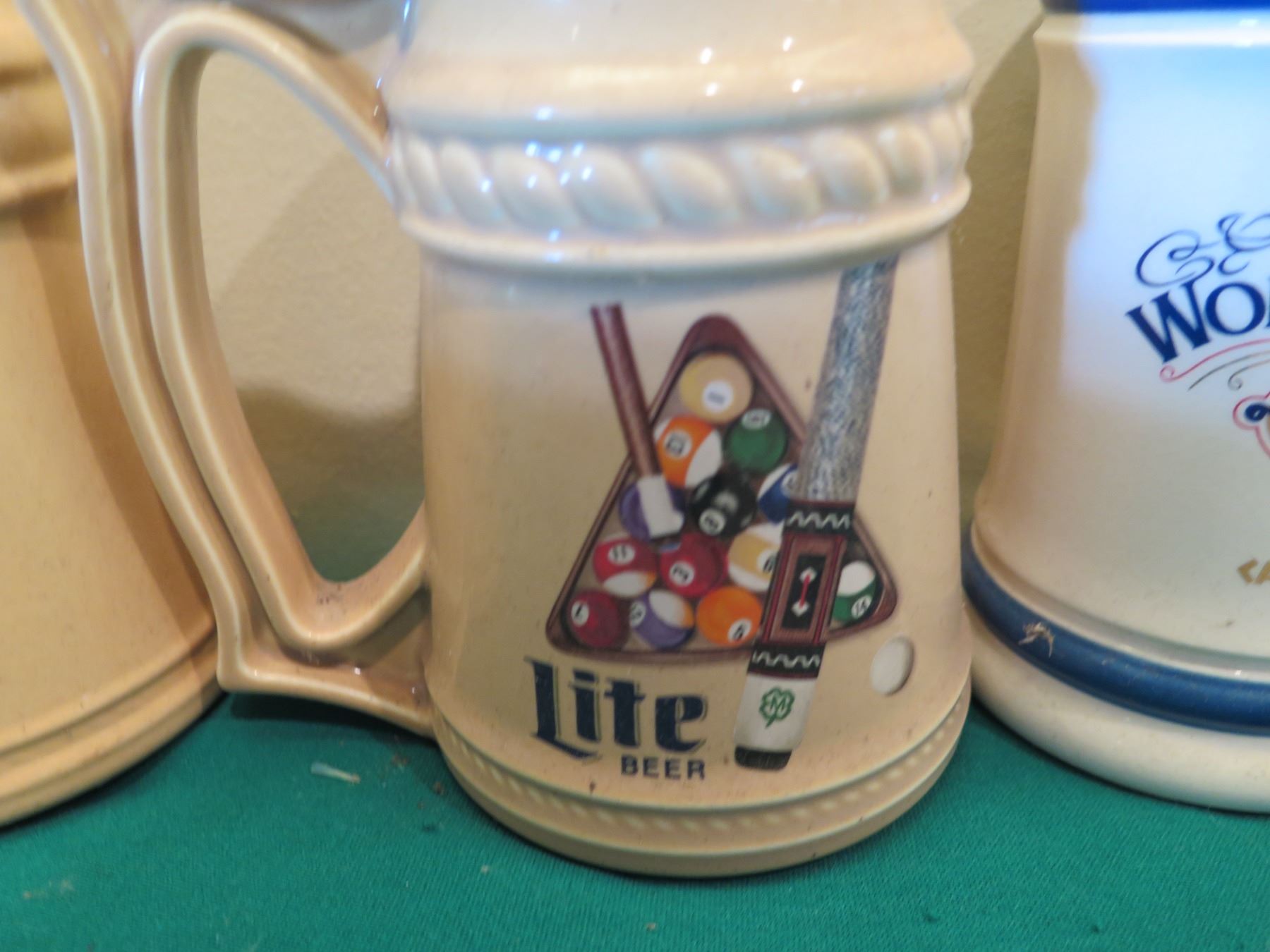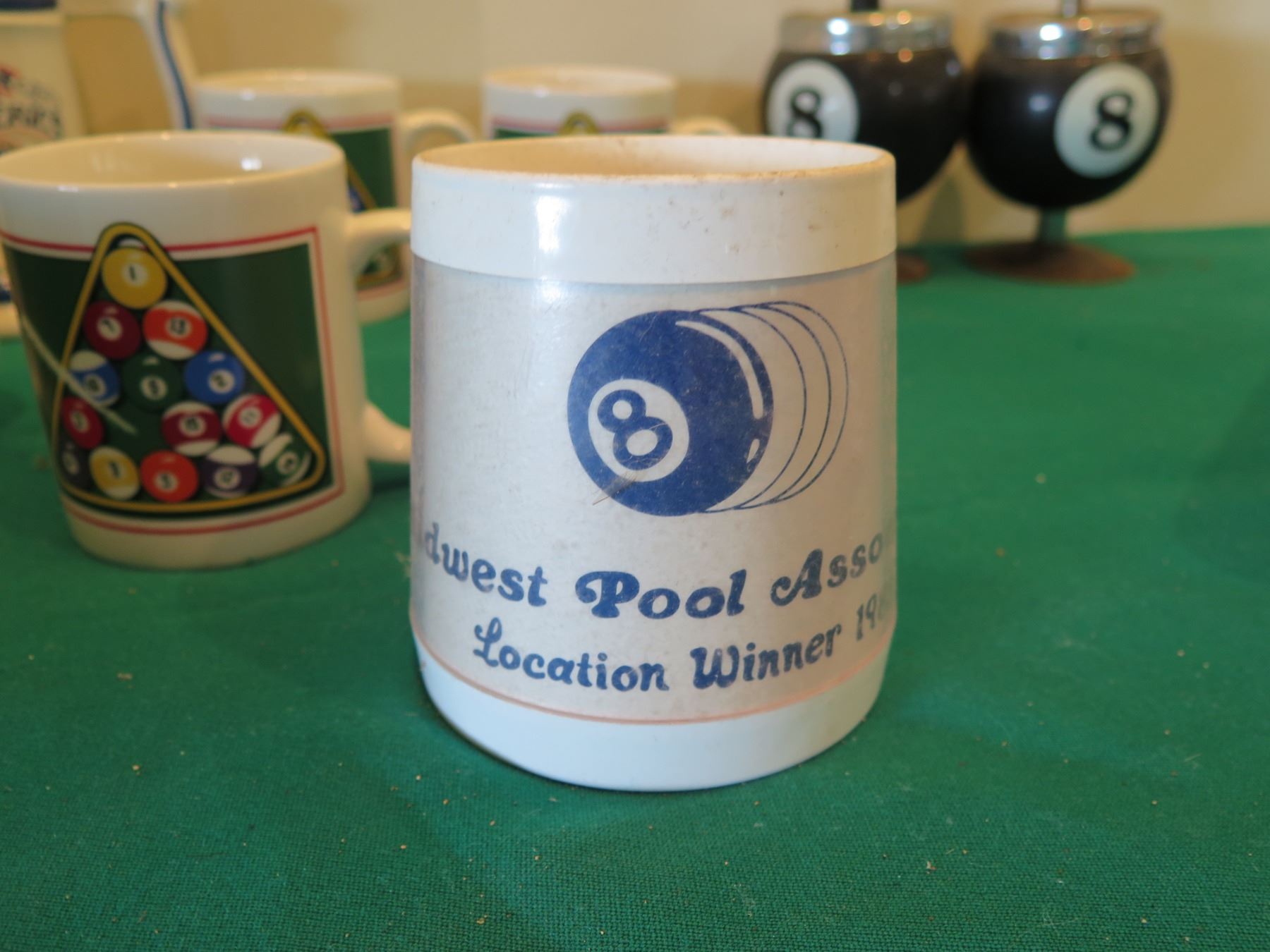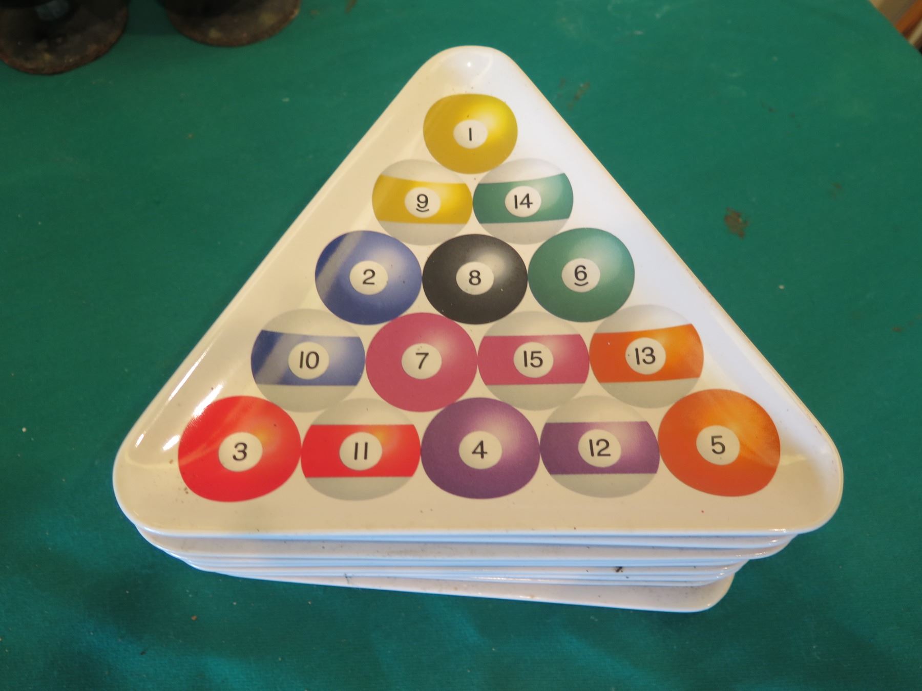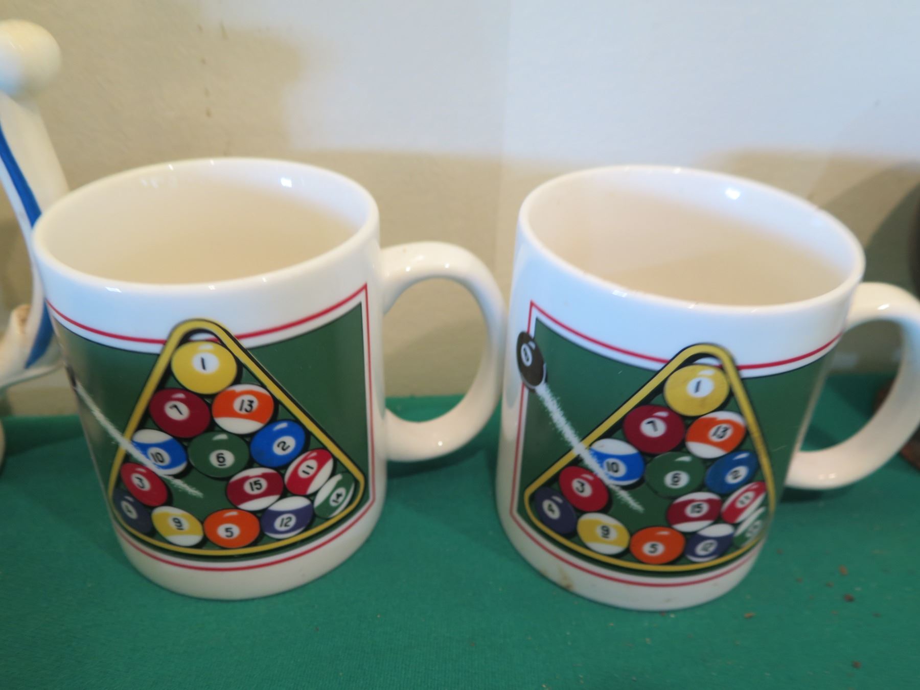 Billiards Decor: Rack Shaped Cue Ball Plates, Mugs, Steins, Ashtrays, etc