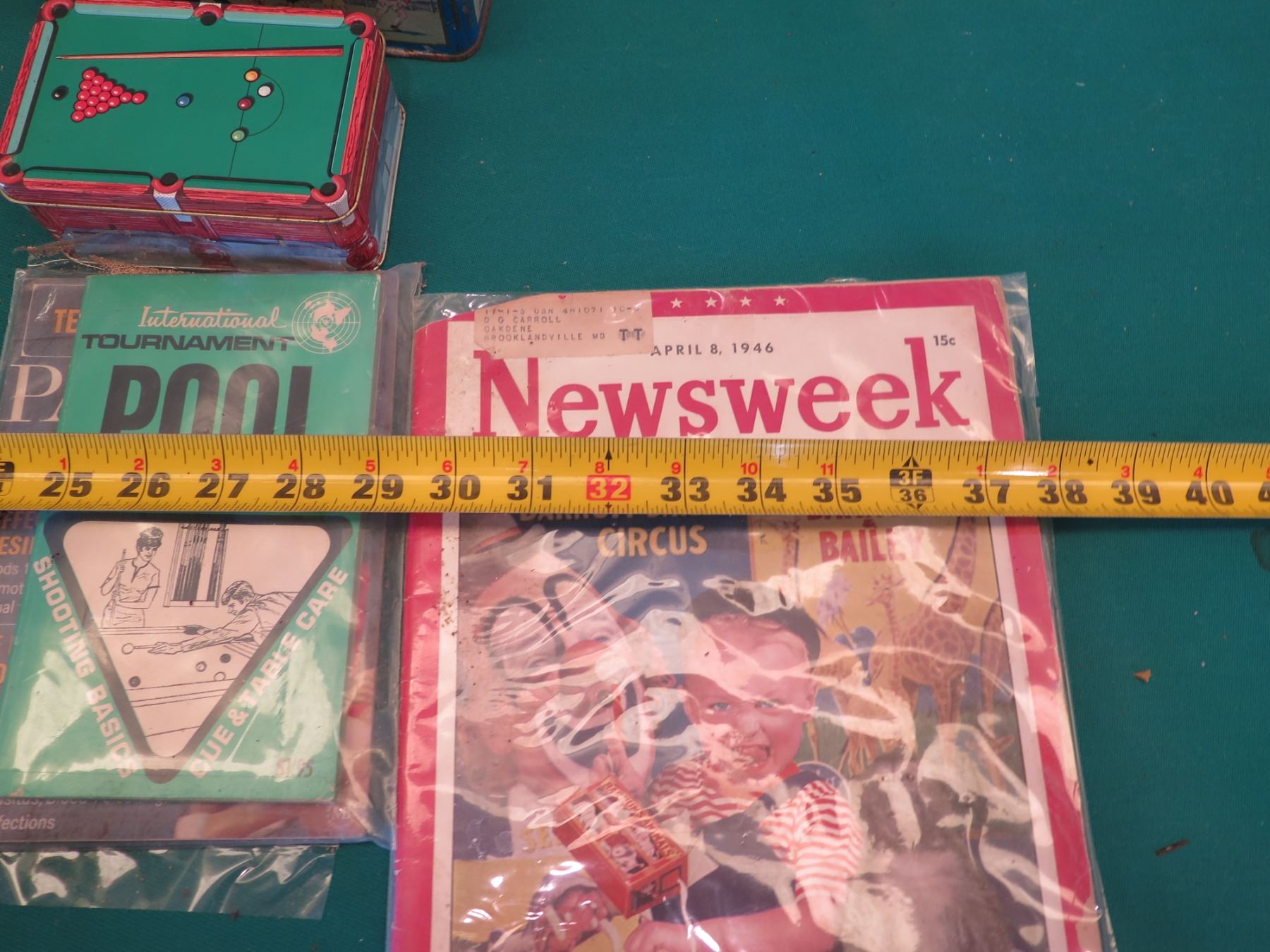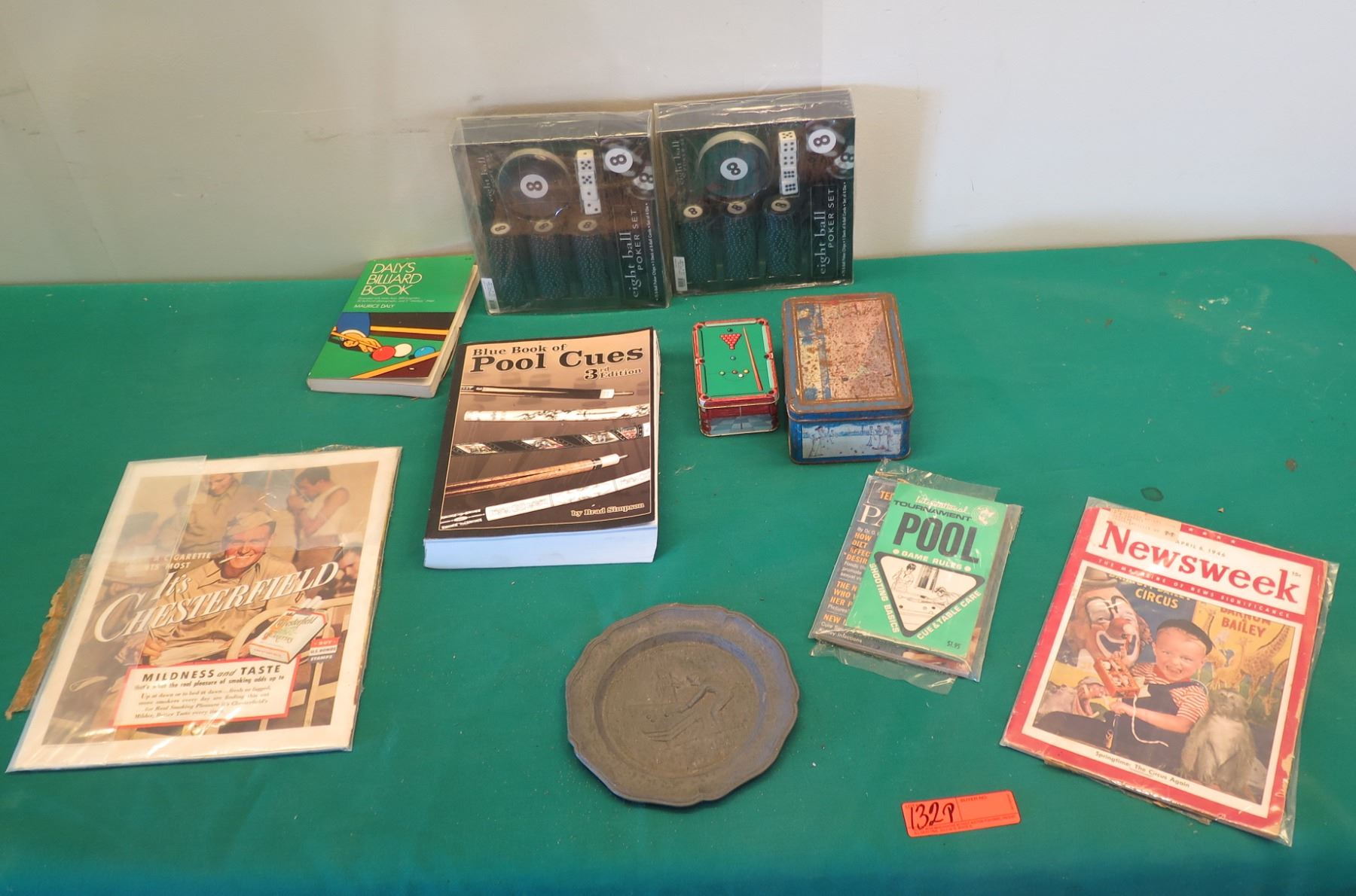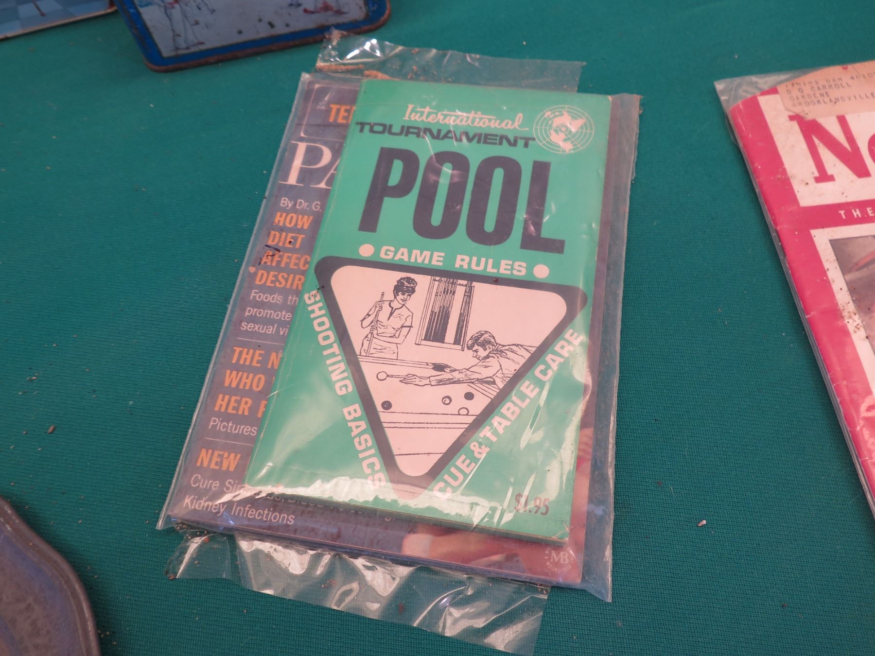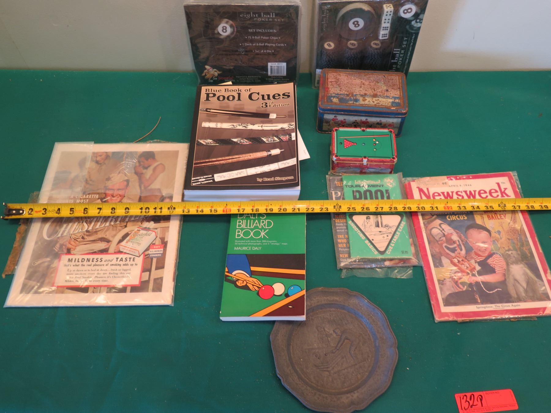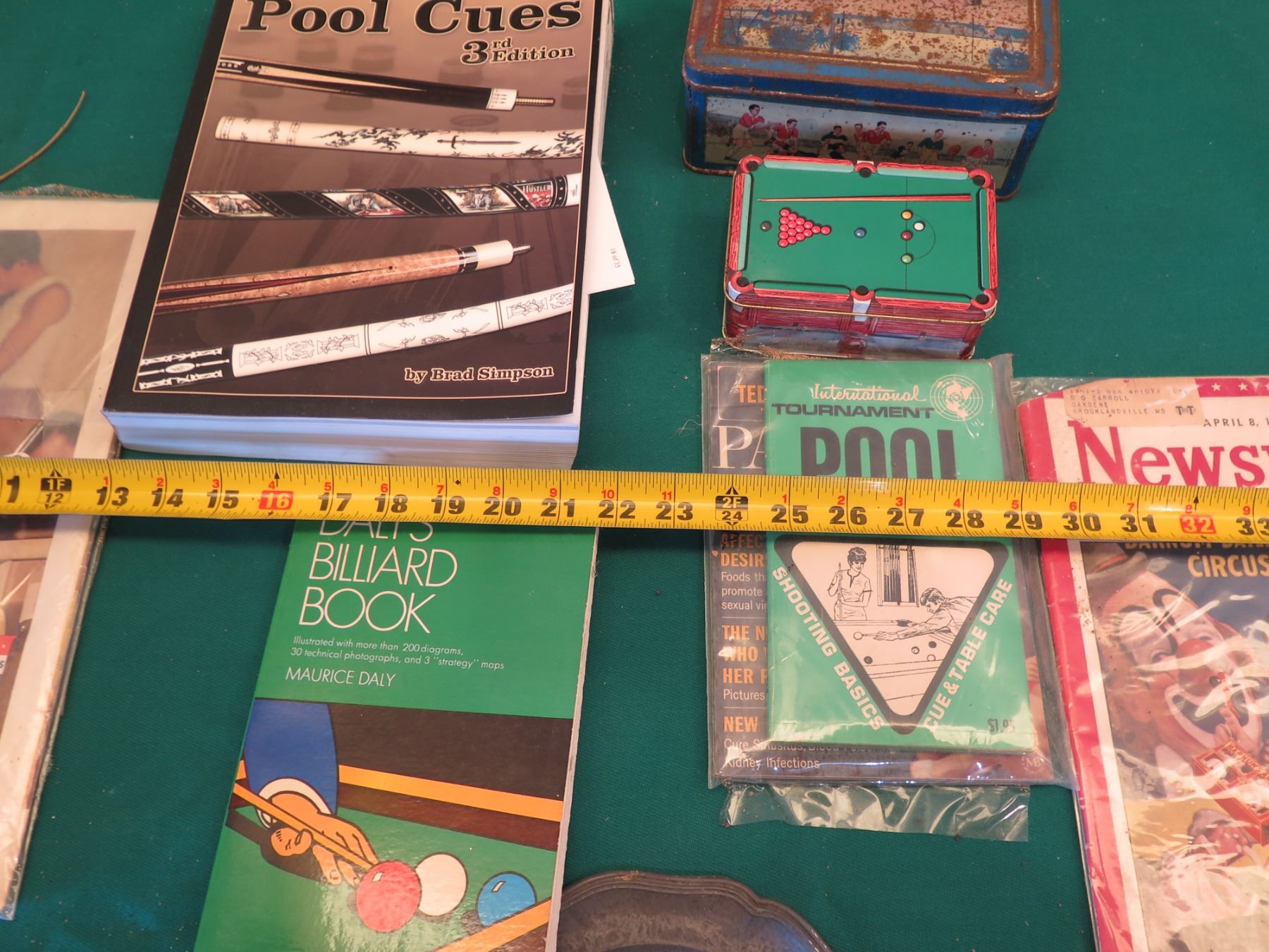 Billiards Pool Themed Books, Magazines, Metal Plate, Tins, etc