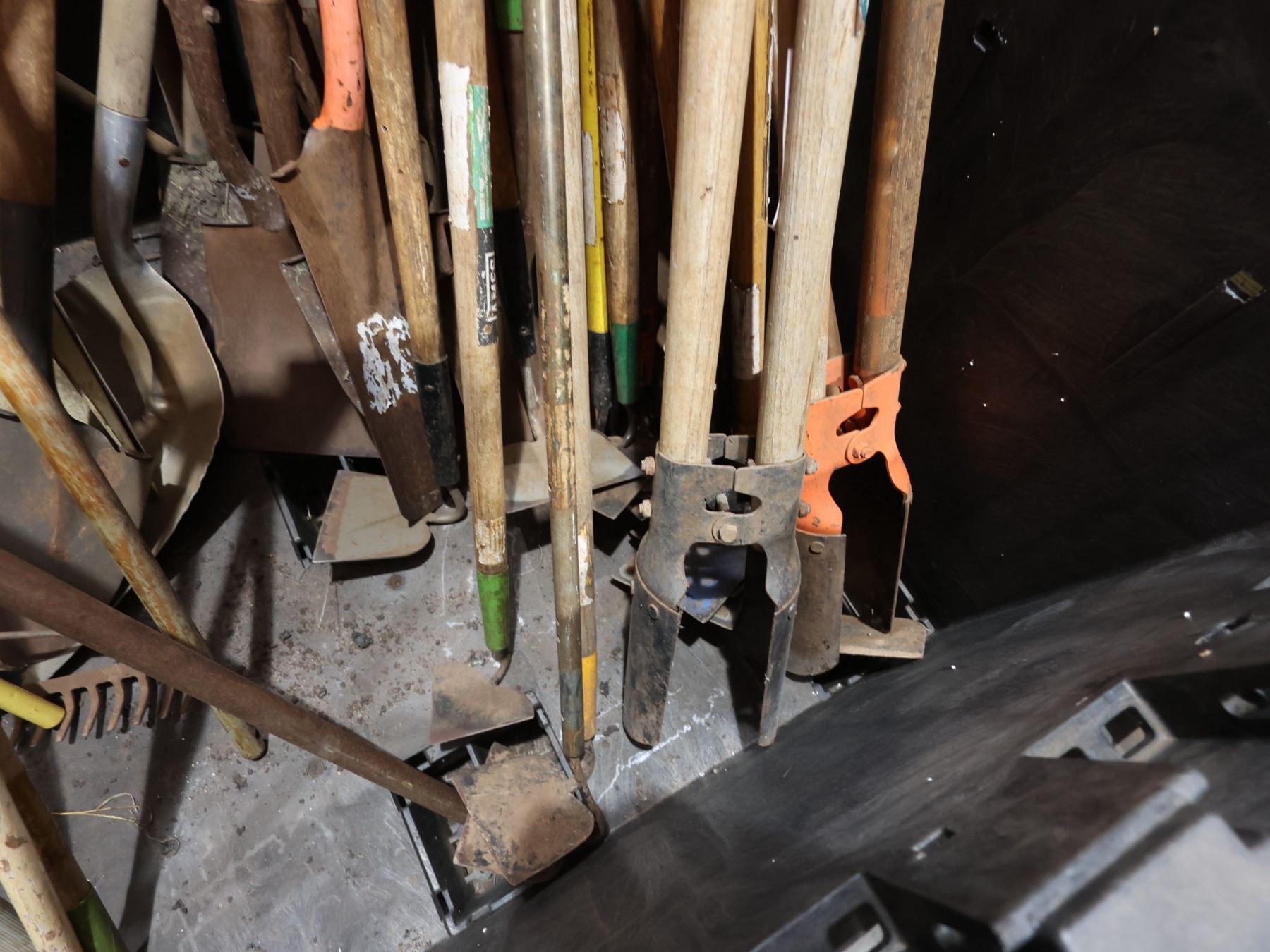 Bin Multiple Landscape Tools, Rakes, Shovels, Hoes, etc